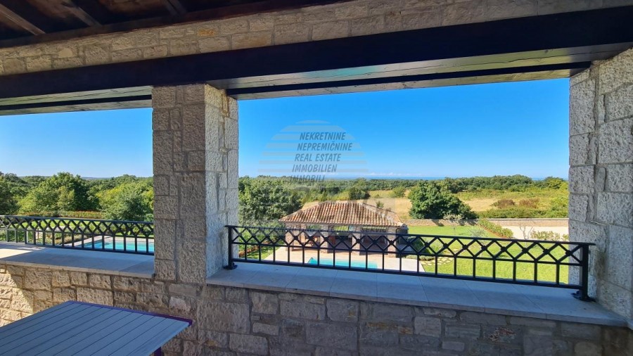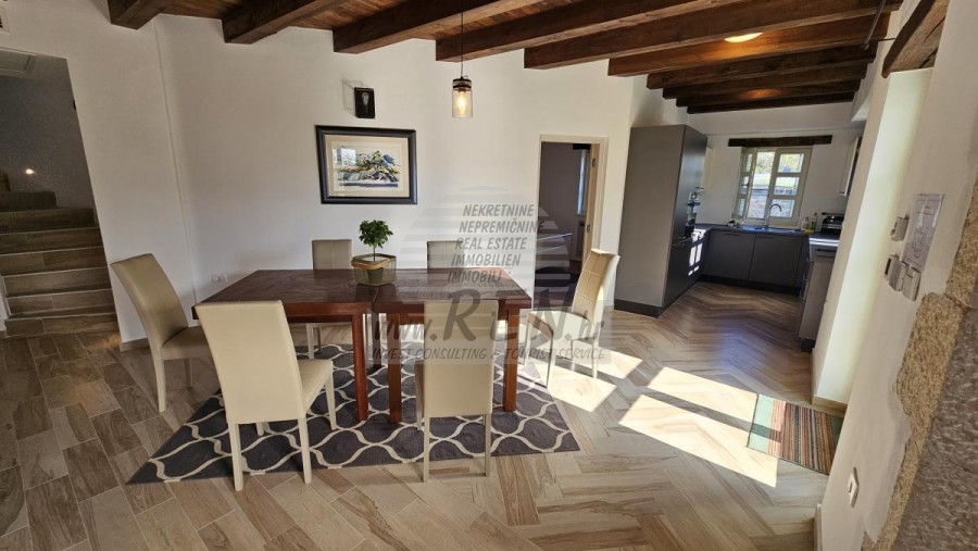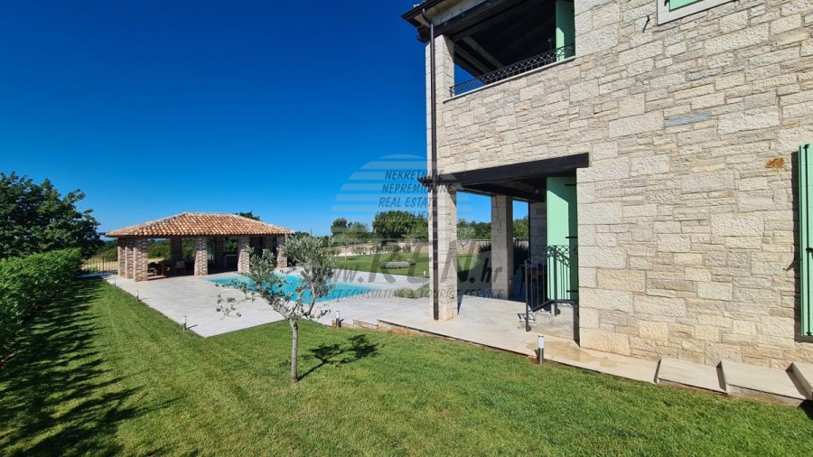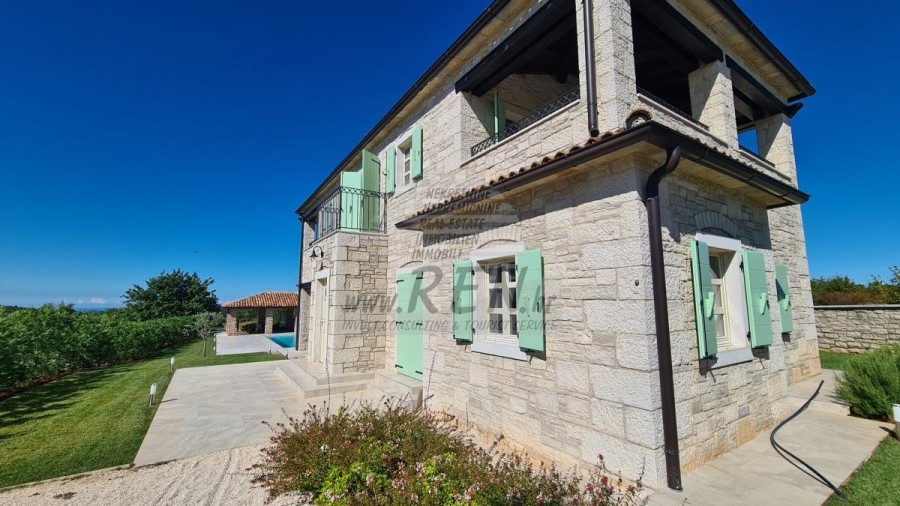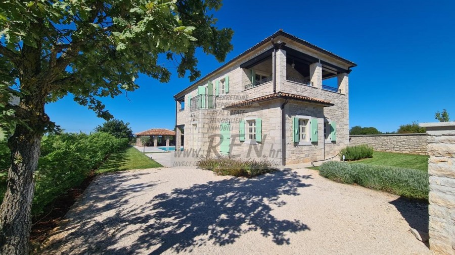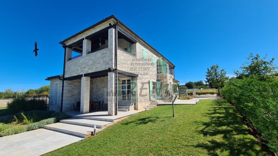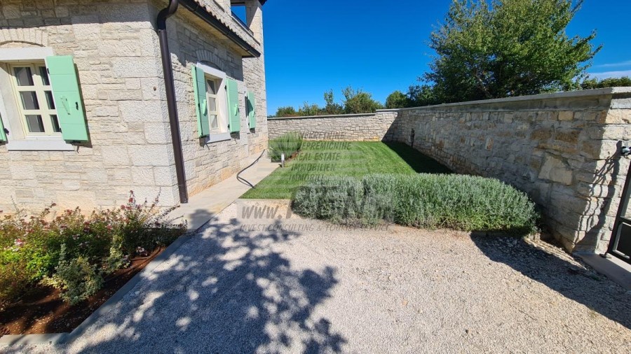 Autentica villa in pietra istriana con vista mare – vicino a Tinjan e Parenzo Nel cuore verde dell’Istria, a pochi passi da Tinjan – pittoresco borgo famoso per il suo eccellente prosciutto – sorge questa splendida villa in pietra che unisce il fascino autentico della tradizione al comfort del lusso moderno. Immersa nei profumi di pino e lavanda, offre totale privacy e tranquillità, con una vista mozzafiato sul mare e sulla natura circostante. Con una superficie di 250 m² su un terreno di oltre 1.500 m², la villa si sviluppa su due piani, progettati con cura per offrire calore e comfort in ogni ambiente. Ogni camera da letto ha l’accesso diretto alla terrazza, dove la luce del mattino e la brezza marina creano un’atmosfera di perfetto relax. Gli interni, luminosi ed eleganti, fondono armoniosamente una cucina moderna e un soggiorno con camino alle pareti in pietra e alle travi in legno tipiche istriane. All’esterno, una grande terrazza con piscina e cucina estiva invita a trascorrere serate istriane indimenticabili, tra un bicchiere di vino e la vista del mare all’orizzonte. Dotata di riscaldamento a pavimento e centrale, sistema d’allarme e parcheggio privato, la villa garantisce comfort in ogni stagione. A pochi minuti da Tinjan e a soli dieci minuti dal mare e dalla vivace Parenzo, questa villa istriana non è solo una casa – è un’esperienza, un incontro perfetto tra tradizione, eleganza e serenità mediterranea. Per ulteriori informazioni, si prega di contattarci.