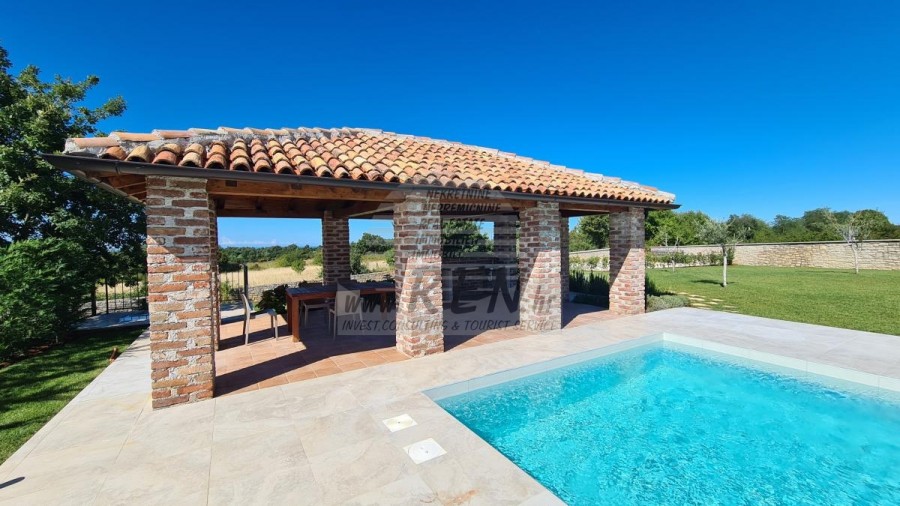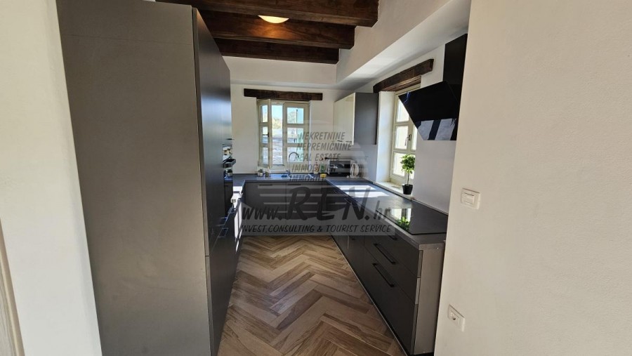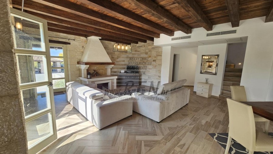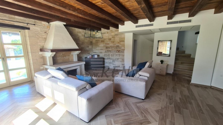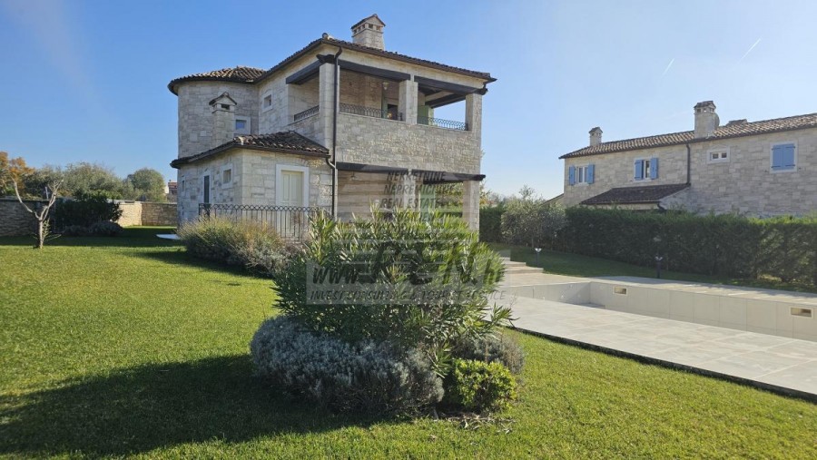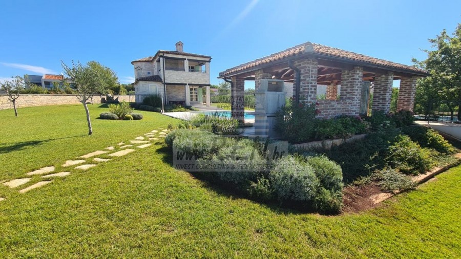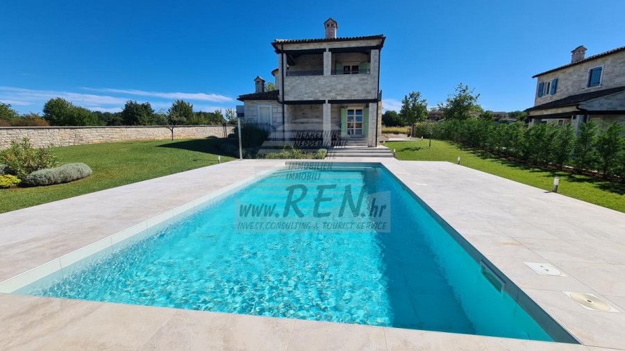 Autentica villa in pietra istriana con vista mare – vicino a Tinjan e Parenzo Nel cuore verde dell’Istria, a pochi passi da Tinjan – pittoresco borgo famoso per il suo eccellente prosciutto – sorge questa splendida villa in pietra che unisce il fascino autentico della tradizione al comfort del lusso moderno. Immersa nei profumi di pino e lavanda, offre totale privacy e tranquillità, con una vista mozzafiato sul mare e sulla natura circostante. Con una superficie di 250 m² su un terreno di oltre 1.500 m², la villa si sviluppa su due piani, progettati con cura per offrire calore e comfort in ogni ambiente. Ogni camera da letto ha l’accesso diretto alla terrazza, dove la luce del mattino e la brezza marina creano un’atmosfera di perfetto relax. Gli interni, luminosi ed eleganti, fondono armoniosamente una cucina moderna e un soggiorno con camino alle pareti in pietra e alle travi in legno tipiche istriane. All’esterno, una grande terrazza con piscina e cucina estiva invita a trascorrere serate istriane indimenticabili, tra un bicchiere di vino e la vista del mare all’orizzonte. Dotata di riscaldamento a pavimento e centrale, sistema d’allarme e parcheggio privato, la villa garantisce comfort in ogni stagione. A pochi minuti da Tinjan e a soli dieci minuti dal mare e dalla vivace Parenzo, questa villa istriana non è solo una casa – è un’esperienza, un incontro perfetto tra tradizione, eleganza e serenità mediterranea. Per ulteriori informazioni, si prega di contattarci.