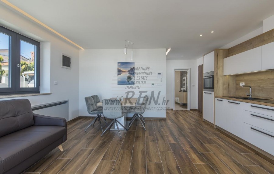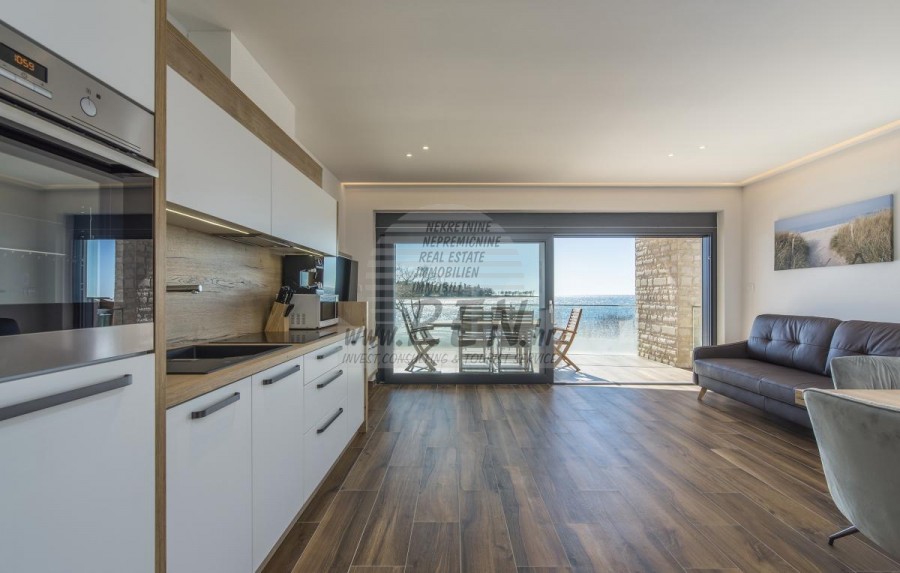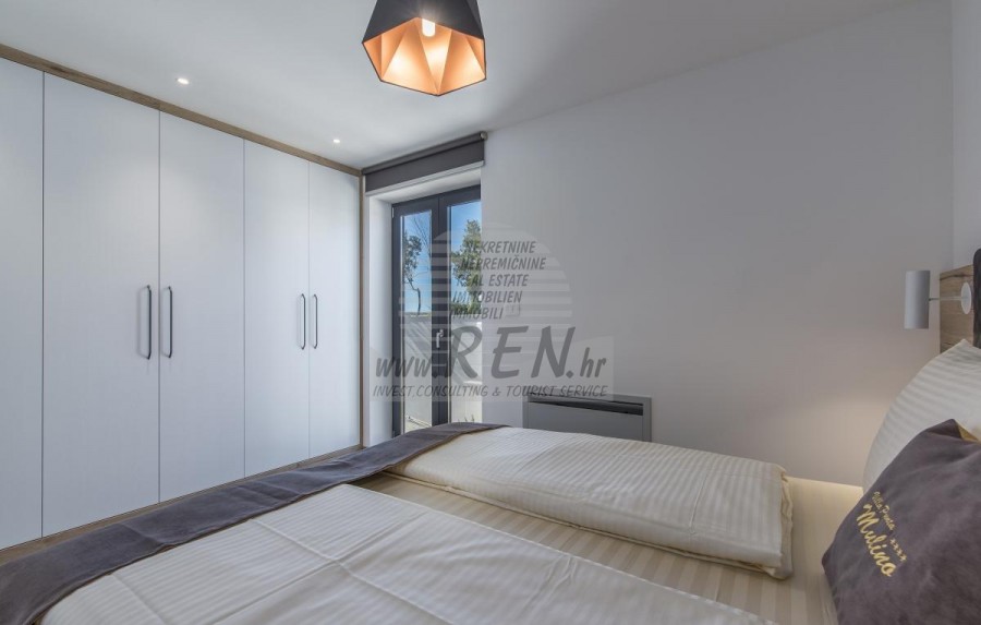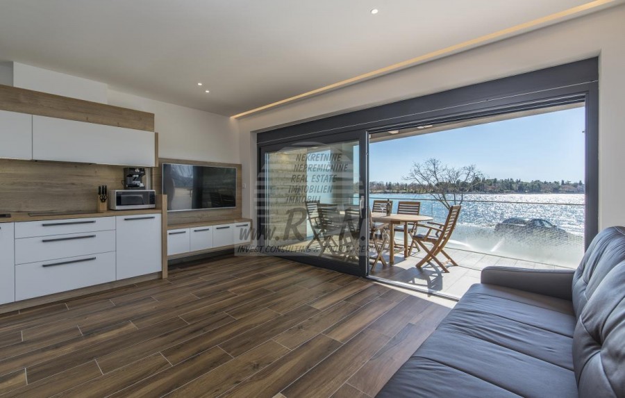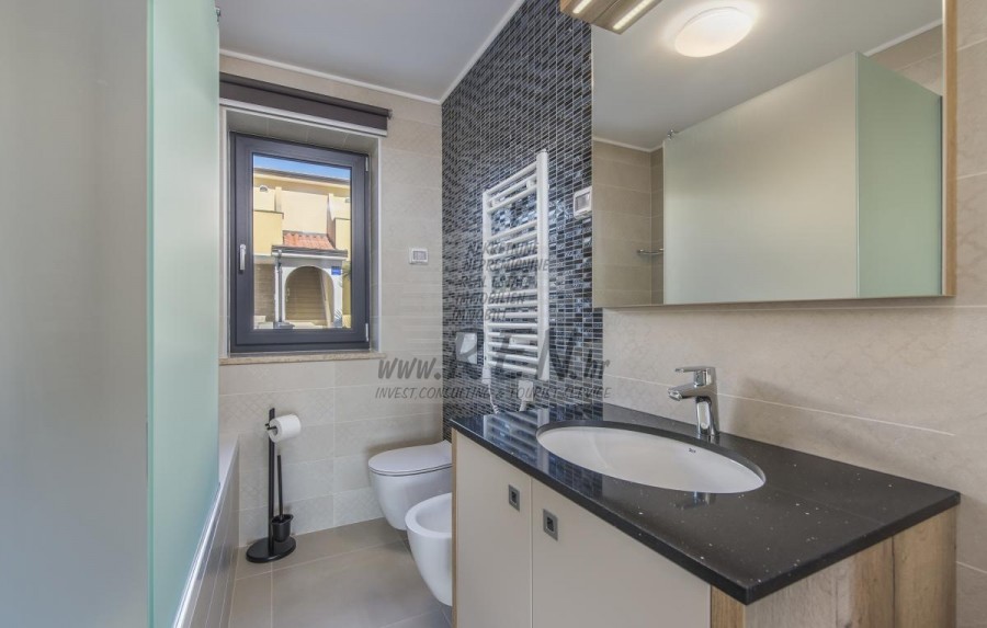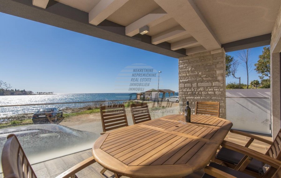 Immobili di lusso Istria, vendo appartamento, Lovrečica – San Lorenzo L’appartamento a Lovrečica ha un totale di 78,49 m2 (netto 53,80 m2) situato in piano terra, dista 1 min. (5m) dal mare e dalle bellissime spiaggie, dista 10 min. (8000m) dal centro città di Novigrad-Cittanova. L’appartamento è composto da cucina/soggiorno/sala da pranzo, camera da letto, bagno, terrazzo. Lussuosamente arredato, dotato di aria condizionata, riscaldamento a pavimento, parcheggio privato, bella vista sul mare, wellness e cucina estiva comune. L’appartamento è ubicato a soli 200 m dal negozio, 100 m dal ristorante, 400 m dal mercato, dista 1000 m dal medico, farmacia dista 1000 m, aeroporto di Pola dista 60 km, l’aeroporto di Portorose dista 30 km, marina Novigrad dista 8000 m, e aquapark (Istralandia) dista solo 7 km. Per ulteriori informazioni stiamo alla vostra disposizione.