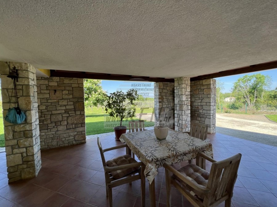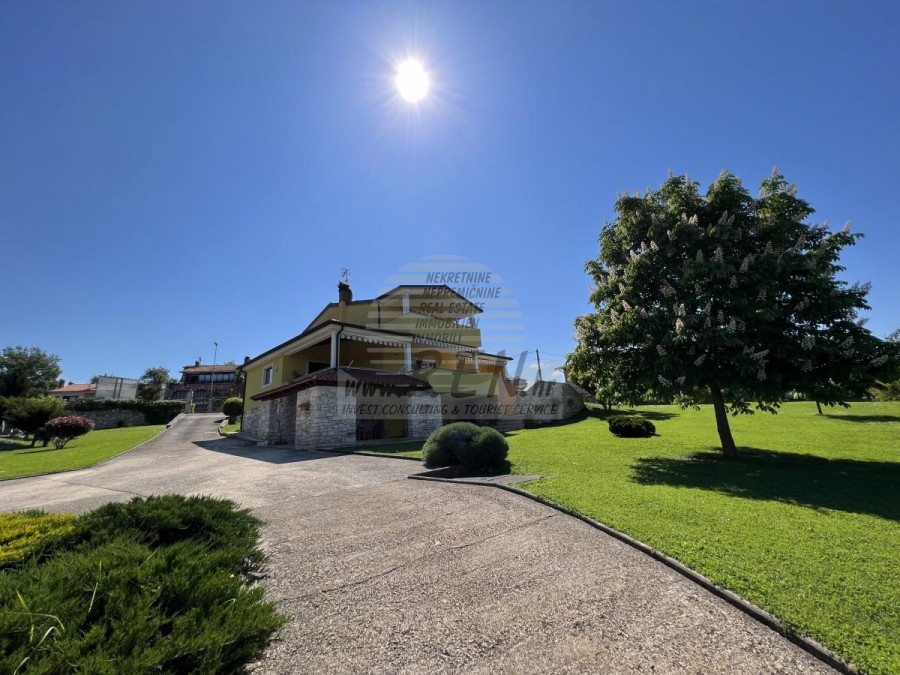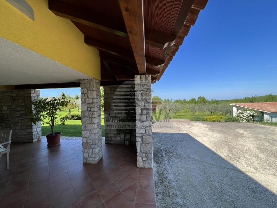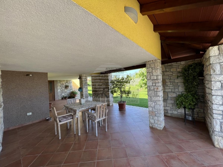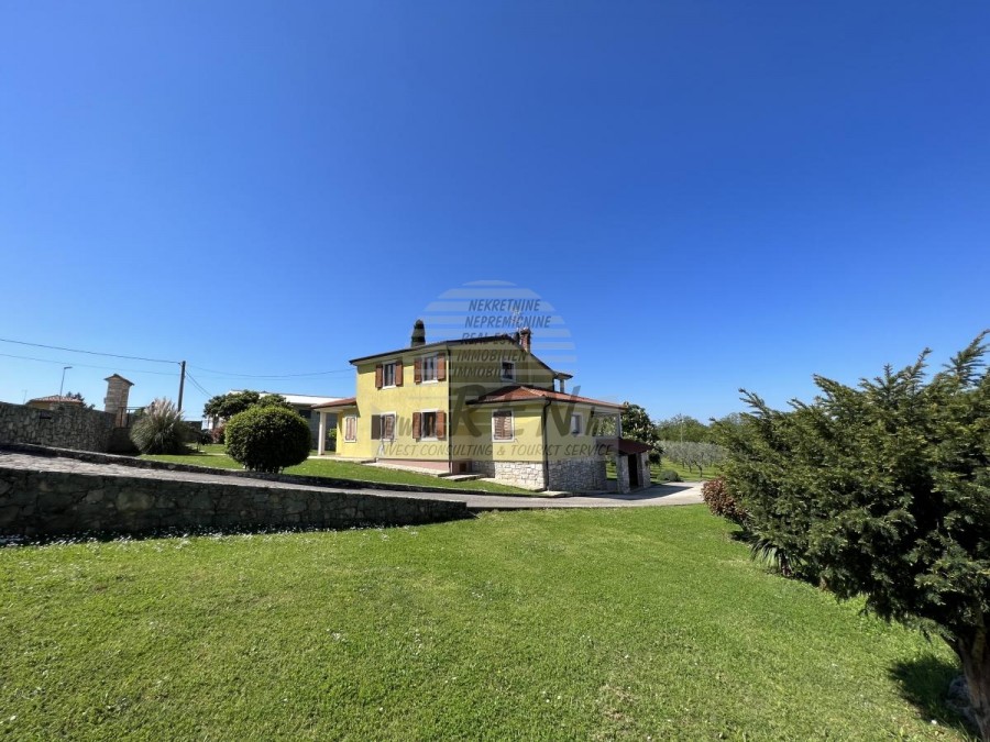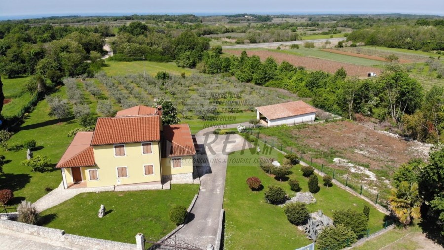 Immobili Istria, vendo casa con ampio giardino e vista mare, Buje, dintorni Buje La casa a Verteneglio ha un totale di 300 m2 + giardino 6137 m2, dista 10 min. (6000m) dal mare e da una bellissima spiaggia naturale paesaggistica, 5 min. (500 m) dal centro di Verteneglio. La casa ha un seminterrato, piano terra e primo piano. Al piano terra c'è un terrazzo di 66 mq, c'è un ingresso con bagno, un soggiorno con sala da pranzo (tutto aperto), un ingresso e una cucina con spazio aggiuntivo (lavatrice, dispensa, ecc. ) e una camera da letto con bagno annesso. C'è un altro ripostiglio chiuso sotto le scale interne. Lo spazio della cucina e della stanza può essere diviso da una parete scorrevole in vetro. Dal soggiorno e dalla sala da pranzo si esce attraverso le vetrate sul terrazzo, così come dalla cucina, che ha accesso al terrazzo coperto dove si può cenare nella bella stagione. Il resto è al secondo piano dove si trovano due camere da letto, ognuna con il proprio guardaroba. C'è un bagno tra le due stanze. Una camera ha una terrazza coperta con vista sul mare. Al piano interrato si trovano una taverna con camino e angolo cottura, un ripostiglio sotto il terrazzo e un locale caldaia con wc e relativo terrazzo coperto. La casa ha una facciata termica, riscaldamento centralizzato a gas, aria condizionata, pavimenti in legno massello esotico, cucina e bagni rivestiti con ceramiche moderne. Sul terreno è presente anche un uliveto con un centinaio di ulivi. Il terreno è completamente recintato da recinzione. Sul terreno è presente un ulteriore ripostiglio (garage di circa 46 mq parzialmente chiuso e parzialmente coperto). La casa è a soli 50 m dai negozi, 50 m dal ristorante, a 50 m dal mercato, un medico dista 6000 m, la farmacia si trova a 6000 m di distanza, l'aeroporto di Pola è 70 km, l'aeroporto di Portorose è di 20 km, Marina Novigrad 8 km, e Aquapark Istralandia dista solo 3 km. Per ulteriori informazioni, si prega di contattarci.