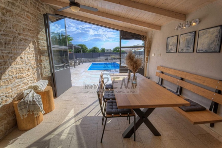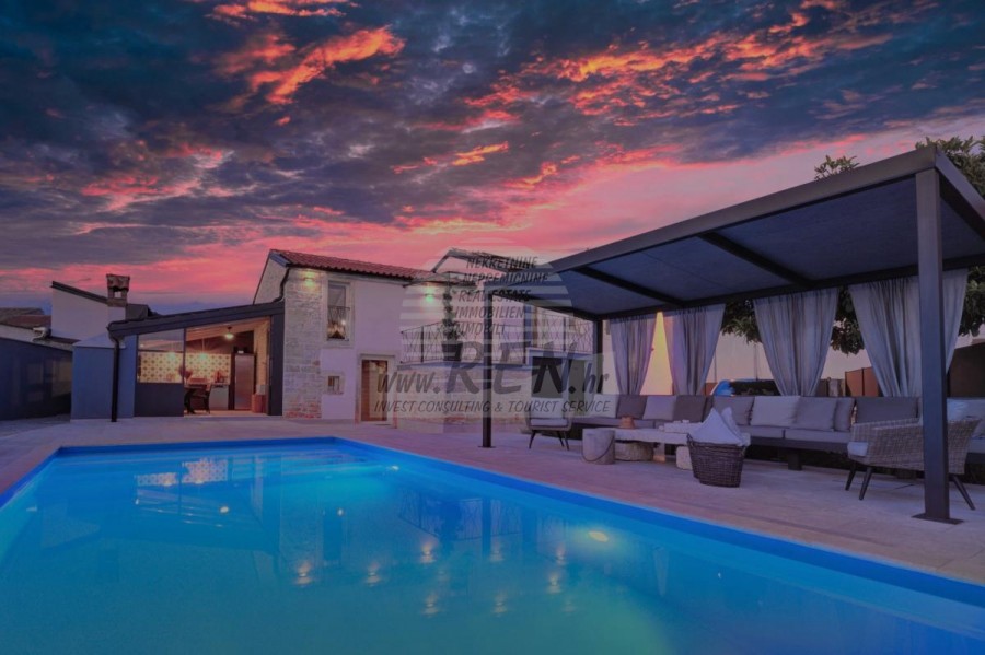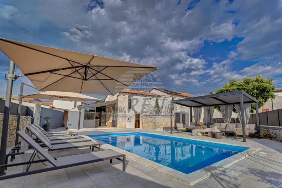 Immobiliare Istria, Villa in vendita, vicino a Canfanaro La villa ha un totale di 100 m2, il terreno ha 450 m2, è a 10 min. (10 km) dal mare e da una bellissima spiaggia naturale paesaggistica, 10 min. (10 km) dal centro di Canfanaro. La casa è indipendente, si compone di 2 piani. In totale ci sono 3 camere da letto, cucina, soggiorno, 3 bagni. Tutti gli ambienti della villa sono climatizzati. La casa dispone di un proprio parcheggio, piscina, cucina estiva. La casa si trova a 100 m dal negozio, 100 m dal ristorante, 100 m dal mercato, a 10 km dal medico, a 10 km dalla farmacia, a 43 km dall'aeroporto di Pola, a 55 km dall'aeroporto di Portorose, a 55 km da Orsera porto turistico 20 km. Siamo a vostra disposizione per ulteriori informazioni.