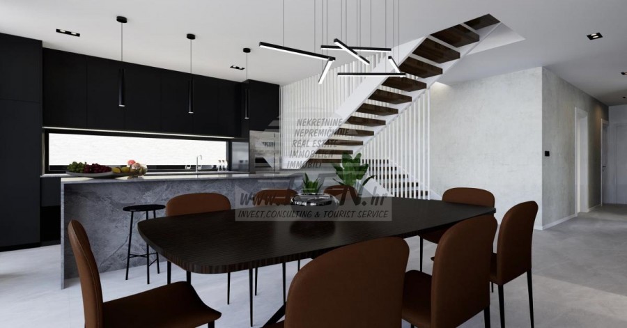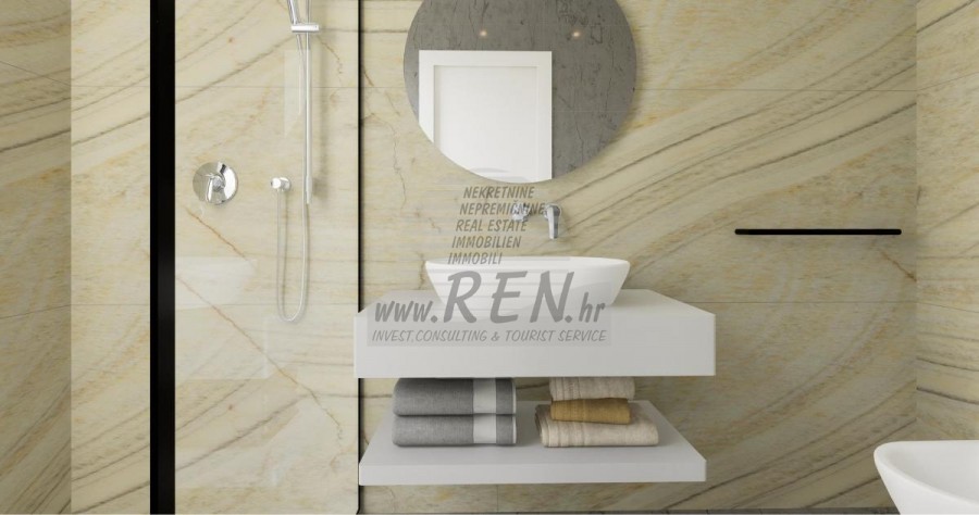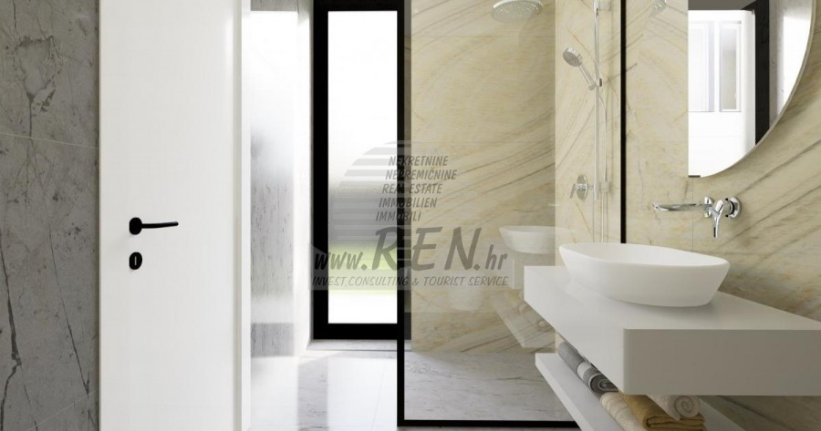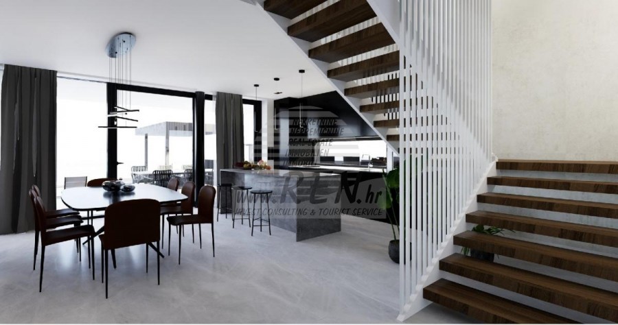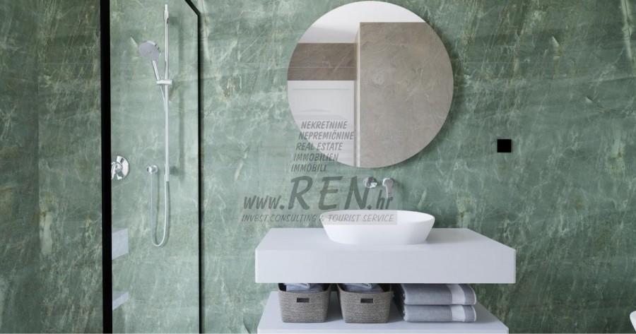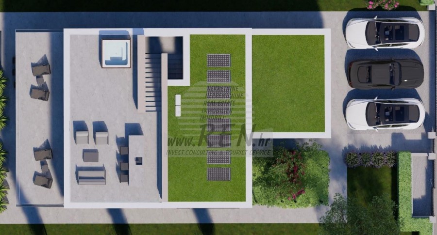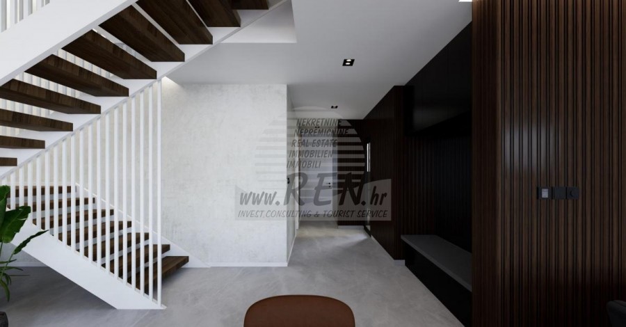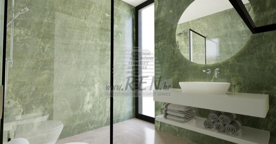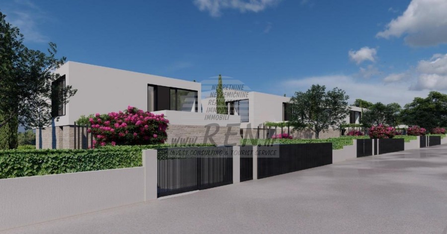 Il complesso di ville si trova su una superficie di 3730 m2. Si compone di 4 edifici indipendenti, completamente arredati e attrezzati con vista sul mare aperto. Metratura lorda di ciascuna abitazione: 270 mq (contano solo le superfici chiuse) Superficie residenziale netta interna: 204 mq (parte chiusa) Netti, aperti coperti e scoperti: 310 mq (lettino prendisole, tettoia, balconi, vialetti, braciere, terrazza sul tetto, scala esterna) Parcheggio: 3 posti auto (40 m2), ogni casa. Piscina: 36 m2 di superficie d'acqua Villa Parenzo uno - terreno 867 m2 - area verde 388 m2 Classe energetica: A (20 kWh/m2 anno) Pianta: P+1, (piano terra + primo piano) Il piano terra è composto da un ingresso, una scala per l'accesso al primo piano e alla terrazza sul tetto, un soggiorno, una cucina e una sala da pranzo, una camera da letto con bagno separato, un ulteriore WC, un bagno e una sauna, un locale tecnico con lavanderia, ripostiglio e wc esterno, ciascuno con ingresso indipendente. Al primo piano troviamo una scala, un corridoio, tre camere da letto con bagni separati e una palestra. C'è anche l'accesso alla terrazza sul tetto, dove si trovano un bar all'aperto, una zona solarium e una vasca idromassaggio. L'ambiente comprende una piscina esterna riscaldata, una zona prendisole, una terrazza coperta per pranzare, una tettoia con cucina estiva e una terrazza scoperta direttamente accanto alla piscina. C'è un pozzo del fuoco nella parte inferiore del cortile. Nel cortile è presente anche una doccia esterna di design con acqua calda e sifone a pavimento. La potenza elettrica noleggiata è di 18,86 kw - trifase, per ciascuna abitazione. Carpenteria esterna: Fabbro in alluminio di grande formato. Profilo in alluminio - ALIPLAST. Vetro SUNGUARD SN 70/35 HT 6 mm Temperato (70% Trasmissione Della Luce 35% Fattore Solare 1,0 W/m²K valore U) + 16 mm Al nero, PU, Argon + FLOAT CLEAR, 6 mm indurito. Profili con ponte termico interrotto, plastificati (RAL 7016). Tutte le porte, finestre e posizioni fisse sono realizzate con il sistema ALIPLAST SUPERIAL 800 e SUPERIAL (profondità telaio 75mm, profondità anta 75mm). Le posizioni di scorrimento sono realizzate nel sistema ULTRAGLIDE (profondità telaio 154 mm). Il coefficiente di trasferimento del calore per tutte le posizioni è inferiore a 1,3 W/(m2*K). Isolamento delle pareti: combinazione al piano terra di styrodur XPS 8 cm + rivestimento in pietra 5 cm e polistirolo EPS 10 cm, dove non è presente pietra. Pavimenti in polistirolo EPS 16 cm - facciata bianca e polistirolo 10 cm sulle parti antracite. Pietra di Canfanaro tagliata a mano, spessore 5 cm. Riscaldamento: Vailant, pompa di calore aria-acqua esterna alimentata da energia elettrica - impianto di riscaldamento da 10,3 kw e preparazione acqua calda in classe energetica A++, con un ulteriore locale macchine in casa e un boiler da 300 litri e circolazione. Riscaldamento a pavimento in tutte le stanze con regolatori separati per camera/bagno. Possibile controllo remoto tramite rete Wi-Fi. Raffreddamento/riscaldamento: È stato installato un sistema Samsung Multi Split con due unità esterne e 6 unità interne. Dotato della capacità di raffreddare e riscaldare lo spazio fino a -30°C di temperatura esterna. Inoltre, i dispositivi sono dotati della tecnologia Wind-freeTM per un piacevole flusso d'aria. Possibile controllo remoto tramite rete Wi-Fi. Attrezzatura: • Impianti sanitari Premium Duravit, rubinetteria Grohe, sistemi di drenaggio Geberit e Tece, cassette Grohe, cabina doccia. • Ceramiche di altissima qualità delle più famose aziende italiane (Graniti Fiandre, Panaria, Keope, Love). Nei bagni, ceramiche di grande formato, posizionate fino al soffitto. • Sistema integrato per l'addolcimento dell'acqua proveniente dalla rete idrica. • Sistema di allarme Ajax di fascia alta integrato con sensore di movimento, rilevatore di perdite d'acqua e rilevatore di incendio. Versione in nero. • Videosorveglianza DVC con registratore HDD da 2 TB e 4 telecamere IP esterne da 5 Mpx. • Illuminazione del produttore austriaco Eglo. • Interruttori interni, pulsanti e prese del marchio italiano Bticino del gruppo Legrand. • Antenna e sistema satellitare completi integrati per ogni stanza. • Amplificatori di segnale Wi-Fi aggiuntivi integrati in casa e sulla terrazza esterna. • Porte interne del noto produttore italiano Braga con cerniere a scomparsa e serrature magnetiche, larghezza 44 mm, design Bianco Matrix con maniglie Prisma nere. • Videocitofono con controllo dell'apertura della porta d'ingresso e controllo elettronico. il cancello. • Caricatore Wallbox per la ricarica di auto elettriche Mercedes-Benz fino a 22 kW • Biocamino nel soggiorno • Canali e scarichi esterni su terrazze e balconi del principale produttore tedesco Aco • Ringhiera in vetro sul balcone e sulla terrazza sul tetto Cucina e mobili • Cucina Dan Kuchen, modello Silbermond nella versione antracite - cucina e isola, con piano in ceramica Sapienstone - Fior di Bosco, spessore 12 mm. • La cucina è dotata di tutti gli elettrodomestici da incasso Bosch necessari (forno, microonde, piano cottura, lavastoviglie e frigorifero combinato). • Nell'isola è installato anche un frigorifero per vino della marca Candy. • Lavello Franke, rubinetto Grohe, cappa Faber con canale di ventilazione. • Lavatrice e Asciugatrice Bosch, Serie 6, entrambe con capacità maggiore di 9 kg, situate in un armadio appositamente progettato nel locale tecnico. • Smart TV in tutte le camere, la dimensione nel soggiorno è di 75'' QLED 4K, mentre tutte le altre camere hanno una TV di dimensioni 55'' UHD LED 4K. • Le camere sono dotate di letti matrimoniali con materassi premium della linea Hespo Luxury Plus, armadi a muro, scrivania con poltrona Kave Home e lampade da notte. • In tutte le stanze sono stati installati tappeti Piere Cardin e parte delle pareti sono state rivestite con doghe Lamelio Milo color noce e carte da parati