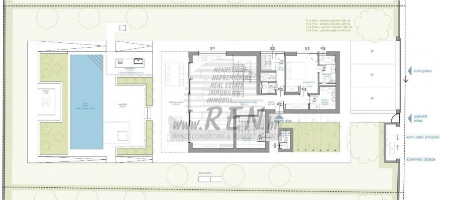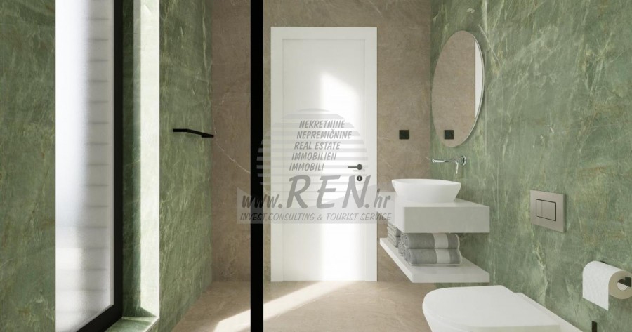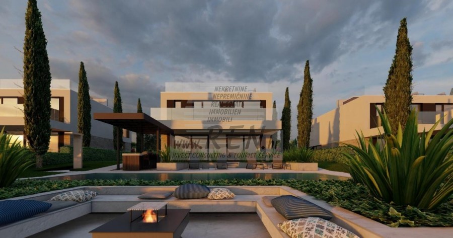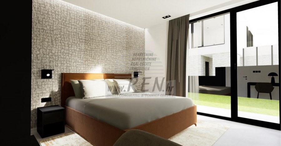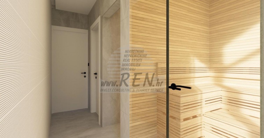 Il complesso di ville si trova su una superficie di 3730 m2. Si compone di 4 edifici indipendenti, completamente arredati e attrezzati con vista sul mare aperto. Metratura lorda di ciascuna abitazione: 270 mq (contano solo le superfici chiuse) Superficie residenziale netta interna: 204 mq (parte chiusa) Netti, aperti coperti e scoperti: 310 mq (lettino prendisole, tettoia, balconi, vialetti, braciere, terrazza sul tetto, scala esterna) Parcheggio: 3 posti auto (40 m2), ogni casa. Piscina: 36 m2 di superficie d'acqua Villa Parenzo uno - terreno 864 m2 - area verde 328 m2 Classe energetica: A (20 kWh/m2 anno) Pianta: P+1, (piano terra + primo piano) Il piano terra è composto da un ingresso, una scala per l'accesso al primo piano e alla terrazza sul tetto, un soggiorno, una cucina e una sala da pranzo, una camera da letto con bagno separato, un ulteriore WC, un bagno e una sauna, un locale tecnico con lavanderia, ripostiglio e wc esterno, ciascuno con ingresso indipendente. Al primo piano troviamo una scala, un corridoio, tre camere da letto con bagni separati e una palestra. C'è anche l'accesso alla terrazza sul tetto, dove si trovano un bar all'aperto, una zona solarium e una vasca idromassaggio. L'ambiente comprende una piscina esterna riscaldata, una zona prendisole, una terrazza coperta per pranzare, una tettoia con cucina estiva e una terrazza scoperta direttamente accanto alla piscina. C'è un pozzo del fuoco nella parte inferiore del cortile. Nel cortile è presente anche una doccia esterna di design con acqua calda e sifone a pavimento. La potenza elettrica noleggiata è di 18,86 kw - trifase, per ciascuna abitazione. Carpenteria esterna: Fabbro in alluminio di grande formato. Profilo in alluminio - ALIPLAST. Vetro SUNGUARD SN 70/35 HT 6 mm Temperato (70% Trasmissione Della Luce 35% Fattore Solare 1,0 W/m²K valore U) + 16 mm Al nero, PU, Argon + FLOAT CLEAR, 6 mm indurito. Profili con ponte termico interrotto, plastificati (RAL 7016). Tutte le porte, finestre e posizioni fisse sono realizzate con il sistema ALIPLAST SUPERIAL 800 e SUPERIAL (profondità telaio 75mm, profondità anta 75mm). Le posizioni di scorrimento sono realizzate nel sistema ULTRAGLIDE (profondità telaio 154 mm). Il coefficiente di trasferimento del calore per tutte le posizioni è inferiore a 1,3 W/(m2*K). Isolamento delle pareti: combinazione al piano terra di styrodur XPS 8 cm + rivestimento in pietra 5 cm e polistirolo EPS 10 cm, dove non è presente pietra. Pavimenti in polistirolo EPS 16 cm - facciata bianca e polistirolo 10 cm sulle parti antracite. Pietra di Canfanaro tagliata a mano, spessore 5 cm. Riscaldamento: Vailant, pompa di calore aria-acqua esterna alimentata da energia elettrica - impianto di riscaldamento da 10,3 kw e preparazione acqua calda in classe energetica A++, con un ulteriore locale macchine in casa e un boiler da 300 litri e circolazione. Riscaldamento a pavimento in tutte le stanze con regolatori separati per camera/bagno. Possibile controllo remoto tramite rete Wi-Fi. Raffreddamento/riscaldamento: È stato installato un sistema Samsung Multi Split con due unità esterne e 6 unità interne. Dotato della capacità di raffreddare e riscaldare lo spazio fino a -30°C di temperatura esterna. Inoltre, i dispositivi sono dotati della tecnologia Wind-freeTM per un piacevole flusso d'aria. Possibile controllo remoto tramite rete Wi-Fi. Attrezzatura: • Impianti sanitari Premium Duravit, rubinetteria Grohe, sistemi di drenaggio Geberit e Tece, cassette Grohe, cabina doccia. • Ceramiche di altissima qualità delle più famose aziende italiane (Graniti Fiandre, Panaria, Keope, Love). Nei bagni, ceramiche di grande formato, posizionate fino al soffitto. • Sistema integrato per l'addolcimento dell'acqua proveniente dalla rete idrica. • Sistema di allarme Ajax di fascia alta integrato con sensore di movimento, rilevatore di perdite d'acqua e rilevatore di incendio. Versione in nero. • Videosorveglianza DVC con registratore HDD da 2 TB e 4 telecamere IP esterne da 5 Mpx. • Illuminazione del produttore austriaco Eglo. • Interruttori interni, pulsanti e prese del marchio italiano Bticino del gruppo Legrand. • Antenna e sistema satellitare completi integrati per ogni stanza. • Amplificatori di segnale Wi-Fi aggiuntivi integrati in casa e sulla terrazza esterna. • Porte interne del noto produttore italiano Braga con cerniere a scomparsa e serrature magnetiche, larghezza 44 mm, design Bianco Matrix con maniglie Prisma nere. • Videocitofono con controllo dell'apertura della porta d'ingresso e controllo elettronico. il cancello. • Caricatore Wallbox per la ricarica di auto elettriche Mercedes-Benz fino a 22 kW • Biocamino nel soggiorno • Canali e scarichi esterni su terrazze e balconi del principale produttore tedesco Aco • Ringhiera in vetro sul balcone e sulla terrazza sul tetto Cucina e mobili • Cucina Dan Kuchen, modello Silbermond nella versione antracite - cucina e isola, con piano in ceramica Sapienstone - Fior di Bosco, spessore 12 mm. • La cucina è dotata di tutti gli elettrodomestici da incasso Bosch necessari (forno, microonde, piano cottura, lavastoviglie e frigorifero combinato). • Nell'isola è installato anche un frigorifero per vino della marca Candy. • Lavello Franke, rubinetto Grohe, cappa Faber con canale di ventilazione. • Lavatrice e Asciugatrice Bosch, Serie 6, entrambe con capacità maggiore di 9 kg, situate in un armadio appositamente progettato nel locale tecnico. • Smart TV in tutte le camere, la dimensione nel soggiorno è di 75'' QLED 4K, mentre tutte le altre camere hanno una TV di dimensioni 55'' UHD LED 4K. • Le camere sono dotate di letti matrimoniali con materassi premium della linea Hespo Luxury Plus, armadi a muro, scrivania con poltrona Kave Home e lampade da notte. • In tutte le stanze sono stati installati tappeti Piere Cardin e parte delle pareti sono state rivestite con doghe Lamelio Milo color noce e carte da parati