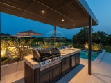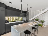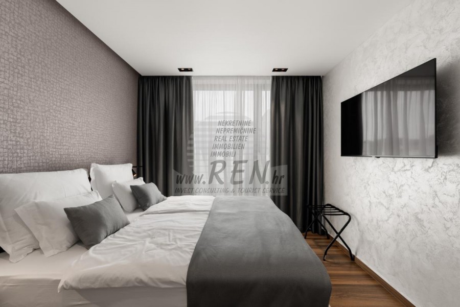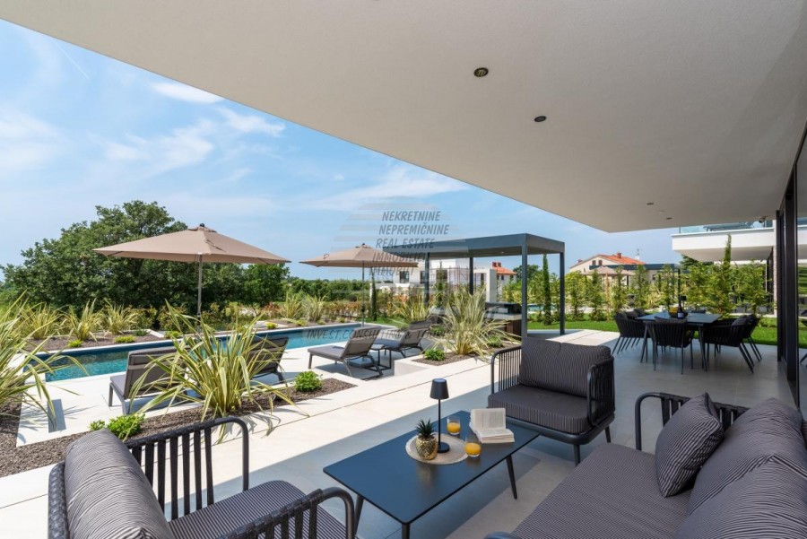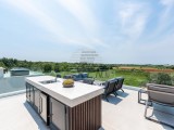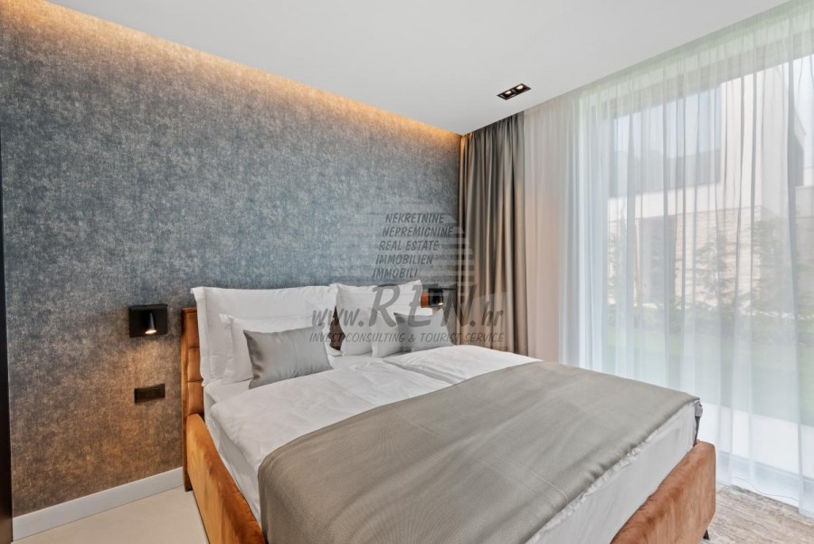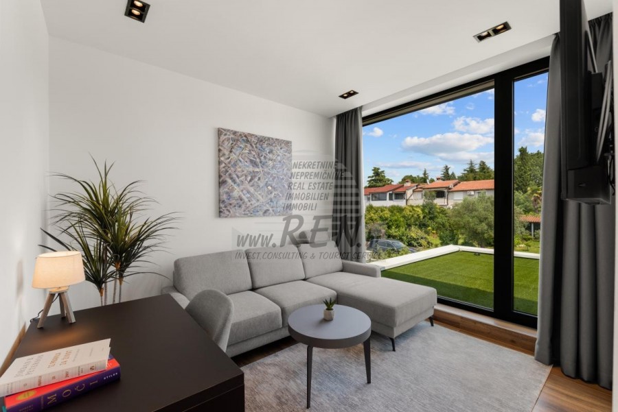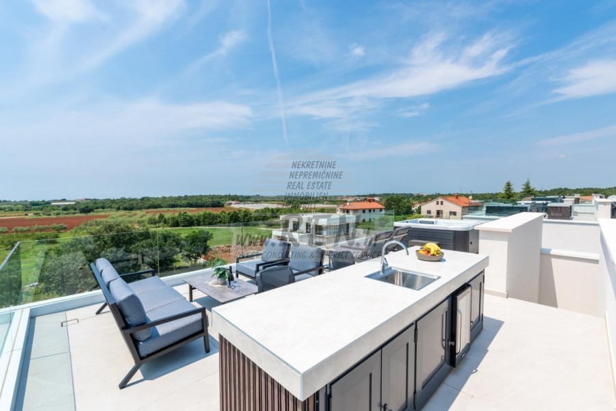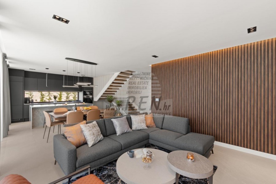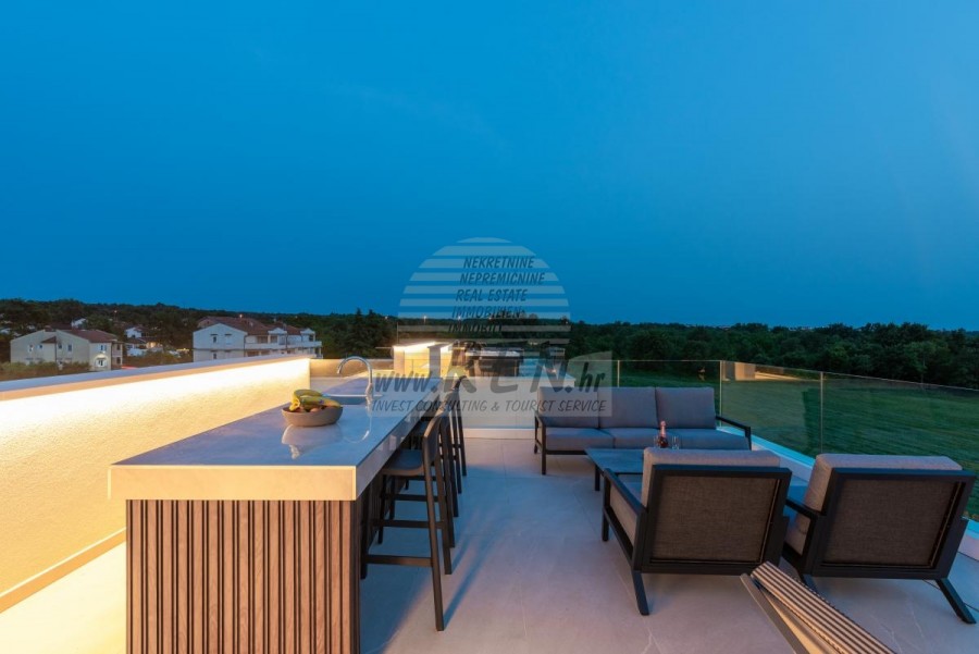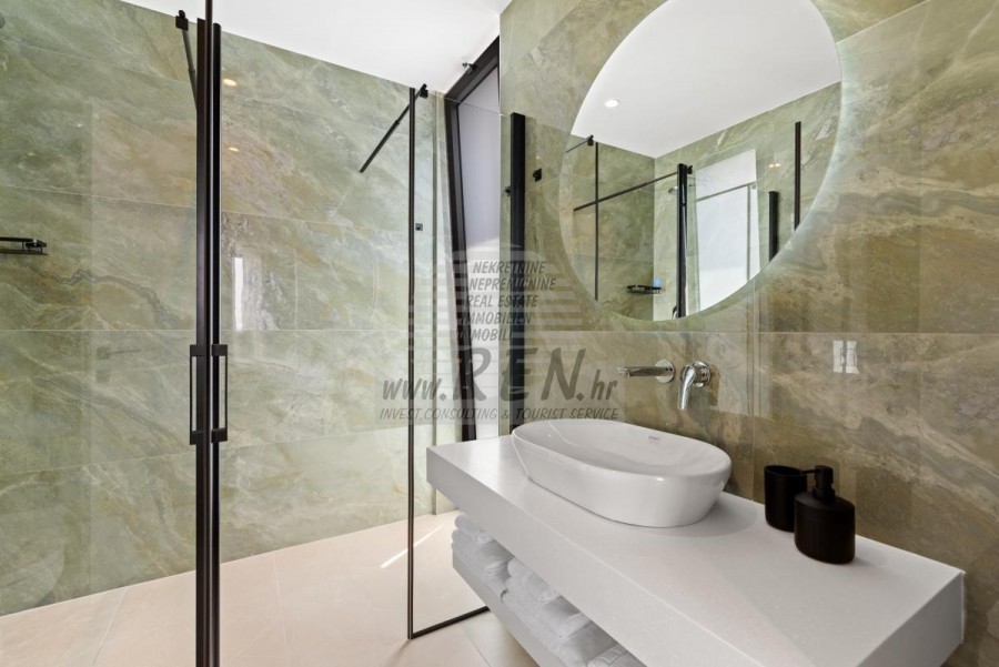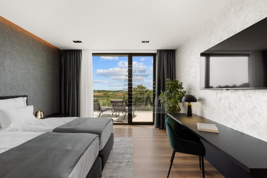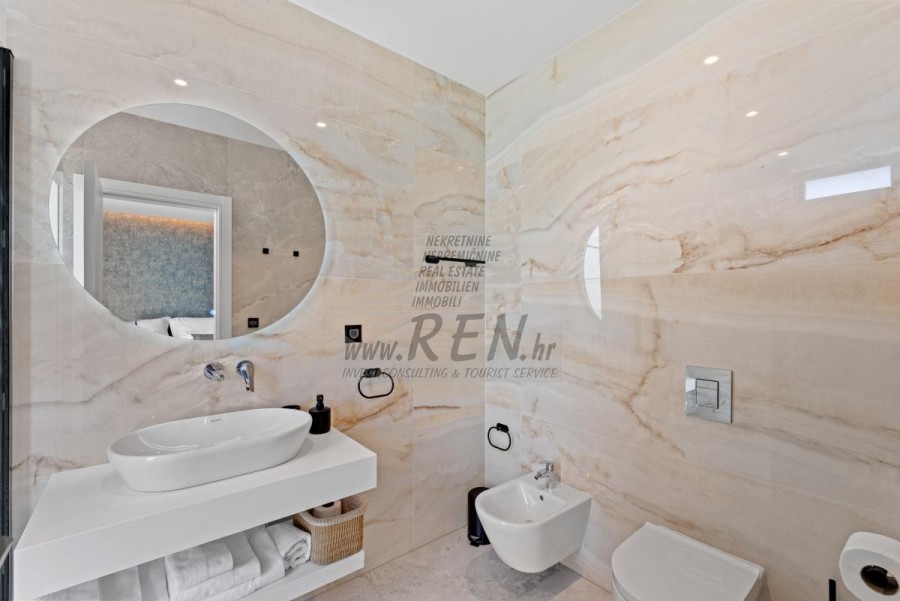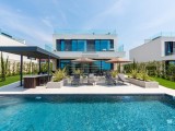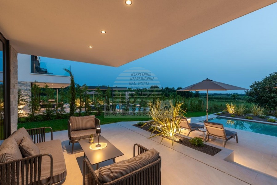 Il complesso di ville si trova su una superficie di 3730 m2. Si compone di 4 edifici indipendenti, completamente arredati e attrezzati con vista sul mare aperto. Metratura lorda di ciascuna abitazione: 270 mq (contano solo le superfici chiuse) Superficie residenziale netta interna: 204 mq (parte chiusa) Netti, aperti coperti e scoperti: 310 mq (lettino prendisole, tettoia, balconi, vialetti, braciere, terrazza sul tetto, scala esterna) Parcheggio: 3 posti auto (40 m2), ogni casa. Piscina: 36 m2 di superficie d'acqua Villa Parenzo uno - terreno 984 m2 - area verde 440 m2 Classe energetica: A (20 kWh/m2 anno) Pianta: P+1, (piano terra + primo piano) Il piano terra è composto da un ingresso, una scala per l'accesso al primo piano e alla terrazza sul tetto, un soggiorno, una cucina e una sala da pranzo, una camera da letto con bagno separato, un ulteriore WC, un bagno e una sauna, un locale tecnico con lavanderia, ripostiglio e wc esterno, ciascuno con ingresso indipendente. Al primo piano troviamo una scala, un corridoio, tre camere da letto con bagni separati e una palestra. C'è anche l'accesso alla terrazza sul tetto, dove si trovano un bar all'aperto, una zona solarium e una vasca idromassaggio. L'ambiente comprende una piscina esterna riscaldata, una zona prendisole, una terrazza coperta per pranzare, una tettoia con cucina estiva e una terrazza scoperta direttamente accanto alla piscina. C'è un pozzo del fuoco nella parte inferiore del cortile. Nel cortile è presente anche una doccia esterna di design con acqua calda e sifone a pavimento. La potenza elettrica noleggiata è di 18,86 kw - trifase, per ciascuna abitazione. Carpenteria esterna: Fabbro in alluminio di grande formato. Profilo in alluminio - ALIPLAST. Vetro SUNGUARD SN 70/35 HT 6 mm Temperato (70% Trasmissione Della Luce 35% Fattore Solare 1,0 W/m²K valore U) + 16 mm Al nero, PU, Argon + FLOAT CLEAR, 6 mm indurito. Profili con ponte termico interrotto, plastificati (RAL 7016). Tutte le porte, finestre e posizioni fisse sono realizzate con il sistema ALIPLAST SUPERIAL 800 e SUPERIAL (profondità telaio 75mm, profondità anta 75mm). Le posizioni di scorrimento sono realizzate nel sistema ULTRAGLIDE (profondità telaio 154 mm). Il coefficiente di trasferimento del calore per tutte le posizioni è inferiore a 1,3 W/(m2*K). Isolamento delle pareti: combinazione al piano terra di styrodur XPS 8 cm + rivestimento in pietra 5 cm e polistirolo EPS 10 cm, dove non è presente pietra. Pavimenti in polistirolo EPS 16 cm - facciata bianca e polistirolo 10 cm sulle parti antracite. Pietra di Canfanaro tagliata a mano, spessore 5 cm. Riscaldamento: Vailant, pompa di calore aria-acqua esterna alimentata da energia elettrica - impianto di riscaldamento da 10,3 kw e preparazione acqua calda in classe energetica A++, con un ulteriore locale macchine in casa e un boiler da 300 litri e circolazione. Riscaldamento a pavimento in tutte le stanze con regolatori separati per camera/bagno. Possibile controllo remoto tramite rete Wi-Fi. Raffreddamento/riscaldamento: È stato installato un sistema Samsung Multi Split con due unità esterne e 6 unità interne. Dotato della capacità di raffreddare e riscaldare lo spazio fino a -30°C di temperatura esterna. Inoltre, i dispositivi sono dotati della tecnologia Wind-freeTM per un piacevole flusso d'aria. Possibile controllo remoto tramite rete Wi-Fi. Attrezzatura: • Impianti sanitari Premium Duravit, rubinetteria Grohe, sistemi di drenaggio Geberit e Tece, cassette Grohe, cabina doccia. • Ceramiche di altissima qualità delle più famose aziende italiane (Graniti Fiandre, Panaria, Keope, Love). Nei bagni, ceramiche di grande formato, posizionate fino al soffitto. • Sistema integrato per l'addolcimento dell'acqua proveniente dalla rete idrica. • Sistema di allarme Ajax di fascia alta integrato con sensore di movimento, rilevatore di perdite d'acqua e rilevatore di incendio. Versione in nero. • Videosorveglianza DVC con registratore HDD da 2 TB e 4 telecamere IP esterne da 5 Mpx. • Illuminazione del produttore austriaco Eglo. • Interruttori interni, pulsanti e prese del marchio italiano Bticino del gruppo Legrand. • Antenna e sistema satellitare completi integrati per ogni stanza. • Amplificatori di segnale Wi-Fi aggiuntivi integrati in casa e sulla terrazza esterna. • Porte interne del noto produttore italiano Braga con cerniere a scomparsa e serrature magnetiche, larghezza 44 mm, design Bianco Matrix con maniglie Prisma nere. • Videocitofono con controllo dell'apertura della porta d'ingresso e controllo elettronico. il cancello. • Caricatore Wallbox per la ricarica di auto elettriche Mercedes-Benz fino a 22 kW • Biocamino nel soggiorno • Canali e scarichi esterni su terrazze e balconi del principale produttore tedesco Aco • Ringhiera in vetro sul balcone e sulla terrazza sul tetto Cucina e mobili • Cucina Dan Kuchen, modello Silbermond nella versione antracite - cucina e isola, con piano in ceramica Sapienstone - Fior di Bosco, spessore 12 mm. • La cucina è dotata di tutti gli elettrodomestici da incasso Bosch necessari (forno, microonde, piano cottura, lavastoviglie e frigorifero combinato). • Nell'isola è installato anche un frigorifero per vino della marca Candy. • Lavello Franke, rubinetto Grohe, cappa Faber con canale di ventilazione. • Lavatrice e Asciugatrice Bosch, Serie 6, entrambe con capacità maggiore di 9 kg, situate in un armadio appositamente progettato nel locale tecnico. • Smart TV in tutte le camere, la dimensione nel soggiorno è di 75'' QLED 4K, mentre tutte le altre camere hanno una TV di dimensioni 55'' UHD LED 4K. • Le camere sono dotate di letti matrimoniali con materassi premium della linea Hespo Luxury Plus, armadi a muro, scrivania con poltrona Kave Home e lampade da notte. • In tutte le stanze sono stati installati tappeti Piere Cardin e parte delle pareti sono state rivestite con doghe Lamelio Milo color noce e carte da parati
