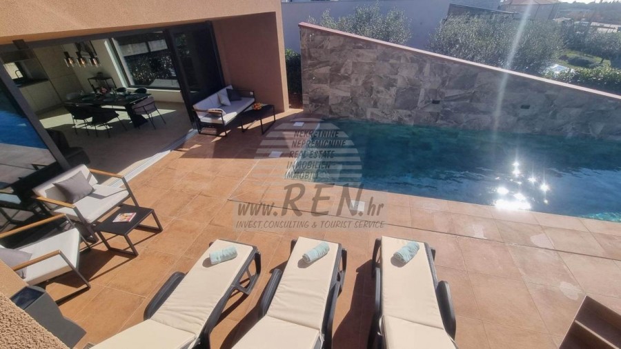 Immobili in Istria, vendo casa con piscina, Novigrad-Cittanova La casa a Cittanova ha un totale di 171 m2, dista 5 min. (2000m) dal mare e dalla bellissima spiaggia panoramica, a 5 min. (2000 m) dal centro di Cittanova. La casa ha un piano terra e primo piano. La casa è composta da cucina/soggiorno/sala da pranzo, ripostiglio, 3 camere da letto, 3 bagni, terrazzo + giardino. E' dotato di aria condizionata, piscina, parcheggio privato, vista mare. La casa è ubicata a soli 1500 m dal negozio, 1000 m dal ristorante, 3000 m dal mercato, dista 3000 m dal medico, farmacia dista 3000 m, aeroporto di Pola dista 60 km, l’aeroporto di Portorose dista 30 km, marina Novigrad dista 1000 m, e aquapark (Istralandia) dista solo 7 km. Per ulteriori informazioni stiamo alla vostra disposizione.