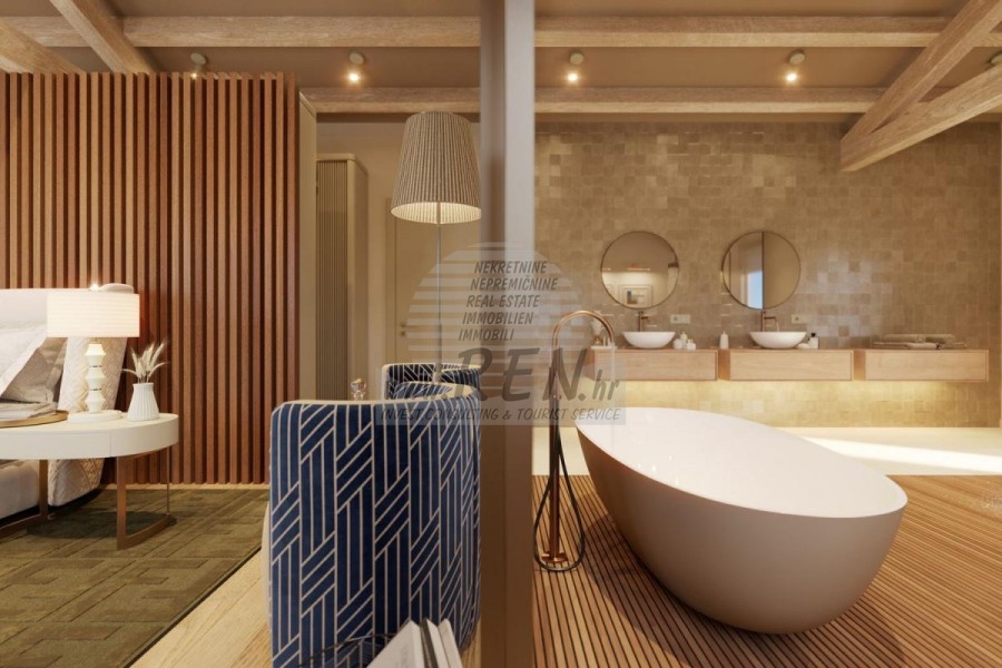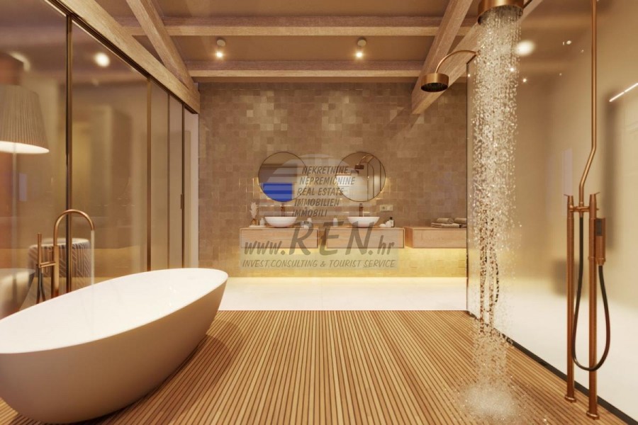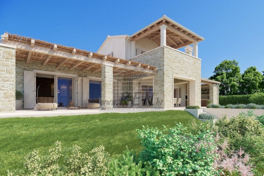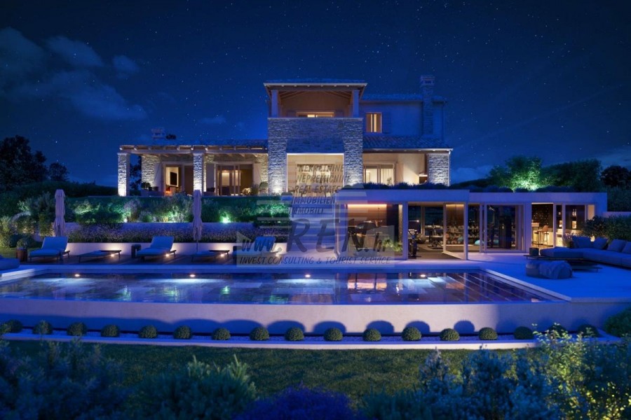Immobili di lusso Istria, vendo villa di pietra, dintorni Buje-Buie La villa di lusso con una delle viste più belle dell'Istria si trova in un luogo tranquillo e piccolo nelle vicinanze di Buje, da cui si gode una vista magica dal monte Učka, dal fiume Quieto e dal mare e persino dalle Alpi. Mentre nuoti nella piscina, puoi goderti la vista della valle del fiume Quieto, il terreno di caccia e la foresta di Montona, famosa per il famoso tartufo istriano. Completa proprietà di 1500 mq recintata e lontana da altre abitazioni. È circondato da un uliveto. La proprietà è di nuova costruzione secondo canoni ecologici, esclusivamente con materiali naturali come pietra/legno, il giardino è decorato esclusivamente con piante domestiche, ulivi. La villa dispone di 3 camere da letto con bagni annessi. La zona giorno si estende su 80 mq e comprende una lussuosa cucina con isola attrezzata con le più moderne tecnologie moderne... c'è anche una sala da pranzo, oltre a un soggiorno con una bellissima vista sul mare e il camino, ed è ha due portefinestre che conducono alla terrazza esterna, area prendisole, piscina, cucina estiva e prato. Nella cantina si trova una sala benessere e fitness, che offre anche una bellissima vista. Tutti i mobili sono firmati da designer e realizzati su misura. La struttura è dotata dei più moderni impianti di riscaldamento e raffrescamento centralizzato, oltre che di pannelli solari, e tutti i bagni sono dotati di riscaldamento a pavimento. Oltre ai panorami incantevoli e alla pace, la piscina offre anche una doccia esterna particolarmente ampia. La struttura dispone anche di un parcheggio per cinque auto, oltre a tutti i servizi aggiuntivi come; griglia all'aperto. Per ulteriori informazioni, si prega di contattarci.