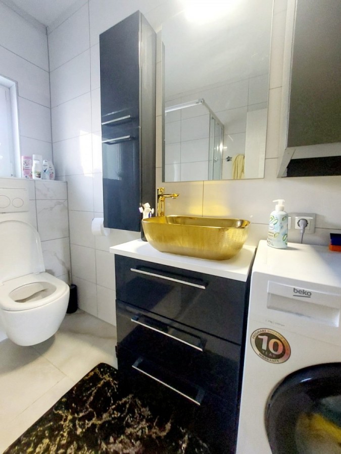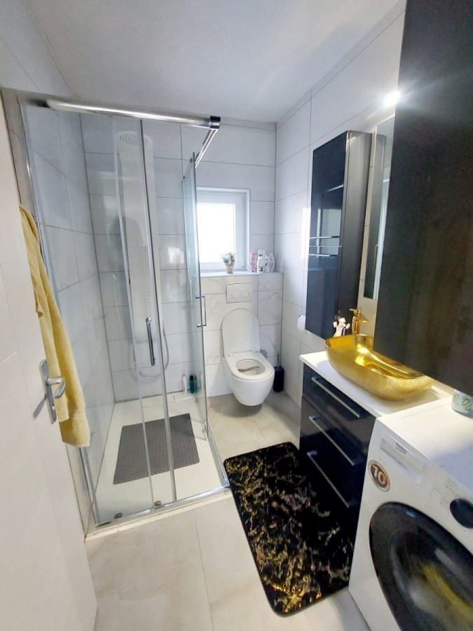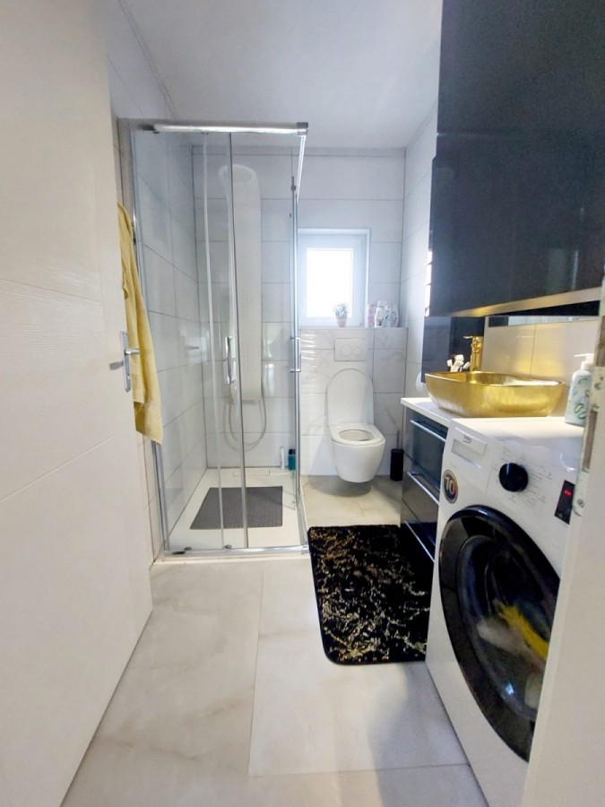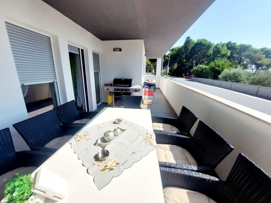 Appartamento posto al piano terra di una palazzina di complessive 5 unità. L'appartamento è composto da: ampio soggiorno con cucina e sala da pranzo, 3 camere, 3 bagni, terrazzo, ripostiglio. L'appartamento dispone inoltre di una parte di cortile di ca. 50 m2 e 2 posti auto. L'appartamento è completamente attrezzato e arredato (i mobili non sono inclusi nel prezzo). Ideale per la famiglia o l'affitto turistico. Prezzo 295.000 euro