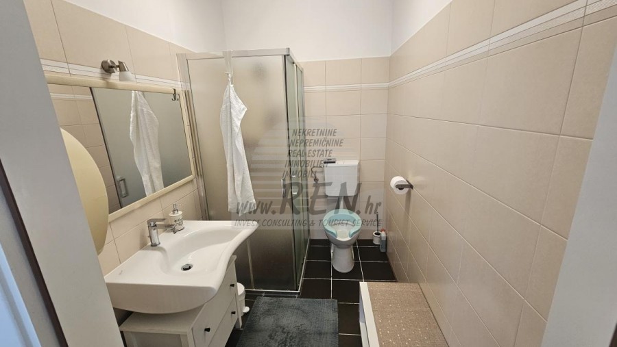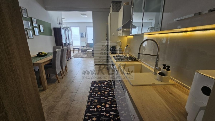 Presentiamo un’opportunità unica — una proprietà al piano terra di un piccolo edificio residenziale che unisce abitazione, potenziale commerciale e lusso all’aperto. La proprietà comprende due unità abitative completamente separate, uno spazio commerciale, un ampio giardino privato, una piscina con solarium e ben sei posti auto recintati. Nel cortile si trova anche una casetta da giardino con deposito, ideale per ulteriori utilizzi o come spazio hobby. Gli appartamenti di 70 m² e 80 m² vengono venduti completamente arredati e pronti per essere abitati. Ogni unità offre una disposizione ottimale: ampio soggiorno, cucina con zona pranzo, due camere da letto e bagno — perfetti per la vita familiare o per l’affitto turistico. Accanto alle unità abitative si trova uno spazio commerciale attualmente adibito a studio di fisioterapia. È separato dalla parte residenziale da una parete trasparente per garantire la privacy ed è composto da un ingresso con sala d’attesa e bagno. Questo spazio può essere facilmente adattato a varie attività. Il giardino curato di 221 m² nasconde una vera oasi — una piscina con area solarium di 126 m², ideale per rilassarsi e godersi le giornate estive in totale privacy. La proprietà offre anche la possibilità di unire i due appartamenti in un’unica grande unità, aumentando ulteriormente il suo potenziale d’investimento — sia per un’elegante residenza familiare, affitto turistico o combinazione di abitazione e attività commerciale. Il riscaldamento e il raffreddamento sono garantiti da climatizzatori, e uno degli appartamenti dispone anche di una stufa a legna per un’atmosfera accogliente durante l’inverno. Un’occasione rara per acquistare una proprietà versatile che unisce comfort, privacy e possibilità commerciali — la soluzione perfetta per una vita di qualità o un investimento redditizio.