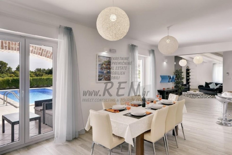 Luksuzne nekretnine Istra, prodajem kamenu kuću, okolica Pule Kuća ima ukupno 2x 220m2, zemljišta ima 1340 m2, udaljena je 5 min. (300m) od mora i od prekrasne uređene prirodne plaže, 5 min. (1000m) udaljeni ste od centra. Kuća je samostojeća te ima prizemlje i prvi kat (2 cjeline). Ukupno ima 4 spavaće sobe, kuhinju, dnevnu sobu, 3 kupatila, spremište, WC. Kuća ima vlastiti parking, 2 terase, kamin, 2 bazena 40m2, grijanje i hlađenje, uređen okoliš, pogled na more. Kuća je udaljena 1000 m od trgovine, 300 m udaljena je od restorana, 1000 m udaljena je od tržnice, doktor je udaljen 1000 m, apoteka je udaljena 1000 m, aerodrom Pula udaljen je 10 km, marina 300 m, autocesta je udaljena 3km. Za dodatne informacije stojimo Vam na raspolaganju.