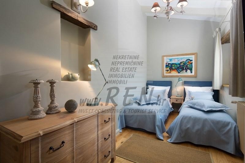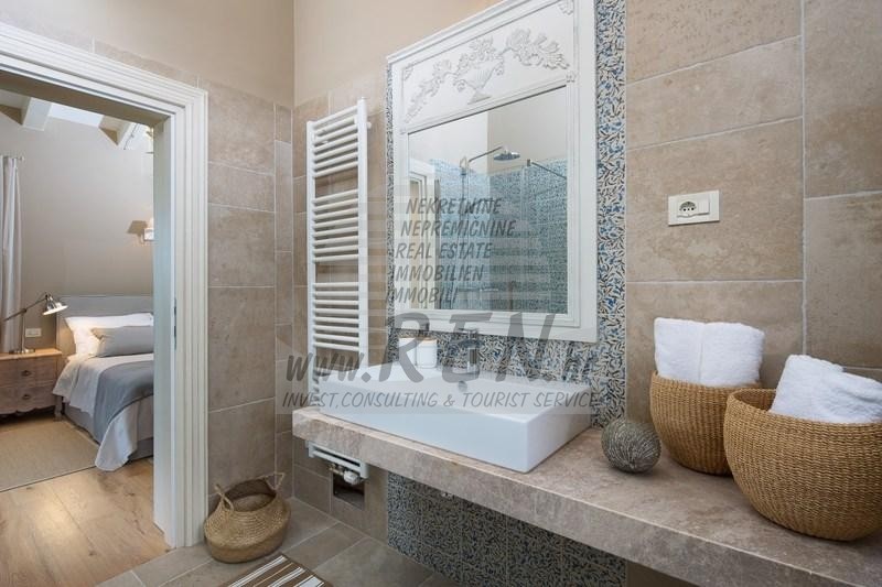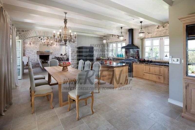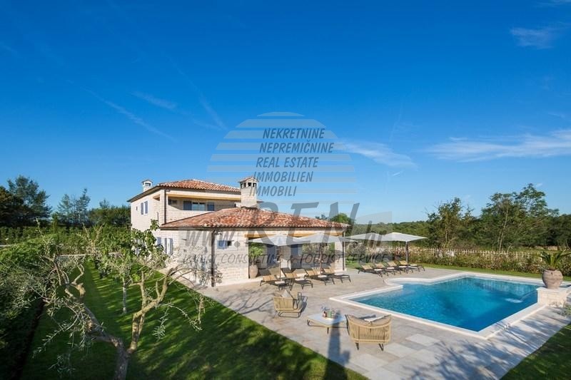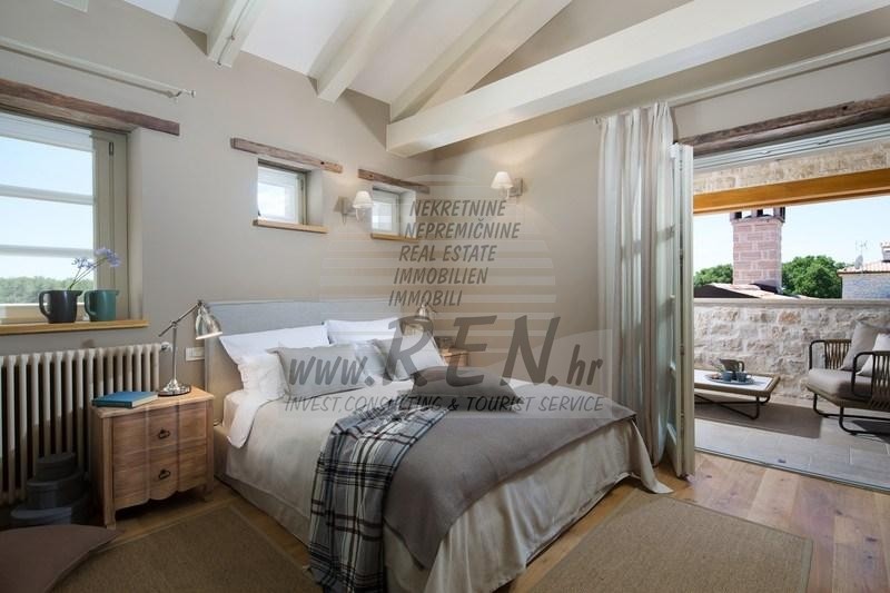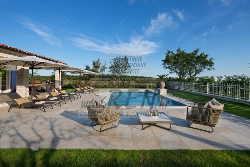 Luksuzne nekretnine Istra, prodajem kamenu vilu, Rovinj Villa Elli je luksuzna vila sa bazenom površine 353 m2 na dvije potpuno klimatizirane etaže kapaciteta 8 osoba. U prizemlju se nalaze prostrani dnevni boravak s kaminom, blagovaonica sa stolom i stolicama za 8 osoba, potpuno opremljena rustikalna kuhinja, spavaća soba s bračnim krevetom i kupaonicom. Na katu su raspoređene tri dvokrevetne sobe s kupaonicama. Dvije su s bračnim krevetom, a jedna s dva odvojena kreveta. Dvije sobe imaju izlaz na terase s očaravajućim pogledom na zelene pejzaže, pašnjake na kojima pasu istarska goveda Boškarini i more na horizontu. Za dodatne informacije stojimo Vam na raspolaganju.