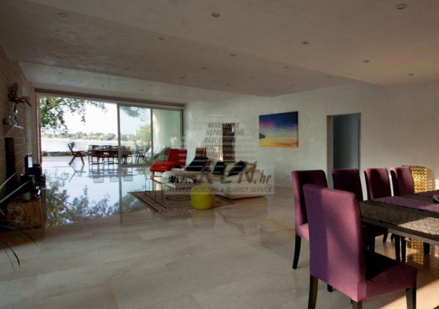Nekretnine Istra, prodajem vilu prvi red do mora, Novigrad, Lovrečica Kuća u Lovrečici ima ukupno 474 m2 + 1200 m2 vrt, sagrađena je 2000 godine, prvi red do mora, 15 min. (8000 m) udaljeni ste od centra grada Novigrada. Kuća se sastoji od podruma, prizemlja i prvog kata. Ukupno ima 6 spavaćih soba, 4 kupatila, kuhinja, teretana, ogroman prostor za zabavu s kaminom, otvorena blagovaonica, ostava, spremište, spa područje, garaža, dvije terase, trijem. Kuća ima klima jedinice, podno grijanje, ljetna kuhinja. Kuća je udaljena svega 500 m od trgovine, 500 m udaljena je od restorana, 500 m udaljena je od tržnice, doktor je udaljen 2000 m, apoteka je udaljena 2000 m, aerodrom Pula udaljen je 60 km, te aerodrom Portorož udaljen je 20 km, marina Novigrad 8000 m, te aquapark Istralandia udaljen je svega 10 km. Za dodatne informacije stojimo Vam na raspolaganju.