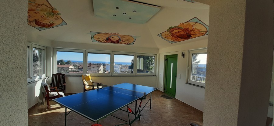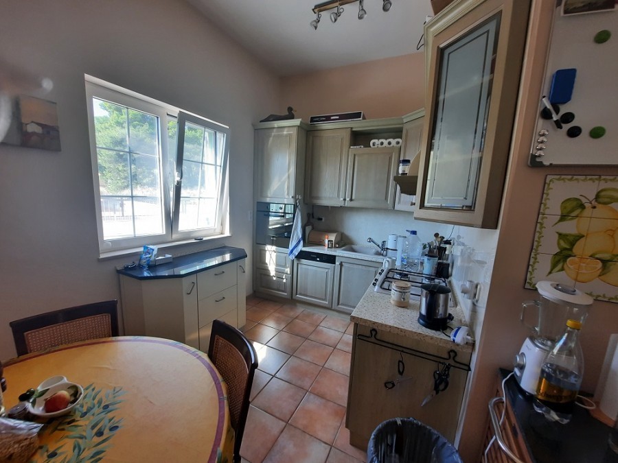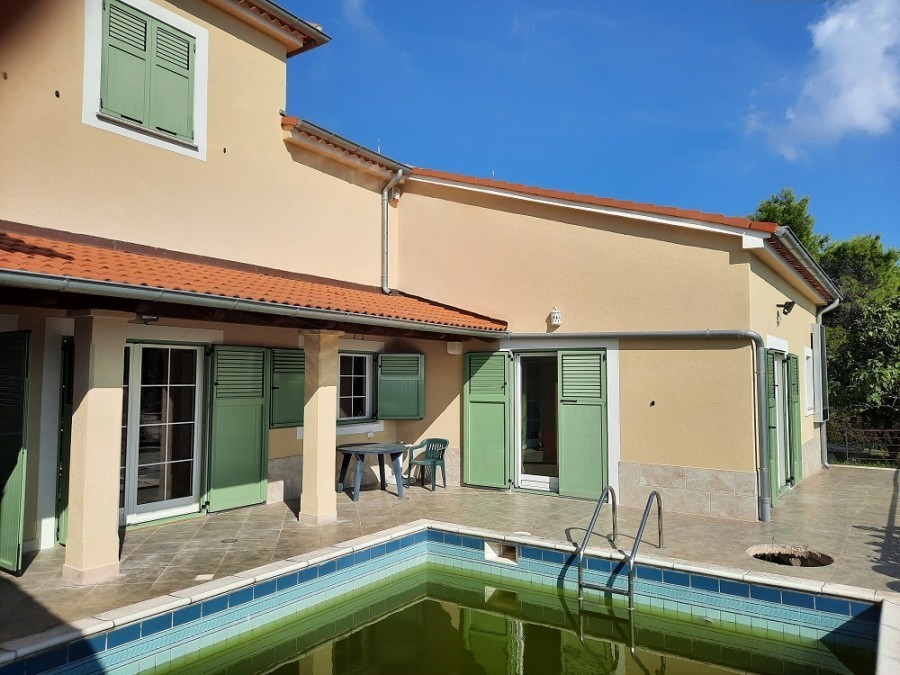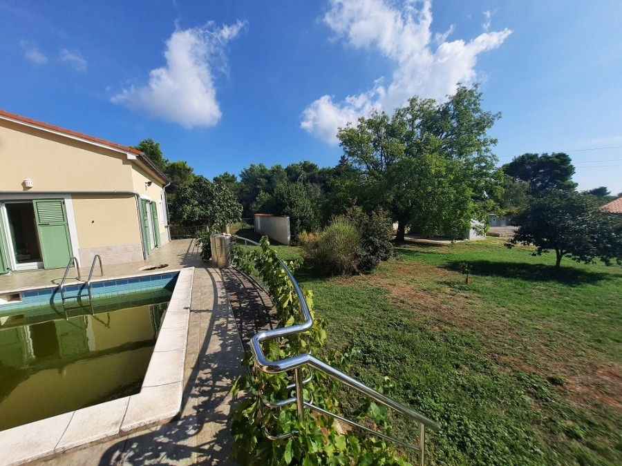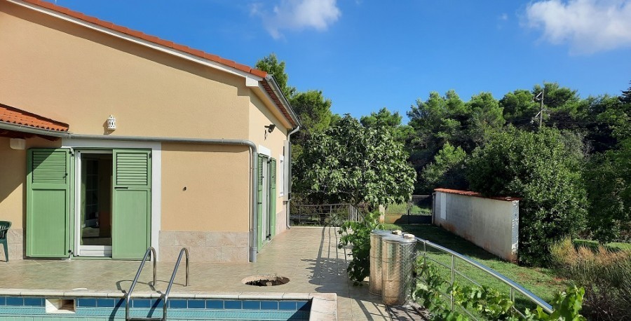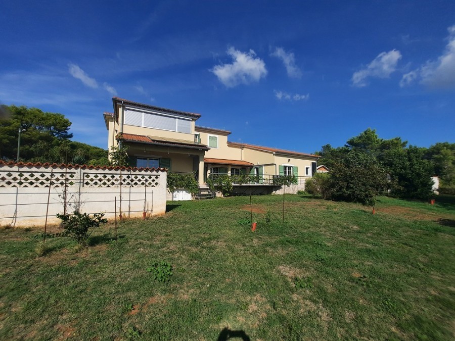 Medulin , vila sa bazenom prekrasan pogled na more. Ova vila se nalazi na mirnoj i tihoj lokaciji , okružena je zelenilom te nudi mir i privatnost. Iznimno zanimljivog rasporeda , pruža se na 2 etaže. U prizemlju se nalaze : kuhinja , blagovaona , ogromni dnevni boravak "open space " koncepta , iz kojeg se izlazi na terasu i bazen , 1 spavaće sobe iz koje se takođe izlazi na bazen , još 2 sobe koje mogu poslužiti kao ured, radiona ili za spavanje ,zatim toalet i hodnik te unutrnje stubište koje vodi na kat. Na katu su 1 spavaća soba sa kupaonom , te 2 dodatne prostorije koje me mogu urediti po želji vlasnika te prekrasna terasa koja gleda na more. Vila je kompletno opremljena i namještena te se kao takva i prodaje. Grijanje je na klimu i kamin na pelete. Prekrasna , pomno uređena i održavana okućnica se prostire na 1150m2 , s tim da su u ponudi na prodaju i susjedne parcele da bi se dobila još veća okućnica.