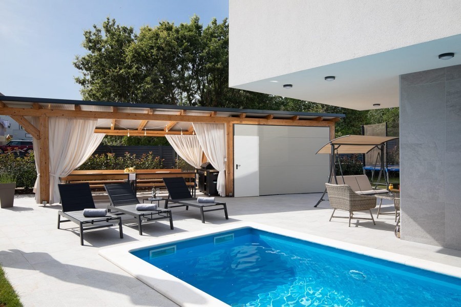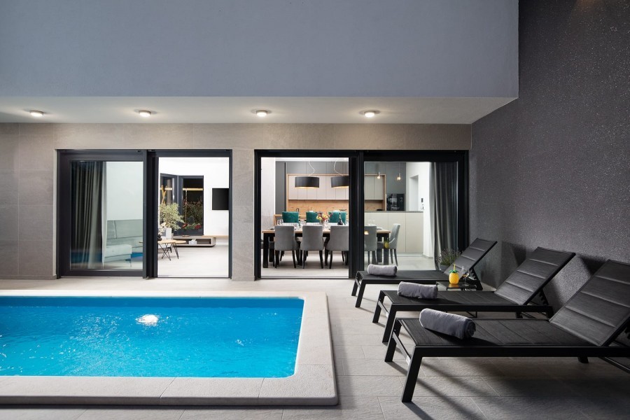 Medulin, luksuzna vila s bazenom Na izvrsnoj lokaciji u Medulinu, prodaje se villa s bazenom koja je u zadnjoj fazi izgradnje. Ova moderna i funkcionalan vila se prostire kroz 2 etaže. Na prvoj etaži su prostrani dnevni boravak s kuhinjom i blagovaonom, otvorenog tipa, s izlazom na terasu. U ovoj unikatnoj vili se nalaze 8 spavaćih soba, 8 kupaona, te wellness soba sa saunom i jacuzzijem. Villa se prodaje u potpunosti opremljena i namještena. Predviđeno je podno grijanje i klimatizacija svih prostorija. Na prostranoj okućnici se nalazi i grijani bazen od 30 m2. Svi podovi u stambenom dijelu su obloženi keramičkim pločicama, prozori su PVC antracit stolarija, sa ugrađenim komarnicima. Ne propustite pogledati.