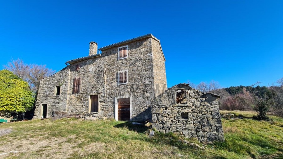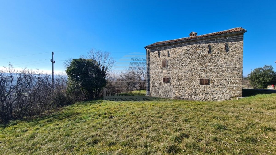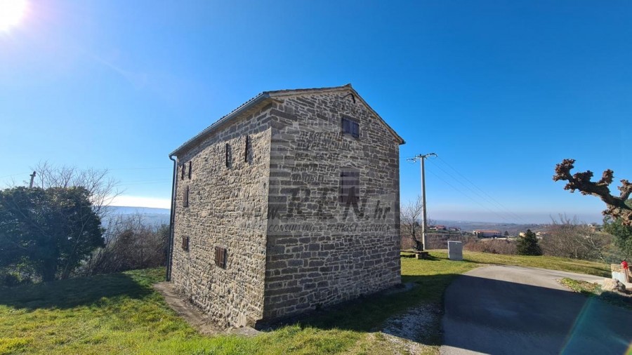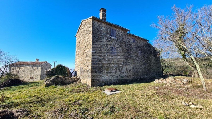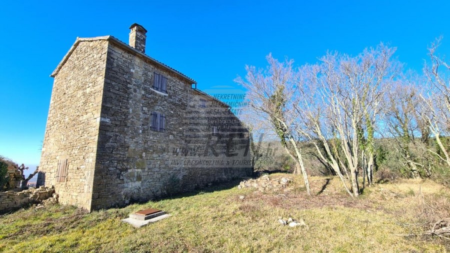 IMANJE NA VRHU BRDA S JEDINSTVENOM POZICIJOM I POGLEDOM NA MORE Sjeverozapadna Istra je područje Mediterana gdje se plavo Jadransko more stapa s zelenim brežuljcima što ga čini jednim od najljepših dijelova poluotoka. Ovaj kraj je također poznat po vrhunskim vinarima, maslinarima, agroturizmima i mnoštvom tipičnih istarskih konoba. Posebno su zanimljivi gastronomski izleti u restorane u kojima možete uživati u poznatim tartufima, divljači, kvalitetnom istarskom pršutu, sirevima i morskim specijalitetima. Na prekrasnom brežuljku u okolici Grožnjana s otvorenim pogledom na prekrasan krajolik i more, prodaje se kompleks kamenih kuća. Sa po 3 etaže ukupne površine od 180 m2, na parceli površine 1000 m2. Pristup kući vodi asfaltirani put, posjeduje priključak vode a struja se nalazi na rubu parcele. Vlasništvo je uredno, tereta nema. Udaljenost mora 10 km, Slovenije 13 km, a Italije 35 km. Mirna lokacija i pogled čine ovu nekretninu posebnom i jednom od rijetkih koje se danas mogu naći u prodaji. Također, ova kuća je idealna kao prekrasan drugi dom ili kao isplativa investicijska nekretnina. Svi zaljubljenici u Istru, njen krajolik i u kamene kuće, na ovu nekretninu zasigurno neće ostati ravnodušni!