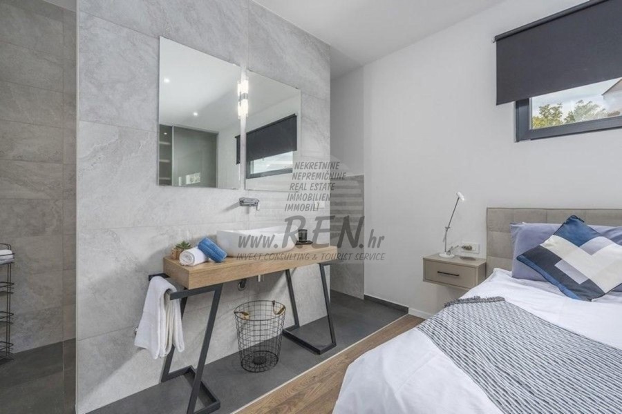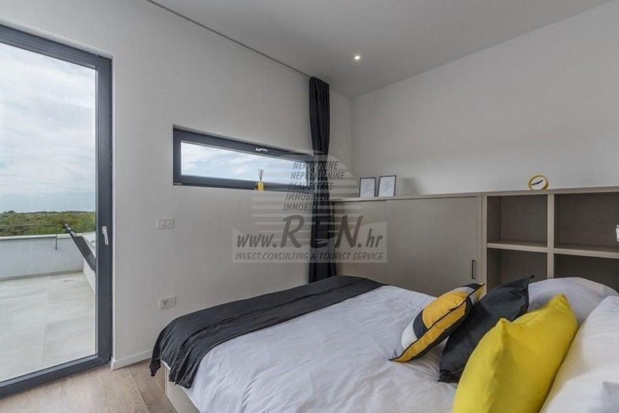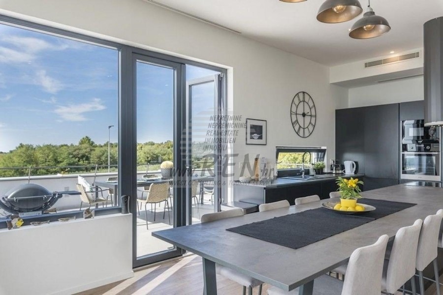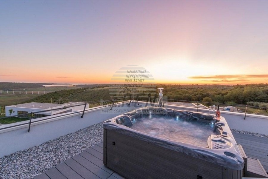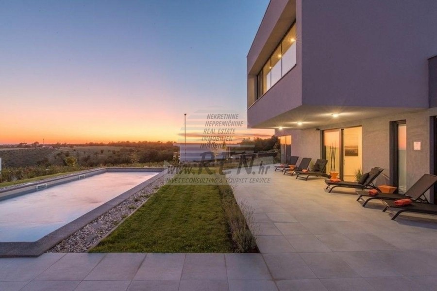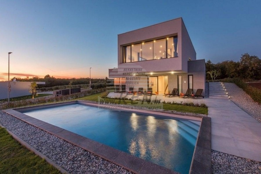 Nekretnine Istra, prodajem modernu Vilu, okolica Novigrada Vila ima ukupno 220 m2, zemljišta ima 1000 m2, udaljena je 10 min. (8km) od mora i od prekrasne uređene prirodne plaže, 10 min. (10km) udaljeni ste od centra Novigrada. Kuća je samostojeća te ima suteren i prizemlje. Ukupno ima 5 spavaće sobe, kuhinju, dnevnu sobu, studio, 4 kupatila, WC, spremište. Kuća ima vlastiti parking, krovnu terasu, terasu 40m2, bazen, ljetnu kuhinju, predivan pogled na more. Kuća je udaljena 2000 m od trgovine, 2000 m udaljena je od restorana, 4000 m udaljena je od tržnice, doktor je udaljen 10000 m, apoteka je udaljena 4000 m, aerodrom Pula udaljen je 60 km, te aerodrom Portorož udaljen je 30 km, marina Novigrad 10000 m. Za dodatne informacije stojimo Vam na raspolaganju.