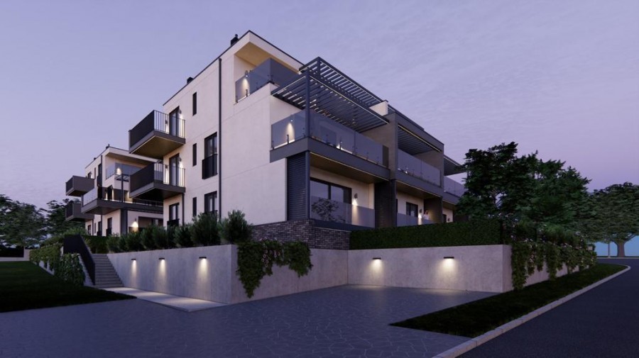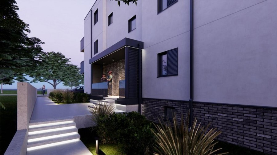Medulin, Pošesi, top lokacija!!! Na vrhunskoj lokaciji u Medulinu, samo 100 m od plaže, prodaju se stanvi u novogradnji. Samo 100 metara od mora i plaze s fantastičnim pogledom na more iz prizemlja! Riječ je o novogradnji zatvorenog tipa vrhunske kvalitete s vrhunskim građevinskim materijalima, liftom, klimom, podnim grijanjem, panoramskim ostakljenjem. Postoji mogućnost kupnje parkirnog mjesta za svaki stan i spremišta od cca. 20 m2 brutto za svaku jedinicu u podrumu. Kompleks se sastoji od dvije zgrade sa po 8 stanova. U ponudi je apartman broj 3 od69.23m2 koji se sastoji od dvije spavaće sobe, dvije kupaonice, dnevnog boravka s kuhinjom, te terasom sa pogledom na more, te. pripadajućeg vrta. Ukupna cijena je 490 000 eura.