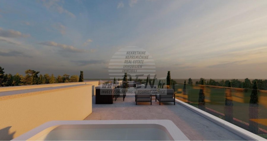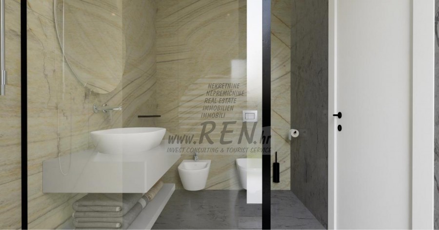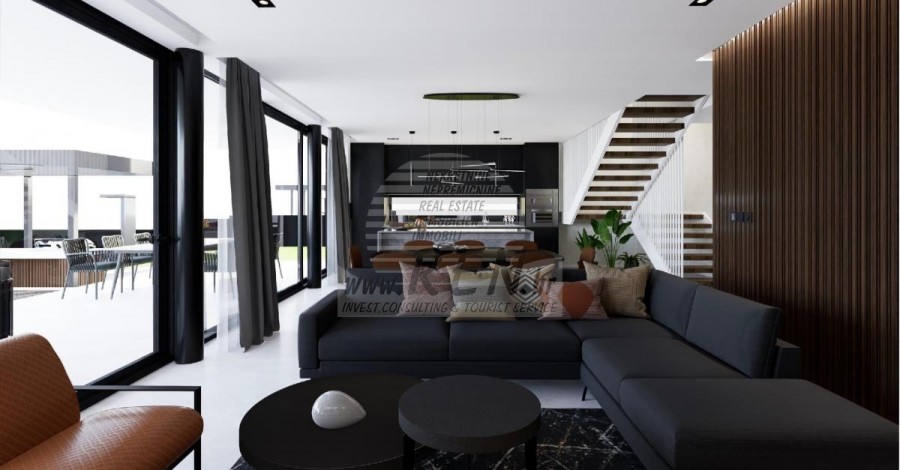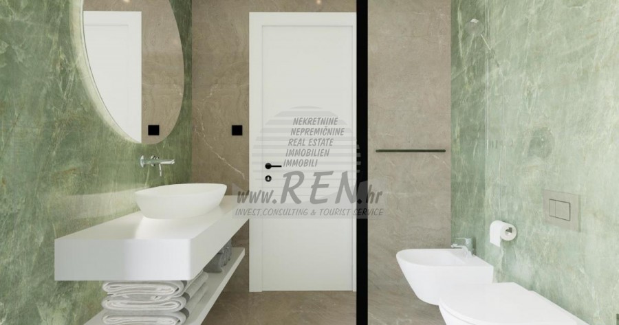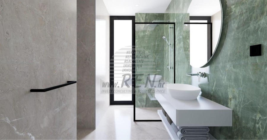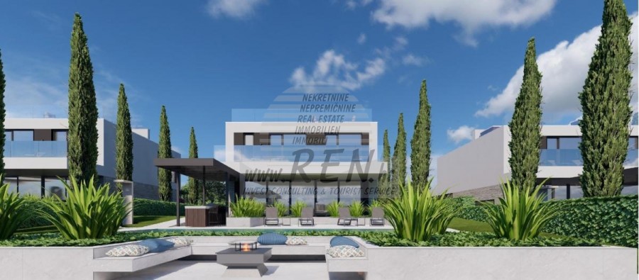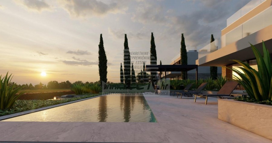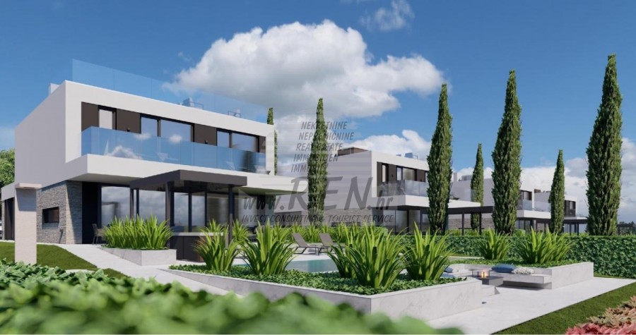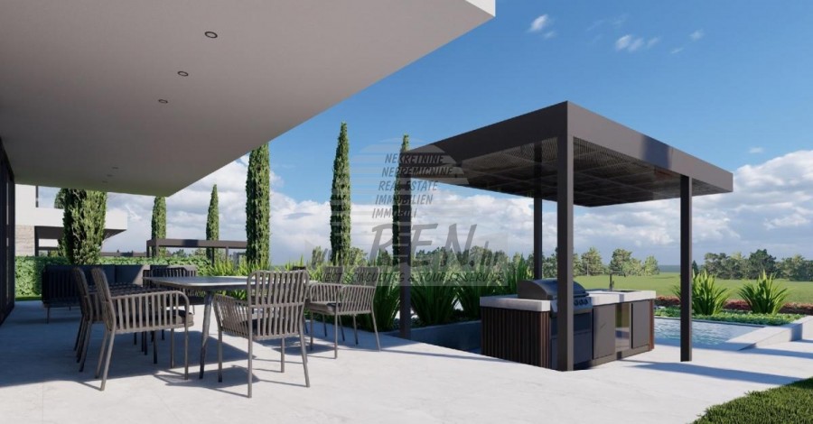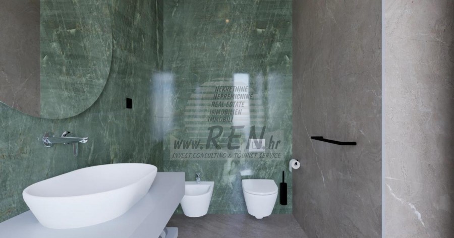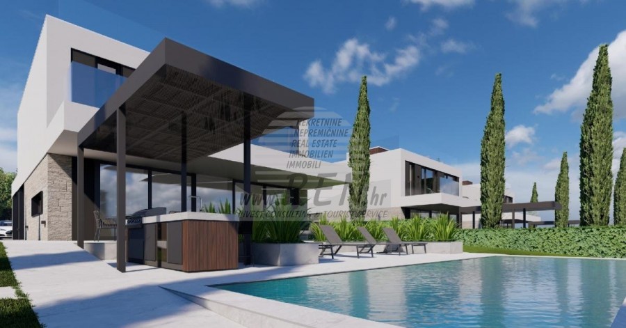 Kompleks vila se nalazi na površini od 3730 m2. Sastoji se od 4 samostojeća potpuno namještena i opremljena objekta iz kojih se pruža pogled prema otvorenom moru. Bruto kvadratura svake kuće: 270 m2 (računaju se samo zatvorene površine) Neto unutarnji stambeni dio: 204 m2 (zatvoreni dio) Neto, otvoreno natkriveno i nenatkriveno: 310 m2 (sunčalište, nadstrešnica, balkoni, staze, Fire-pit, krovna terasa, vanjsko stubište) Parking: 3 parkirna mjesta (40 m2), svaka kuća. Bazen (kuća 1): 30 m2 vodene površine Villa Parenzo one –parcela 1015 m2 - zelene površine 460 m2 Energetski razred: A (20 kWh/m2 godišnje) Etažnost: P+1, (prizemlje + kat) Prizemlje se sastoji od ulaznog pred-prostora, stubišta za pristup prvom katu i krovnoj terasi, dnevnog boravka, kuhinje i blagovaonice, spavaće sobe sa zasebnom kupaonicom, dodatnim toaletom, kupaonicom i saunom, tehničke prostorije s praonicom te ostavom i vanjskim toaletom koji imaju svaka zaseban ulaz. Na prvom katu se nalazi stubište, hodnik, tri spavaće sobe sa zasebnim kupaonicama i teretanom. Omogućen je i pristup na krovnu terasu, na kojoj se nalazi vanjski šank, sunčalište te hidro-masažna kada. U okolišu je vanjski grijani bazen, sunčalište, natkrivena terasa za objedovanje, nadstrešnica sa ljetnom kuhinjom i nenatkrivena terasa neposredno uz bazen. U donjem dijelu dvorišta nalazi se Fire-pit. U sklopu dvorišta nalazi se i dizajnerski vanjski tuš s toplom vodom i podnim sifonom. Zakupljena snaga električne energije je 18,86 kw – trofazna, po svakoj kući. Vanjska stolarija: Aluminijska bravarija velikog formata. Aluminijskih profil - ALIPLAST. Staklo SUNGUARD SN 70/35 HT 6 mm Kaljenje (70% Light Transmittance 35% Solar Factor 1.0 W/m²K U-value) + 16mm Al crna, PU, Argon + FLOAT CLEAR, 6 mm kaljeno. Profili s prekinutim toplinskim mostom, plastificirani (RAL 7016). Sva vrata, prozori i fiksne pozicije su rađeni u sistemu ALIPLAST SUPERIAL 800 i SUPERIAL, (dubina rama 75mm, dubina krila 75mm). Klizne pozicije su rađene u sistemu ULTRAGLIDE, (Dubina rama 154 mm). Koeficijent prolaska topline za sve pozicije je manji od 1,3 W/(m2*K). Izolacija zidova: Prizemlje kombinacija stirodur XPS 8 cm + kamena obloga 5 cm i stiropor EPS 10 cm, gdje nema kamena. Katovi stiropor EPS 16 cm - bijela fasada, a stiropor 10 cm na antracit dijelovima. Kamen Kanfanar ručno klesan, debljine 5 cm. Grijanje: Vailant, vanjska dizalica topline zrak-voda na električnu energiju - sustav grijanja snage 10,3 kw i priprema tople vode energetskog razreda A++, s dodatnom strojarnicom u kući i bojlerom od 300 litara te cirkulacijom. Podno grijanje u svim prostorijama u kojima se boravi sa zasebnim sobnim/kupaonskim regulatorima. Moguće upravljanje na daljinu putem wi-fi mreže. Hlađenje/dogrijavanje: Instaliran je Samsung Multi Split sustav s dvije vanjske jedinice i 6 unutarnjih. Opremljen mogućnošću hlađenja i grijanja prostora do -30C vanjske temperature. Uređaji dodatno imaju i Wind-freeTM tehnologiju za ugodno strujanje zraka. Moguće upravljanje na daljinu putem wi-fi mreže. Oprema: • Vrhunska sanitarna oprema Duravit, slavine Grohe, odvodni sustavi Geberit i Tece, vodokotlići Grohe, Walk-in tuš. • Vrhunska keramika najpoznatijih talijanskih proizvođača, (Graniti Fiandre, Panaria, Keope, Love). U kupaonicama keramika velikog formata, postavljena do stropa. • Ugrađen sustav za omekšavanje vode iz vodovodne mreže. • Ugrađen vrhunski alarmni sustav Ajax s senzorom pokreta, javljačem za istjecanje vode i požarnim detektorom. Izvedba u crnoj boji. • DVC Video-nadzor sa snimačem HDD od 2 TB i 4 vanjske IP kamere sa 5 Mpx . • Rasvjeta austrijskog proizvođača Eglo. • Unutarnji prekidači, tipkala i utičnice talijanske marke Bticino iz grupacije Legrand. • Ugrađen kompletan antenski i satelitski sustav za svaku sobu. • Ugrađeni dodatni wi-fi pojačivači signala u kući i na vanjskoj terasi. • Unutarnja vrata poznatog talijanskog proizvođača Braga sa skrivenim pantima i magnetnim bravama, širine 44 mm u izvedbi Bianco Matrix s crnim kvakama marke Prisma. • Video portafon sa kontrolom otvaranja ulaznih vrata te upravljanje el. kapijom. • Wallbox punjač za punjenje električnih automobila, marke Mercedes-Benz do 22 kw snage • Bio-kamin u dnevnom boravku • Vanjske kanalice i odvodi na terasama i balkonima vrhunskog njemačkog proizvođača Aco • Staklena ograda na balkonu i krovnoj terasi Kuhinja i namještaj • Dan Kuchen kuhinja, model Silbermond u antrhracit verziji - kuhinja i otok, sa radnom pločom od keramike Sapienstone – Fior di Bosco debljine 12 mm. • Kuhinja je opremljena sa svim potrebnim ugradbenim aparatima, marke Bosch, (pećnica, mikrovalna, ploča za kuhanje, perilica posuđa i kombinirani hladnjak). • U otoku je ugrađen i hladnjak za vino marke Candy. • Sudoper Franke, slavina Grohe, napa Faber sa ventilacijskim kanalom. • Perilica rublja i Sušilica rublja Bosch, Serie 6, obje većeg kapaciteta od 9 kg, smještene u posebno dizajniranom plakaru u tehničkoj prostoriji. • Smart TV u svim prostorijama, dimenzija u dnevnoj sobi je 75'' QLED 4K, a sve ostale sobe imaju TV dimenzije 55'' UHD LED 4K. • Spavaće sobe su opremljene bračnim krevetima s vrhunskim madracima linije Hespo Luxury Plus, ugradbenim ormarima, radnim stolom sa foteljom Kave Home te noćnim lampama. • U svim prostorijama su postavljeni tepisi marke Piere Cardin, a dio zidova je obložen letvicama Lamelio Milo boje orah i zidnim tapetama njemačke marke Hohenberger. • Dnevni boravak je opremljen vrhunskim talijanskim namještajem marke Tomasella, Sedit-Italia, Veneta Cucine, a sjedeća garnitura je marke Natuzzi. Sauna • Finska sauna rađena po mjeri, a obložena s Termo Smrekom Kyte te Led rasvjetom • Profesionalna saunska peć EOS THERMAT BLACK 7,5kW • Vanjska upravljačka elektronika HARVIA XENIO CX110 Dvorišni dio vile: Terasa ispred dnevnog boravka • Rattan sedia udobn