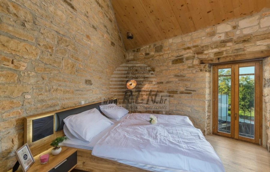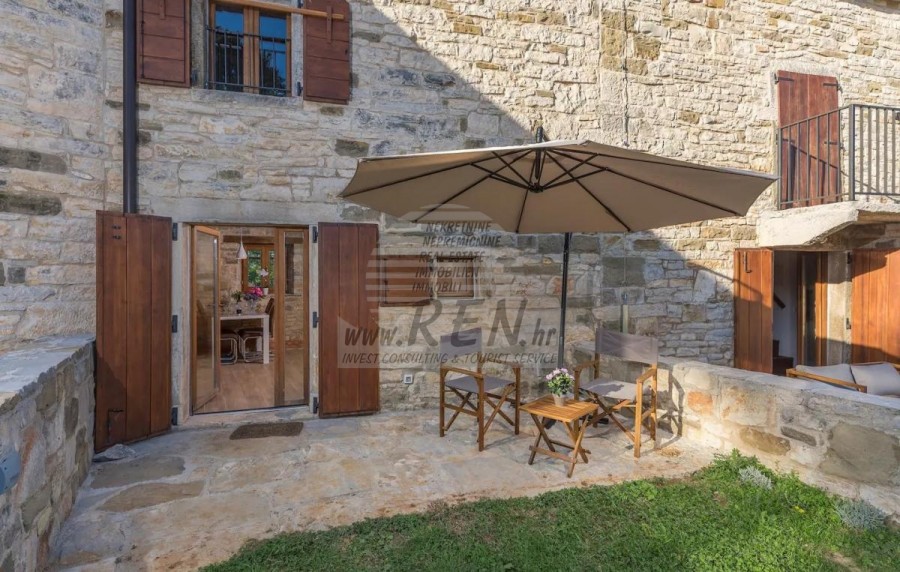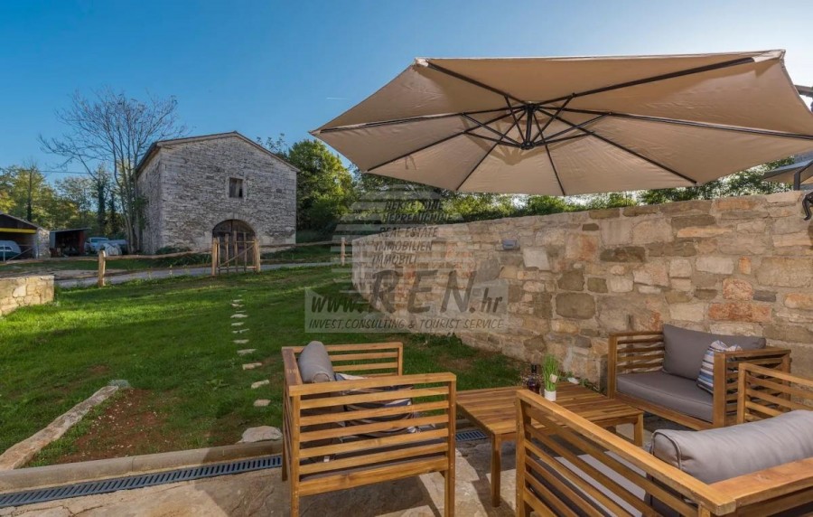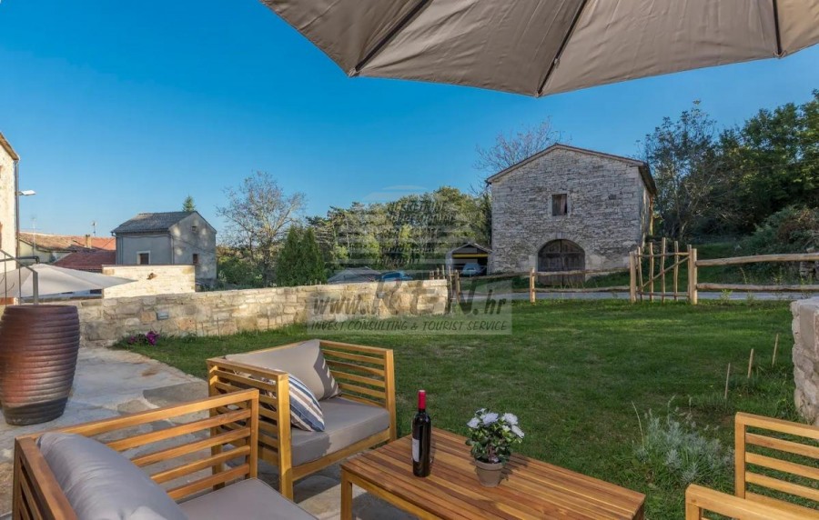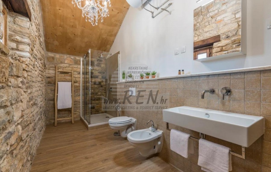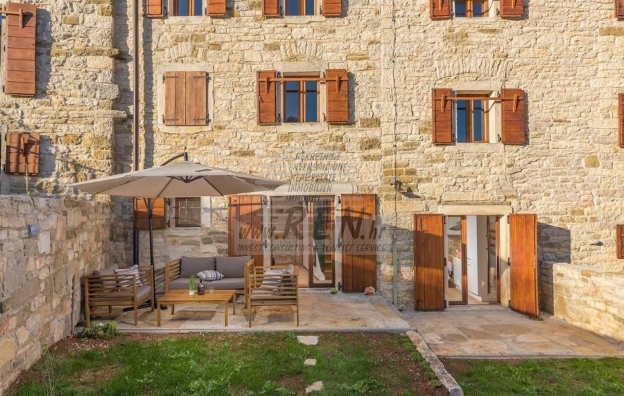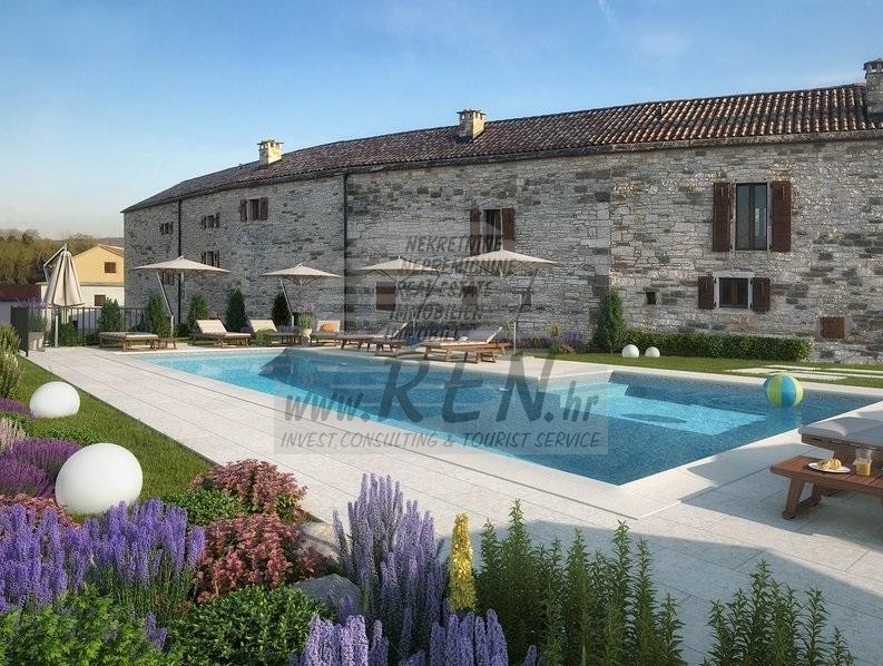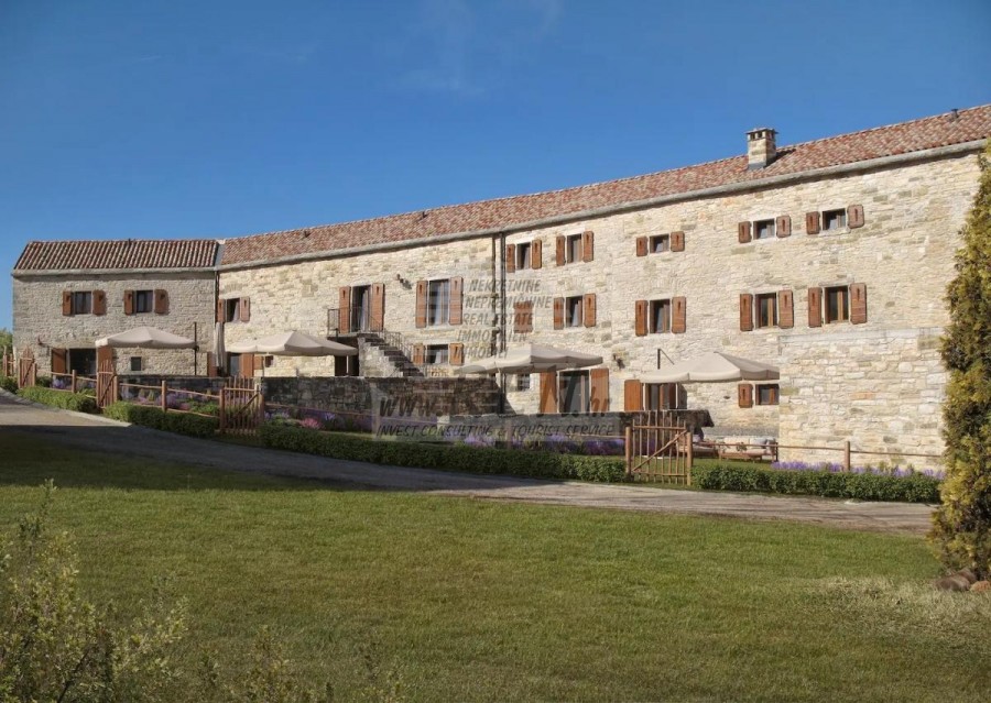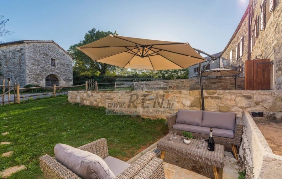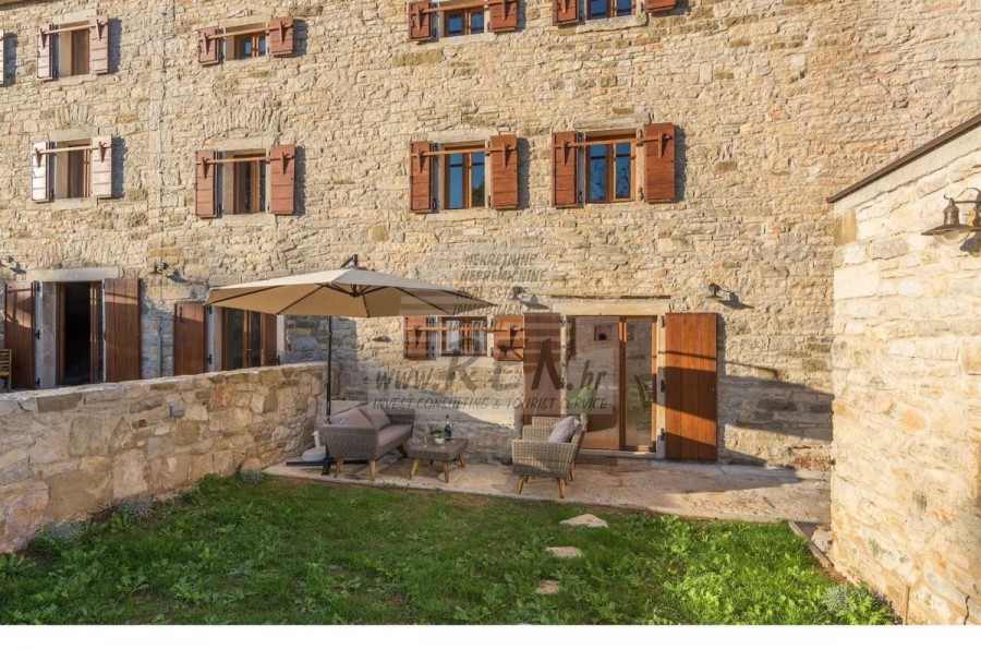 Luksuzne nekretnine Istra, prodajem kamenu Vilu, okolica Buja Luksuzna villa, podjeljena u 5 cjelina, nalazi se u mirnom i malom mjestu u okolici Buja, iz kojeg se pruža čaroban mir je ima svega par kuća u susjedstvu. Kompletno imanje od 1600 m2 ograđeno i udaljeno od ostalih kuća. Imanje je renovirano u skladu sa ekološkim standardima, isključivo sa prirodnim materijalima kao što je kamen, drvo te poštivajući tradicionalnu Istarsku arhitekturu. Okućnica je uređena isključivo sa domaćim biljkama, aromatima kao što su lavande, ružmarini, kadulje, od kojih dolaze nevjerovatani mirisi tijekom cijelog dana, tu su i ribizli, masline. Imanje obuhvaća 2 veće kuće svaka sa 3 spavaće sobe te 2 kupatila te 3 manje kuće sa po 2 spavaće sobe i 1 kupatilo. Osim kuće S2 koja ima po 1 spavaću te 1 kupatilo. Sve jedinice imaju svoj vrt te zajednički prostor gdje se nalazi bazen, sunčalište - očaravajućeg pogleda i mira, vanjski tuš te ljetnu kuhinju. Na imanju se nalazi i parking za više automobila. Nekretnina predstavlja odličnu priliku za investiciju pošto je cjeli kompleks u sustavu najma te iz godine u godinu broji odličnu popunjenost kao i veliko zadovoljstvo gostiju. Što garantira odličan godišnji prinos. Za dodatne informacije stojimo Vam na raspolaganju.