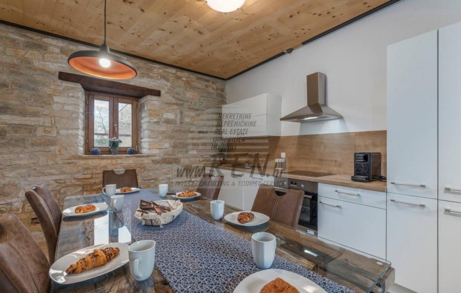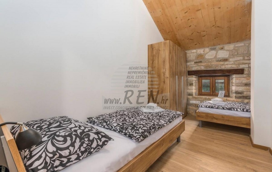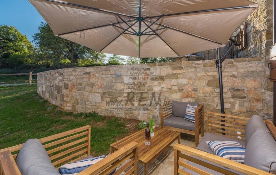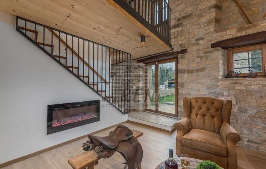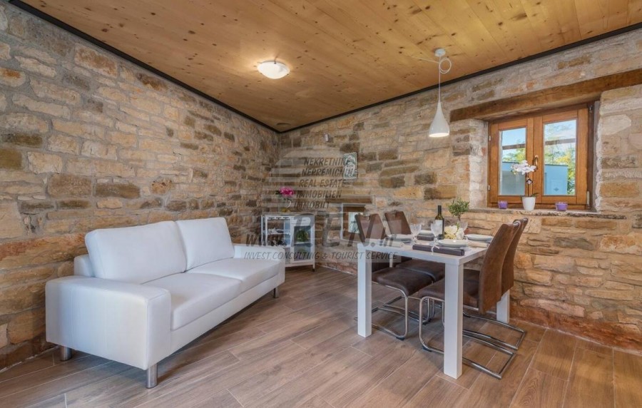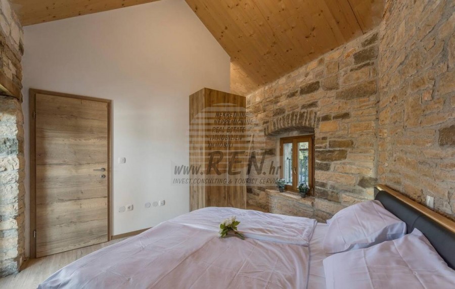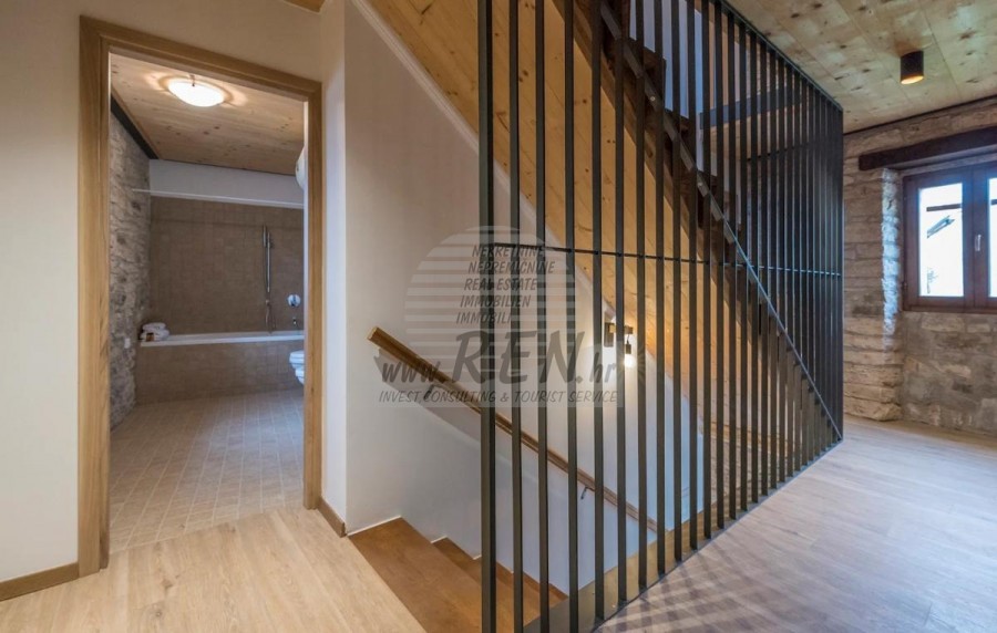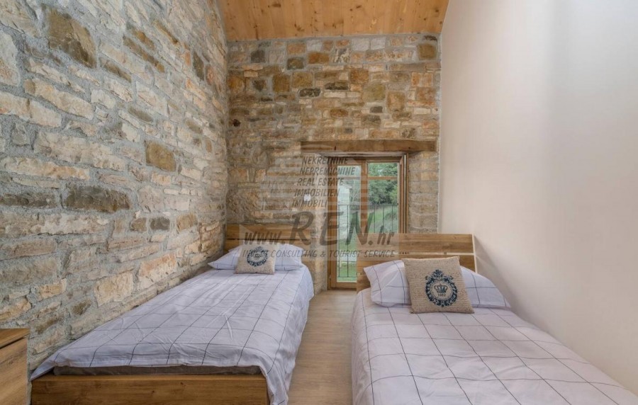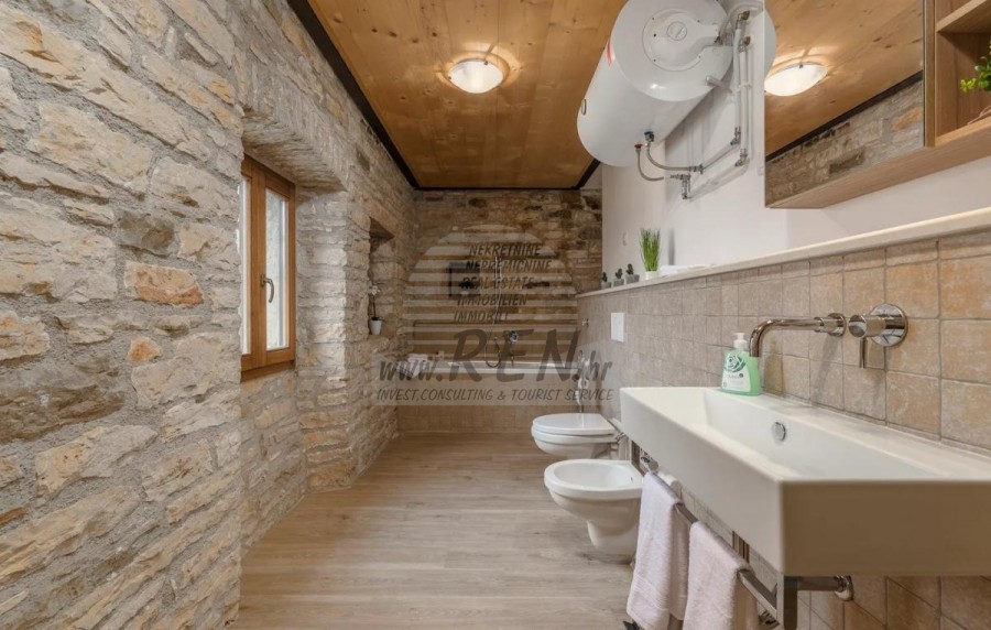 Luksuzne nekretnine Istra, prodajem kamenu Vilu, okolica Buja Luksuzna villa, podjeljena u 5 cjelina, nalazi se u mirnom i malom mjestu u okolici Buja, iz kojeg se pruža čaroban mir je ima svega par kuća u susjedstvu. Kompletno imanje od 1600 m2 ograđeno i udaljeno od ostalih kuća. Imanje je renovirano u skladu sa ekološkim standardima, isključivo sa prirodnim materijalima kao što je kamen, drvo te poštivajući tradicionalnu Istarsku arhitekturu. Okućnica je uređena isključivo sa domaćim biljkama, aromatima kao što su lavande, ružmarini, kadulje, od kojih dolaze nevjerovatani mirisi tijekom cijelog dana, tu su i ribizli, masline. Imanje obuhvaća 2 veće kuće svaka sa 3 spavaće sobe te 2 kupatila te 3 manje kuće sa po 2 spavaće sobe i 1 kupatilo. Osim kuće S2 koja ima po 1 spavaću te 1 kupatilo. Sve jedinice imaju svoj vrt te zajednički prostor gdje se nalazi bazen, sunčalište - očaravajućeg pogleda i mira, vanjski tuš te ljetnu kuhinju. Na imanju se nalazi i parking za više automobila. Nekretnina predstavlja odličnu priliku za investiciju pošto je cjeli kompleks u sustavu najma te iz godine u godinu broji odličnu popunjenost kao i veliko zadovoljstvo gostiju. Što garantira odličan godišnji prinos. Za dodatne informacije stojimo Vam na raspolaganju.