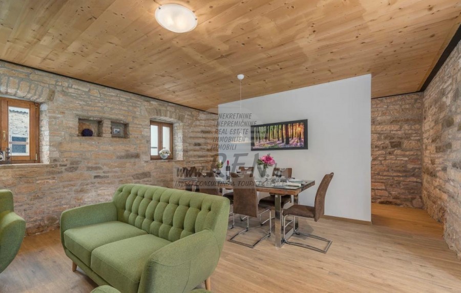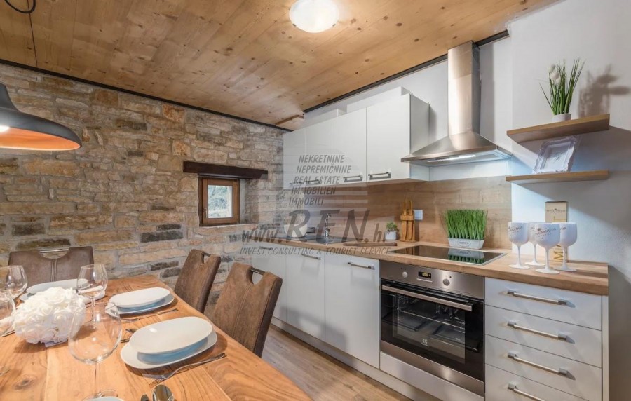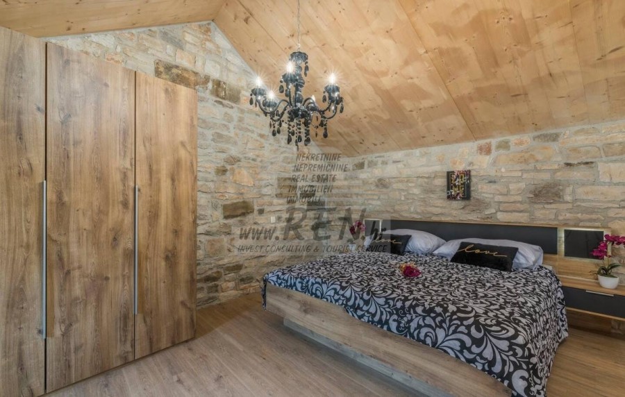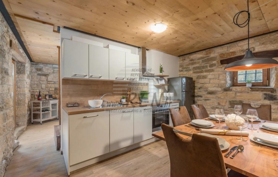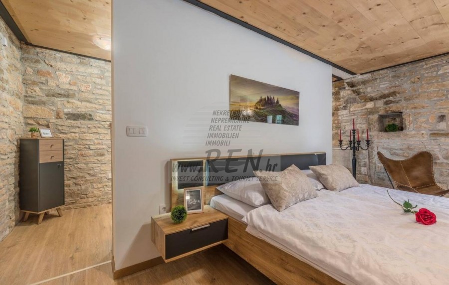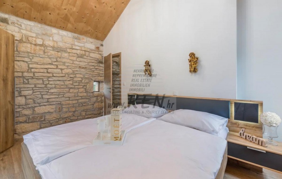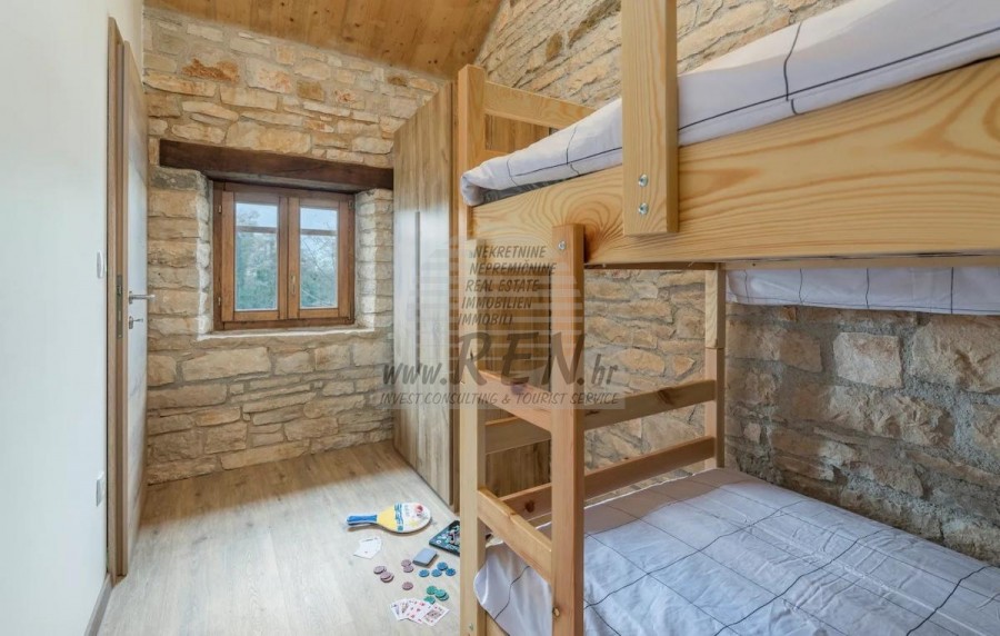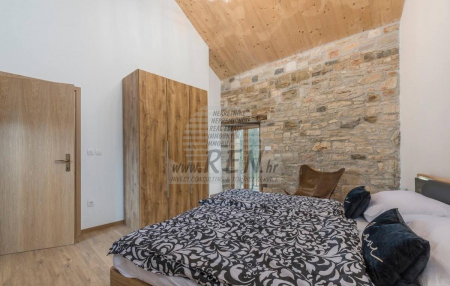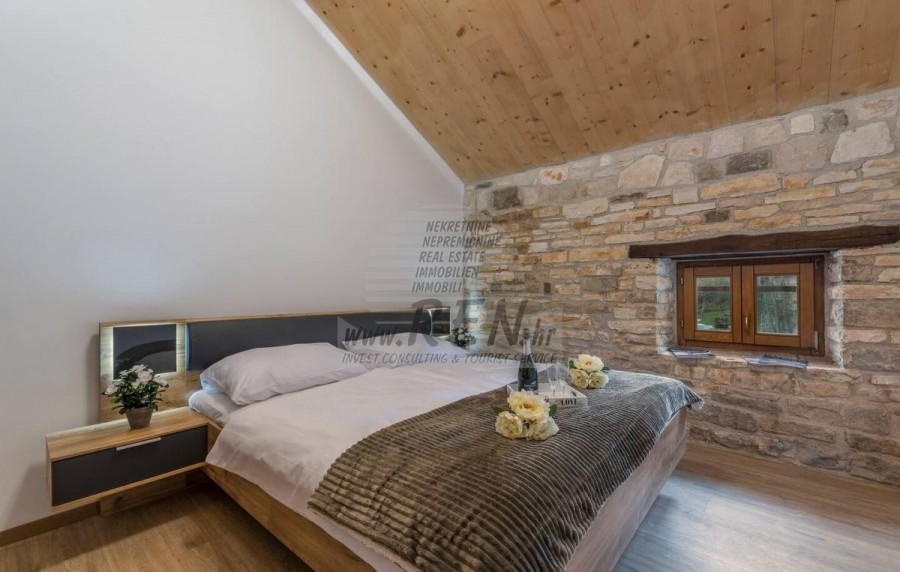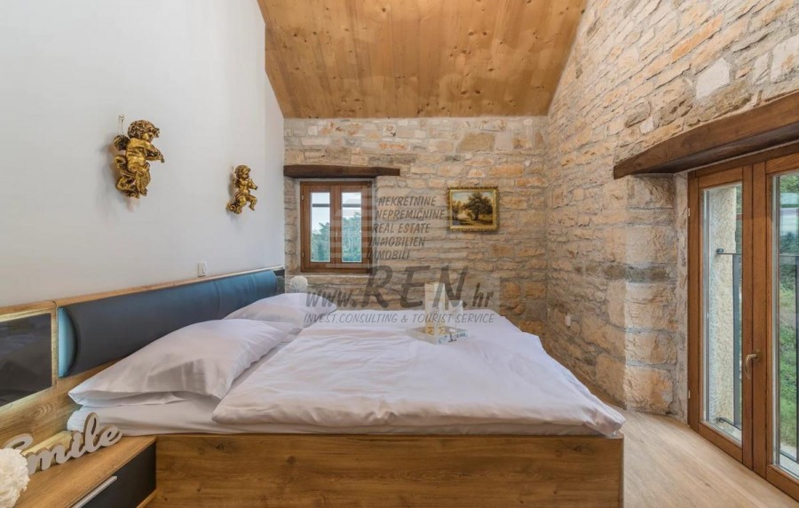 Luksuzne nekretnine Istra, prodajem kamenu Vilu, okolica Buja Luksuzna villa, podjeljena u 5 cjelina, nalazi se u mirnom i malom mjestu u okolici Buja, iz kojeg se pruža čaroban mir je ima svega par kuća u susjedstvu. Kompletno imanje od 1600 m2 ograđeno i udaljeno od ostalih kuća. Imanje je renovirano u skladu sa ekološkim standardima, isključivo sa prirodnim materijalima kao što je kamen, drvo te poštivajući tradicionalnu Istarsku arhitekturu. Okućnica je uređena isključivo sa domaćim biljkama, aromatima kao što su lavande, ružmarini, kadulje, od kojih dolaze nevjerovatani mirisi tijekom cijelog dana, tu su i ribizli, masline. Imanje obuhvaća 2 veće kuće svaka sa 3 spavaće sobe te 2 kupatila te 3 manje kuće sa po 2 spavaće sobe i 1 kupatilo. Osim kuće S2 koja ima po 1 spavaću te 1 kupatilo. Sve jedinice imaju svoj vrt te zajednički prostor gdje se nalazi bazen, sunčalište - očaravajućeg pogleda i mira, vanjski tuš te ljetnu kuhinju. Na imanju se nalazi i parking za više automobila. Nekretnina predstavlja odličnu priliku za investiciju pošto je cjeli kompleks u sustavu najma te iz godine u godinu broji odličnu popunjenost kao i veliko zadovoljstvo gostiju. Što garantira odličan godišnji prinos. Za dodatne informacije stojimo Vam na raspolaganju.