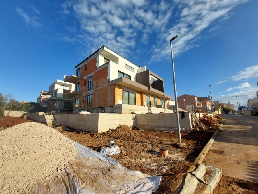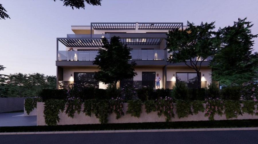 Medulin, Pošesi, top lokacija!!! Na vrhunskoj lokaciji u Medulinu, samo 100 m od plaže, prodaju se stanvi u novogradnji. Samo 100 metara od mora i plaze s fantastičnim pogledom na more iz prizemlja! Riječ je o novogradnji zatvorenog tipa vrhunske kvalitete s vrhunskim građevinskim materijalima, liftom, klimom, podnim grijanjem, panoramskim ostakljenjem. Postoji mogućnost kupnje parkirnog mjesta za svaki stan i spremišta od cca. 20 m2 brutto za svaku jedinicu u podrumu. Kompleks se sastoji od dvije zgrade sa po 8 stanova. U ponudi je apartman broj 4 od 80.23m2 koji se sastoji od 2spavaće sobe,2 kupaonice, dnevnog boravka s kuhinjom, te terasom, sa pogledom na more. Ukupna cijena je 530000 eura.