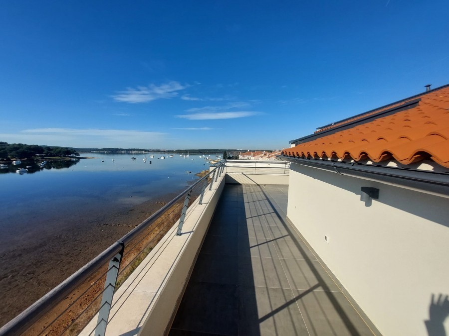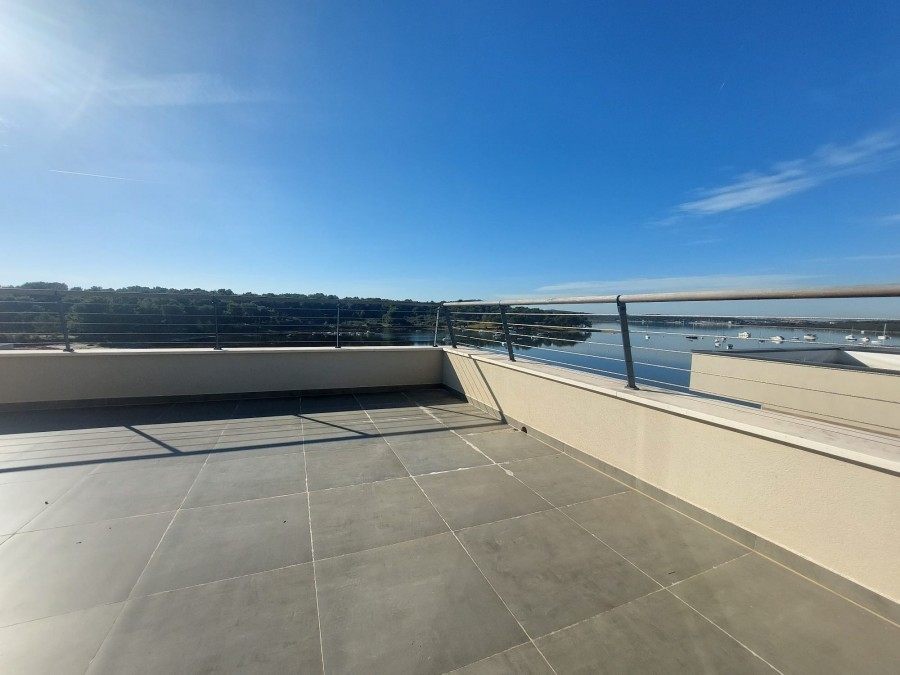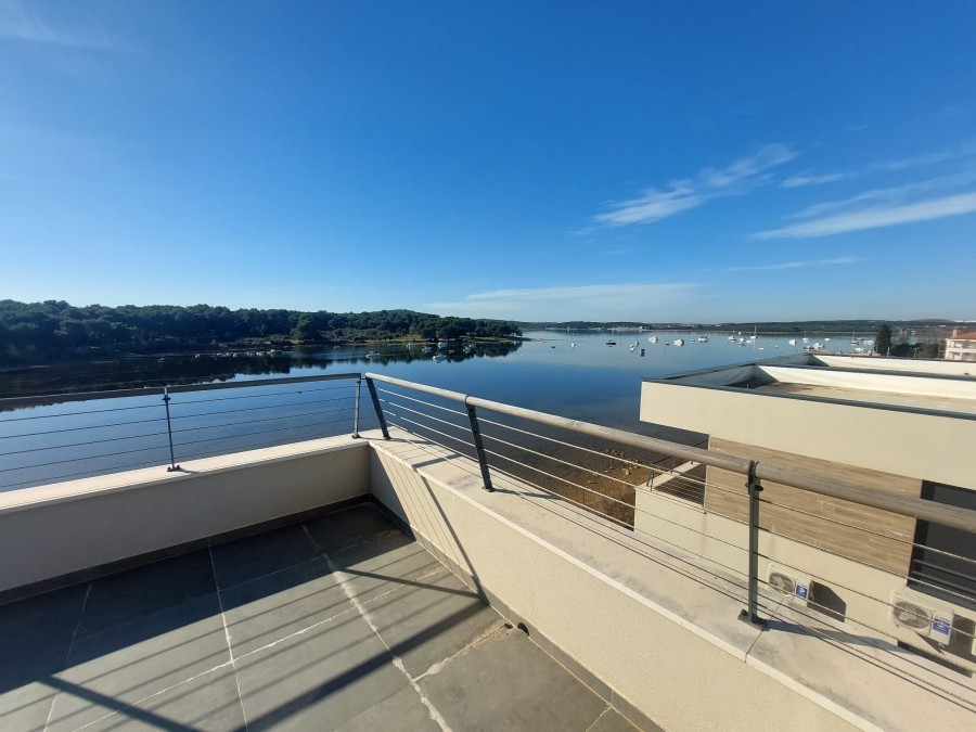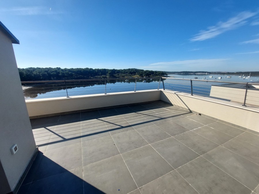 Top lokacija u Medulinu!!! Prvi red do mora. Na najatraktivnijoj lokaciji u Medulinu, s panoramskim pogledom na more, prodaje se jedinstven stan koji zauzima kompletnu treću etažu novoizgrađene manje zgrade. Sam stan sastoji se od ulaznog hodnika, velikog dnevnog boravka, kuhinje. tri spavaće sobe, 2 kupaone, te prostrane terase s koje se pruža jedinstven i trajan pogled na more i obližnji arheološki park Vižula. Oprema stana: Ugrađene su 2 klima uređaja, inverterska, Podovi su obloženi keramičkim pločicama vrhunske kvalitete, unutarnja stolarija, uključujući i klizna vrate koja vode terasu su kombinirani alu i pvc materijali, ulazna vrata su protuprovalna. Kupaone su˝ walk in˝ s kanalicama, i opremljene su s kupaonskim namještajem visoke kvalitete od MDF materijala, ugrađene su Hansgrohe špine, tuš kabine su izrađene od stakla. Za ovaj jedinstven stan na vrlo atraktivnoj poziciji, kupac ne plaća porez na promet nekretninama.