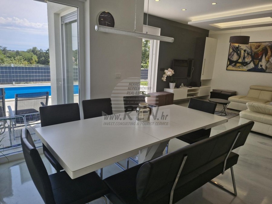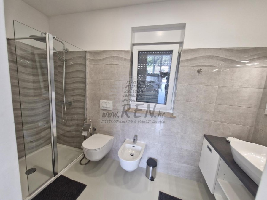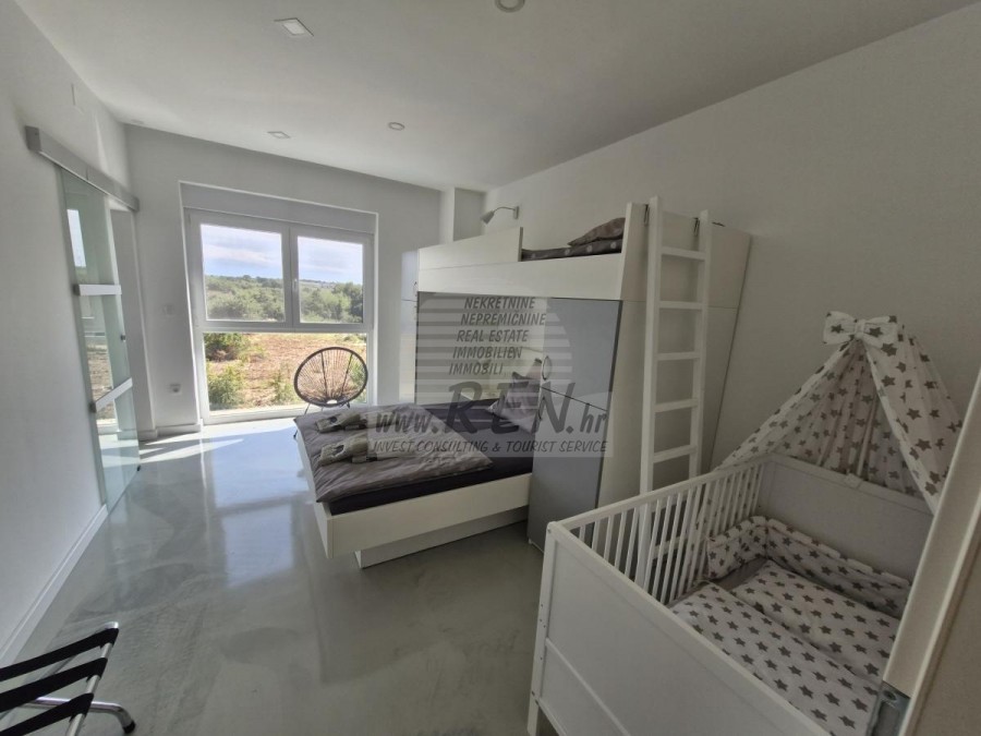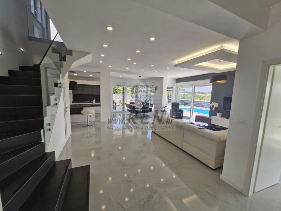 Nekretnine Istra, prodajem modernu vilu, Novigrad Kuća u okolici Novigrada ima ukupno 235 m2 + vrt 590 m2, udaljena je 1 min. (300m) od mora i od prekrasne uređene plaže, 10 min. (5000m) udaljeni ste od centra grada Novigrada. Kuća se sastoji se od prizemlja i prvog kata + krovna terasa. Ukupno ima 4 soba, 4 kupatila, kuhinju, dnevni boravak, terasu sa pogledom na more. Klima jedinice, bazen, ljetna kuhinja... Nalazi se na odličnoj lokaciji. Kuća je udaljena svega 200 m od trgovine, 200 m udaljena je od restorana, 1000 m udaljena je od tržnice, doktor je udaljen 1000 m, apoteka je udaljena 1000 m, aerodrom Pula udaljen je 60 km, te aerodrom Portorož udaljen je 20 km, marina Novigrad 500 m, te aquapark Istralandia udaljen je svega 10 km. Za dodatne informacije stojimo Vam na raspolaganju.