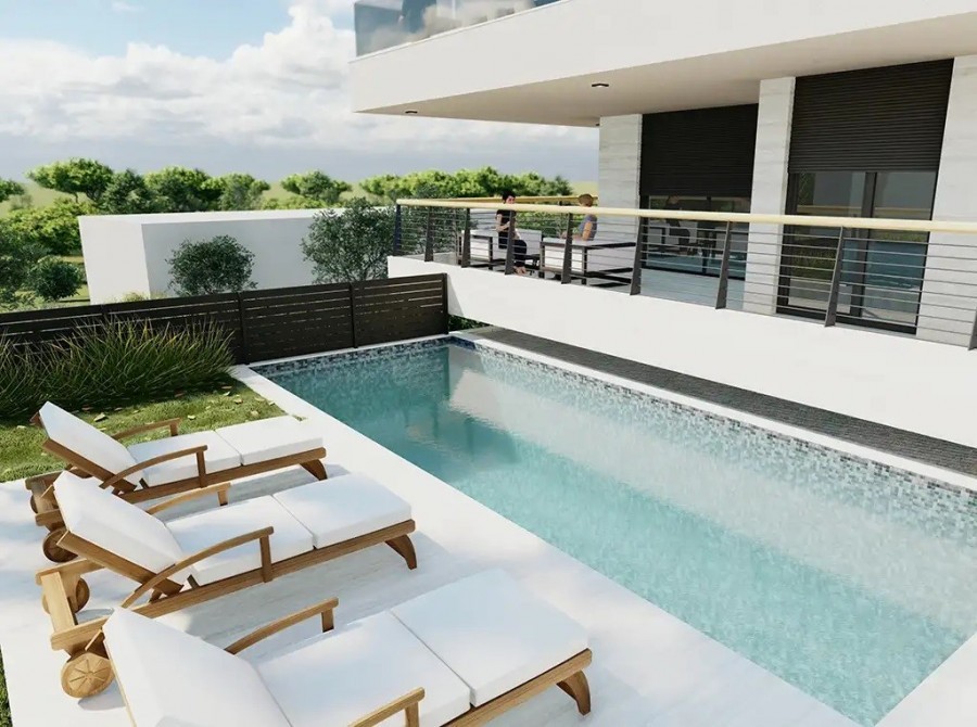 Projekt stambenih zgrada „GARDEN Residence“ nalazi se u Općini Medulin, samo nekoliko minuta vožnje od Pule. Na dohvat ruke je poštanski ured, supermarket, škola i vrtić, dom zdravlja, Medulinska riva i mnogobrojne plaže, što je savršeno za stanovanje, ali i turizam. Nadalje, u neposrednoj blizini su brojne popularne atrakcije, kao što su Amfiteatar u Puli koji je udaljen 12 km, arheološko nalazište Vižula udaljeno je 1,5 km, Nacionalni park Brijuni udaljen je 22 km, Rt Kamenjak udaljen je 16 km, i mnoge druge. GARDEN Residence čine dvije stambene zgrade od kojih svaka sadrži 3 stambene jedinice, parkirne garaže u podrumskoj razini i vanjska parkirna mjesta u prizemlju. Zgrade su jednog volumena, povišeno prizemlje + 2 kata, te jedne podrumske etaže. Svaka zgrada sadrži svoj vanjski, grijani bazen. Bazeni su grijani, te je silazak u iste reguliran stepenicama. Obloženi su visokokvalitetnim mozaikom, te su osvjetljeni zidnom rasvjetom. Vrhunska oprema renomiranih domaćih i stranih proizvođača. Prvoklasni troslojni hrastov parket. Prvoklasne talijanske keramičke pločice većih dimenzija. Podno grijanje u cijelom stanu preko dizalice topline. Sve obloge su prilagođene podnom grijanju. Topla voda je regulirana dizalicom topline. Sve sobe su klimatizirane (dnevni boravak i sve spavaće sobe). Apartman B2 se nalazi u u prizemlju zgrade B., i sastoji se od ulaznog hodnika, 3 spavaće sobe, 3 kupaone, zasebnog toaleta, dnevnog boravka s kuhinjom i blagovaonom, praone, spremišta natkrivene terase od 35.85 m2, te 2 garažna mjesta. Ovom stanu pripada i vrt od 125 m2, te ga čini posebnim.