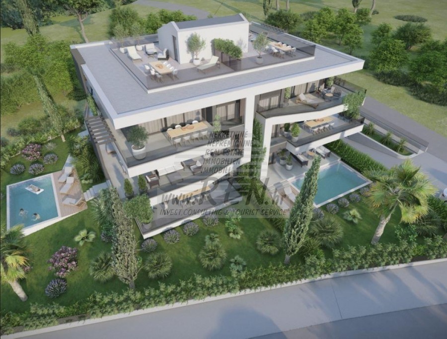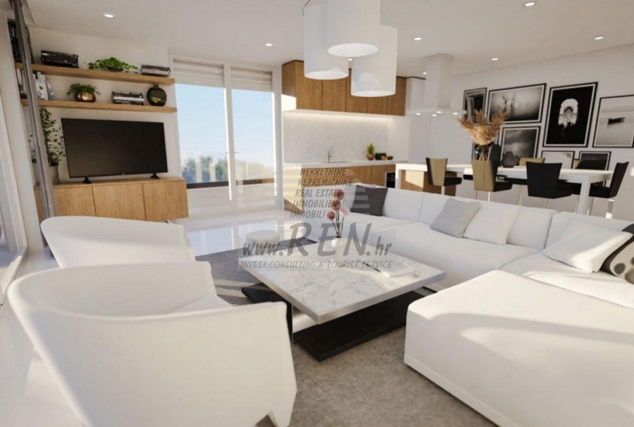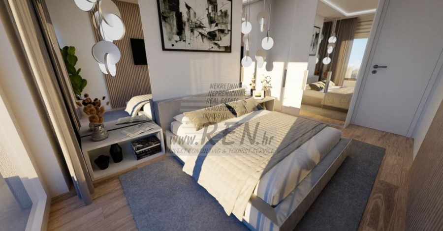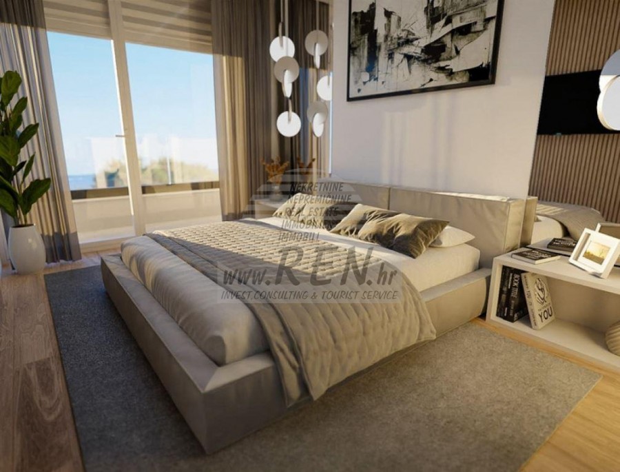 Luksuzne nekretnine Istra, prodajem stan sa pogledom na more, Rovinj Stan se nalazi na prvom katu u stambenoj zgradi s ukupno 6 stanova, udaljen od mora i najbliže plaže svega 600 m. U susjedstvu se većinom nalaze obiteljske kuće od koji neke služe i za turističko iznajmljivanje. Stan se sastoji od hodnika s garderobom, otvorenog dnevnog boravka s kuhinjom i blagovaonom, tri spavaće sobe, dvoje kupaonice, odvojenog WC-a za goste te ostave. Iz svih prostorija postoji direktan izlaz na veliku terasu koja je većim dijelom natkrivena. Stan će imati sigurnosna/protuprovalna ulazna vrata. Podne obloge u spavaćim sobama biti će višeslojni parket, a u ostalim prostorijama i na terasi keramika, a u svim prostorijama biti će postavljeno podno grijanje. U kupaoni postaviti će se visokokvalitetne sanitarije. Na prozorima i balkonskim vratima biti će alu stolarija s električnim podizačima roleta. Stan će imati video nadzor i video parlafon. Stanu pripadaju dva parkirna mjesta u podzemnoj garaži te spremište. Iz podzemne garaže prema ostalim etažama će postojati dizalo. Stan se prodaje ključ u ruke, bez namještaja. Završetak izgradnje predviđen je za kraj 2025. godine. Za dodatne informacije stojimo Vam na raspolaganju.
