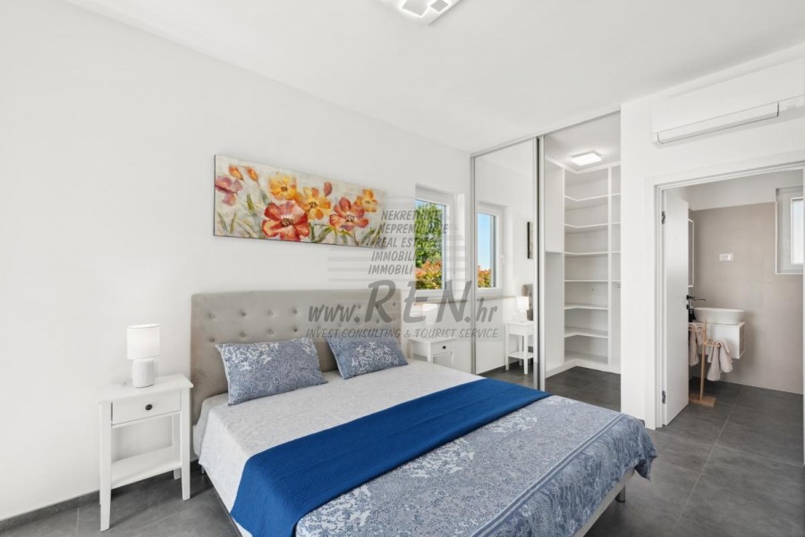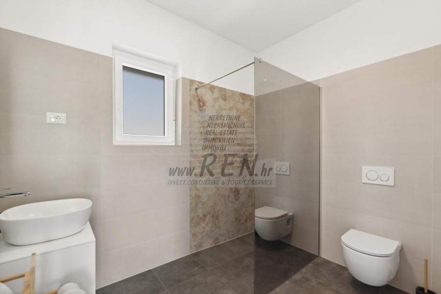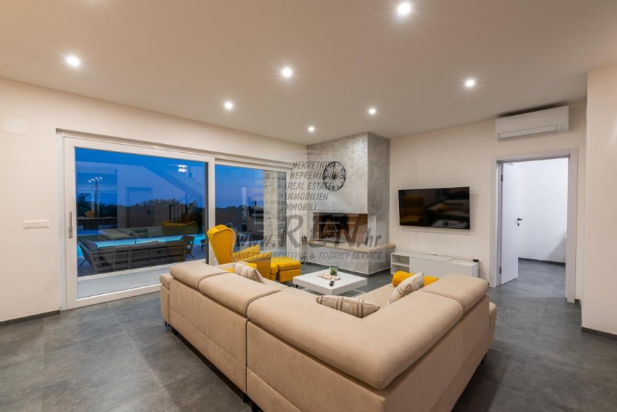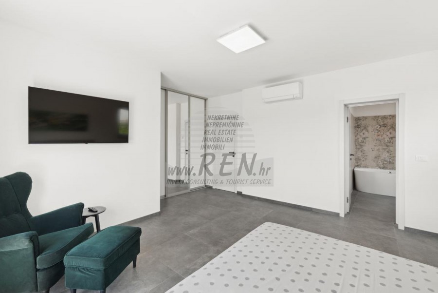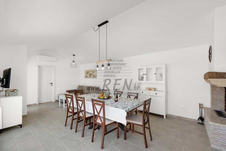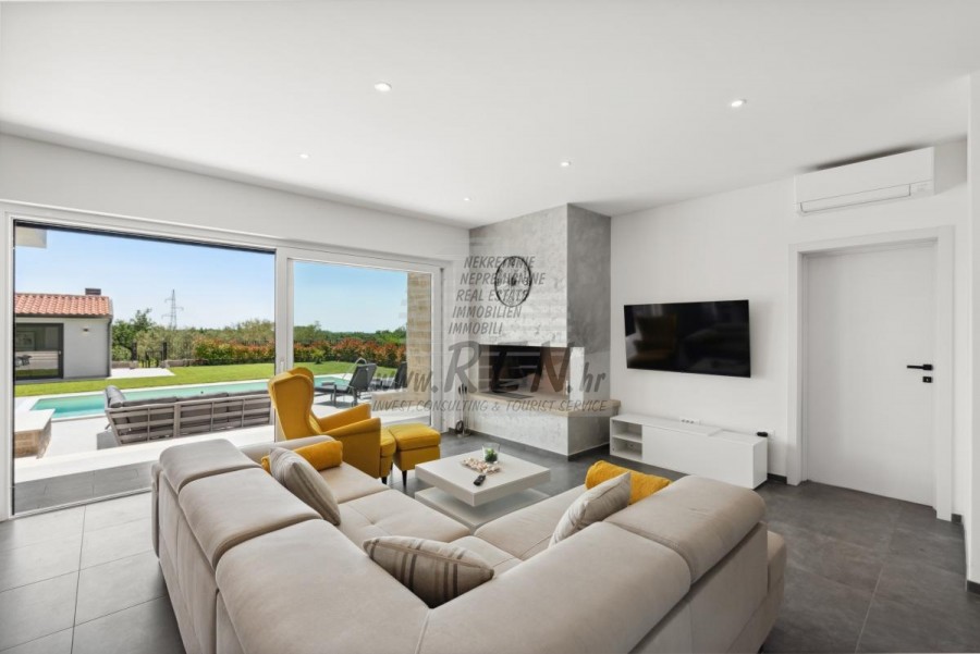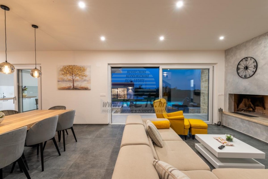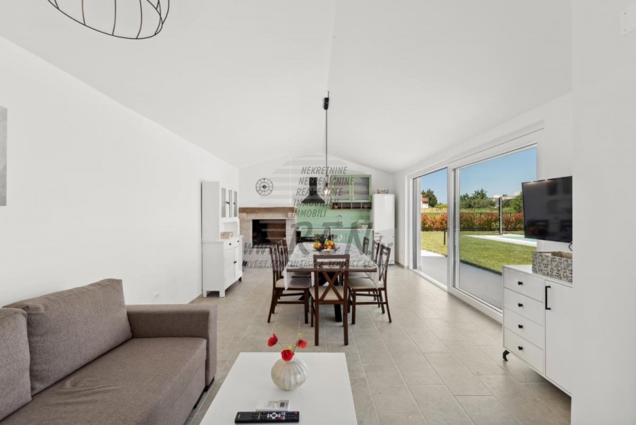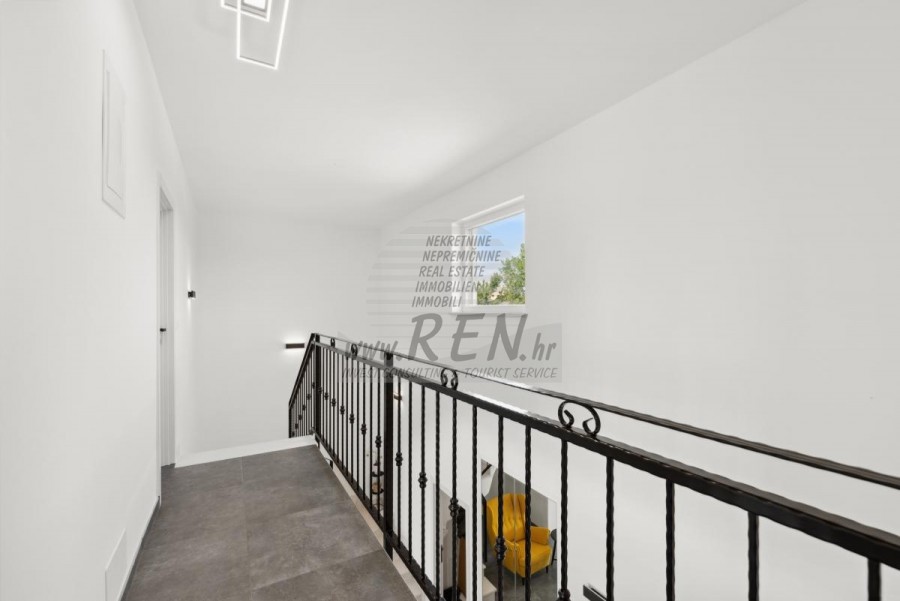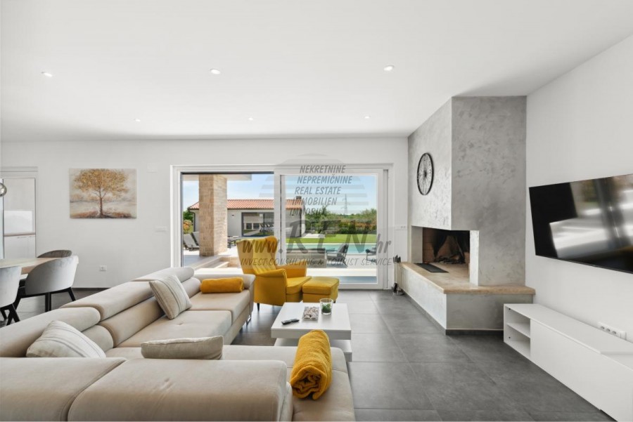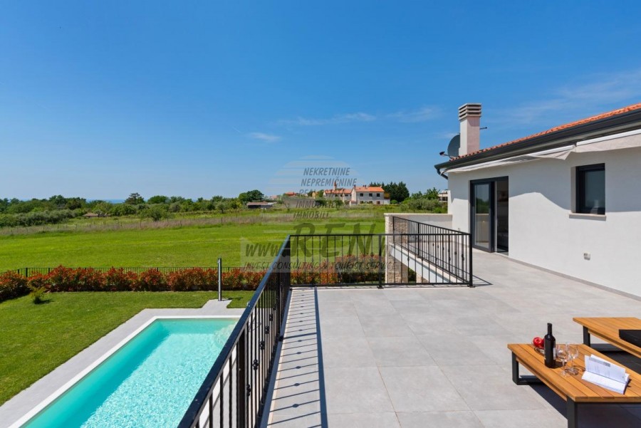 Luksuzna vila s bazenom u Brtonigli – Mediteranski san okružen zelenilom i morem U srcu istarskog mira, u čarobnom mjestu Brtonigla, nalazi se ova raskošna vila koja kombinira moderni komfort s autentičnim mediteranskim štihom. Smještena na prostranom zemljištu od 3350 m², okružena maslinicima, vinogradima i voćkama, pruža potpunu privatnost i harmoniju s prirodom, dok se istovremeno nude spektakularni vidici na more. Elegantan prostor za život i odmor Glavna kuća, zajedno s pomoćnim objektom, čini ukupno 290 m² prostranog i pažljivo dizajniranog stambenog prostora. U prizemlju se nalazi jedna od tri spavaće sobe, idealna za goste ili starije članove obitelji, dok su preostale dvje smještene na katu, sve opremljene vlastitim kupatilom za maksimalnu udobnost. Dnevni boravak, prostran i pun svjetla, centar je kuće – s toplim kaminom, modernom otvorenom kuhinjom i direktnim pristupom velikoj terasi s kojeg se pruža nezaboravan pogled na more. Klimatizacija i podno grijanje osiguravaju savršenu temperaturu tijekom cijele godine. Osim glavne kuhinje u dnevnom boravku, vila nudi još tri dodatne kuhinje koje čine ovaj prostor idealnim za ugostiteljske potrebe ili velike obiteljske okupljanja. Jedna se nalazi u pomoćnom objektu zajedno s blagovaonicom, druga je smještena na natkrivenoj terasi u prizemlju, dok treća kuhinja čeka u samom dvorištu, omogućavajući lagano pripremanje roštilja i društvenih fešta na otvorenom. Pomoćni objekt za dodatnu funkcionalnost U neposrednoj blizini glavne kuće nalazi se pomoćni objekt, koji nudi dodatnu kuhinju, blagovaonicu i kupatilo, što ga čini idealnim za goste, kućnu pomoć ili kao prostor za ugostiteljsku djelatnost. Oaza za relaksaciju i zabavu Vanjska sredina vile je pravi oaza za opuštanje. Bazen s elektrolizom osigurava čistoću vode bez iritantnih kemikalija, dok okolni sunčani terasi i zelenilo pozivaju na dugotrajno kupanje i uživanje u toplim danima. Za najmlađe je osigurano dječje igralište, dok će ljubitelji prirode cijeniti voćnjak i masline koje krasaju imanje. Idealna investicija u najam Vila je potpuno opremljena i uključena u sustav najma, što je čini izvrsnom prilikom za one koji žele kombinaciju luksuznog odmora i isplative investicije. Blizina mora, istaknuti turistički sadržaji Istre i mir Brtonigle čine je vrlo traženom destinacijom. Ova vila nije samo kuća – to je mediteranski san u kojem se svaki detalj brine o udobnosti, estetici i spoju s prirodom, pružajući vlasniku ili gostu nezaboravno iskustvo življenja u Istri.