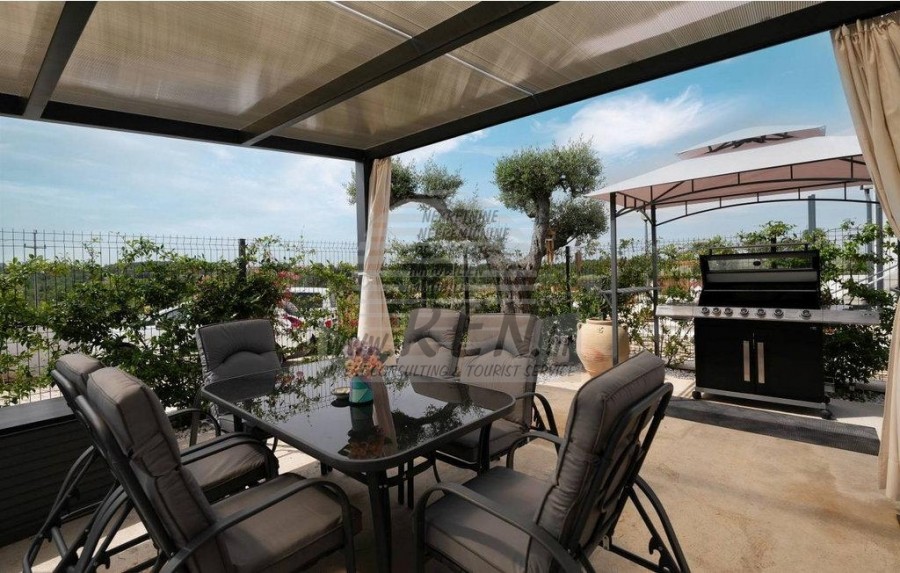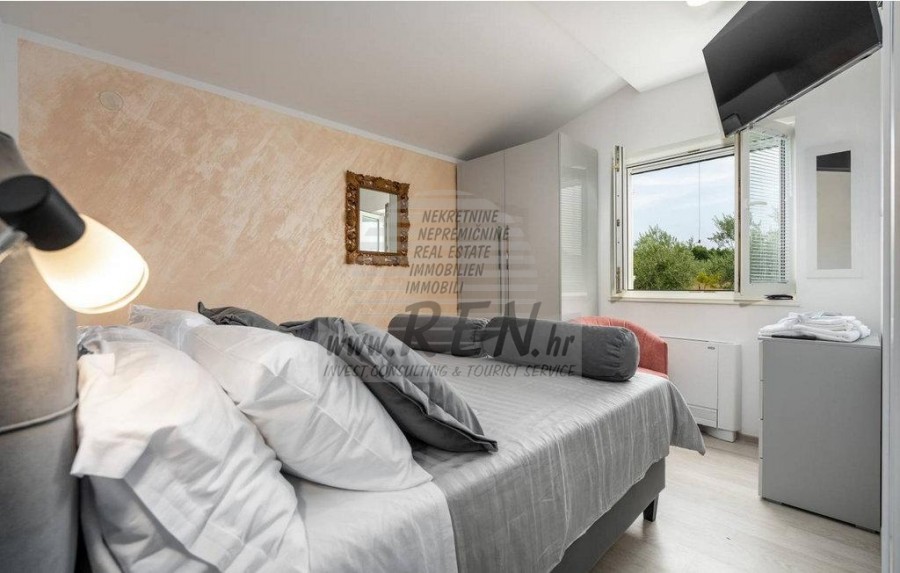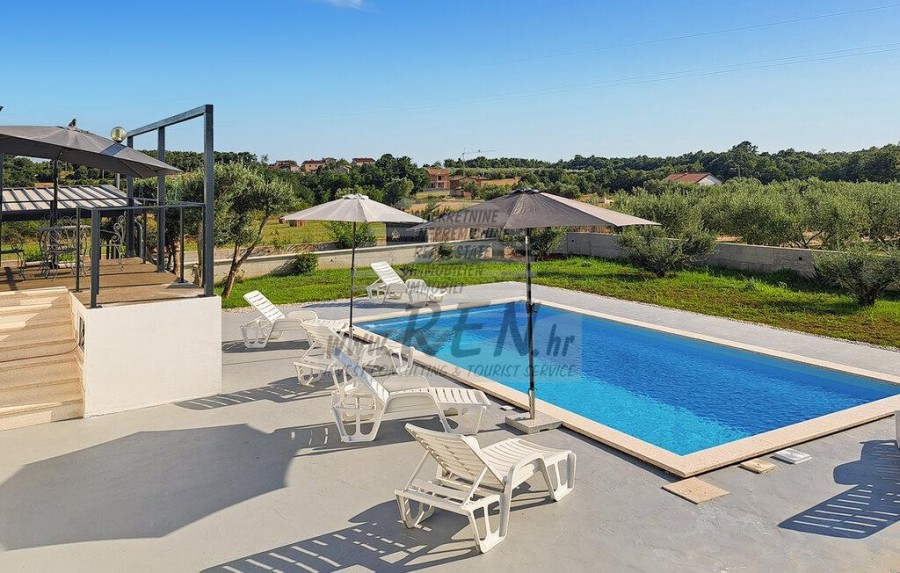 U mirnom i idiličnom kraju, nedaleko od Poreča, nalazi se ova prekrasna prizemna kuća površine 100 m², okružena velikom okućnicom od čak 3.000 m² pretežito zasađenom maslinama. Nalazi se na strateški povoljnoj lokaciji – udaljena je samo nekoliko minuta od autoceste i grada Poreča, pružajući istovremeno savršen balans mira, tišine i dobre prometne povezanosti. Kuća je potpuno opremljena i uređena za udoban život ili iznajmljivanje. Sastoji se od dvije prostrane spavaće sobe i dva moderno opremljena kupatila, a posebnu draž dodaje ljetna kuhinja, idealna za ugodne trenutke u društvu. U objektu su postavljene klima-uređaji, a svi prozori opremljeni su komarnicima, osiguravajući optimalnu udobnost topline ljetnih mjeseci. Uz glavnu kuću, na imanju se nalaze i pomoćni objekti ukupne površine 67 m², dok je glavna atrakcija privatni bazen s jacuzzijem, gdje možete opušteno uživati u suncu i prirodi. Cijeli prostor odiše mediteranskim šarmom, a maslinik daje dodatnu vrijednost cijelom ambijentu. Kuća je već uključena u sustav najma, što predstavlja odličnu priliku za dodatne prihode, ali je jednako pogodna i kao trajni dom za one koji cijene kvalitetan život u blizini Istre. Idealna je za obitelji koje traže miran odmor, ali i za investitore koji žele iskoristiti turistički potencijal ove lokacije. Riječ je o rijetkoj prilici na tržištu – spoj mira, prirode i praktične lokacije. Za sve dodatne informacije i mogućnost pregleda, slobodno se javite.