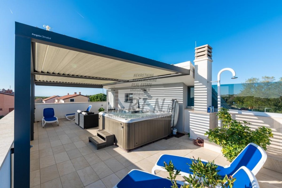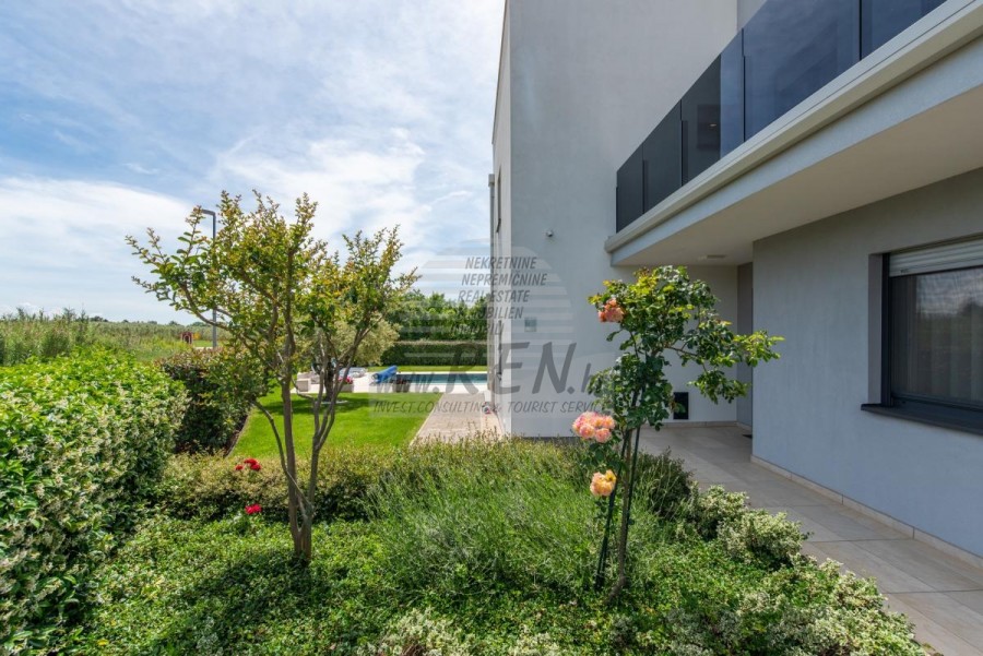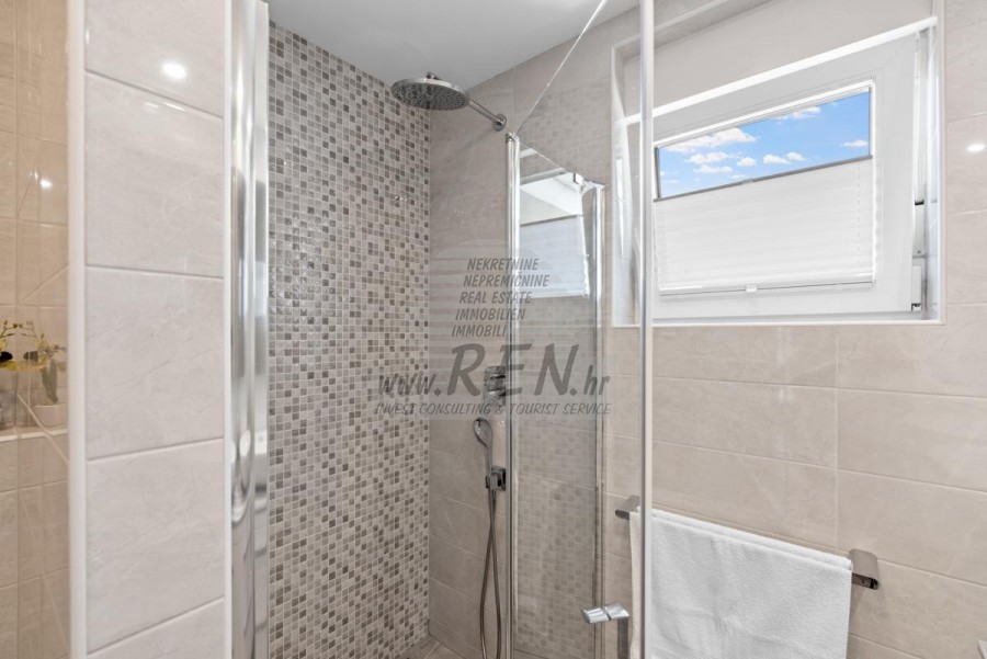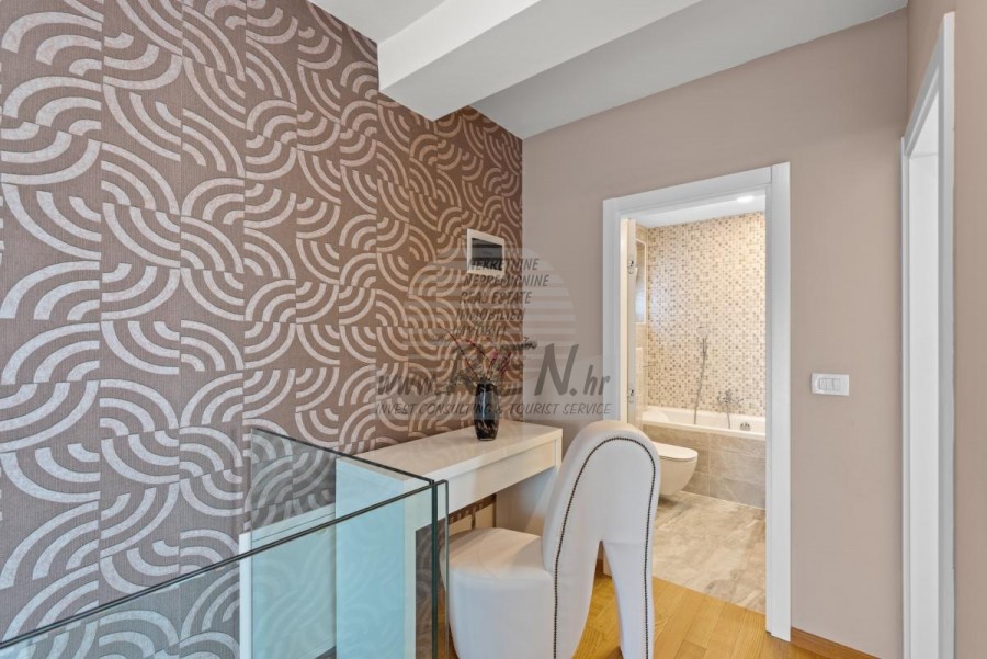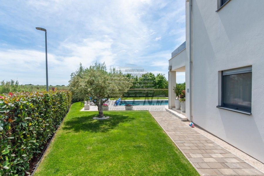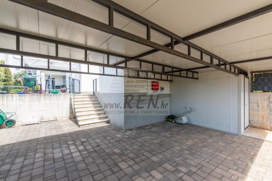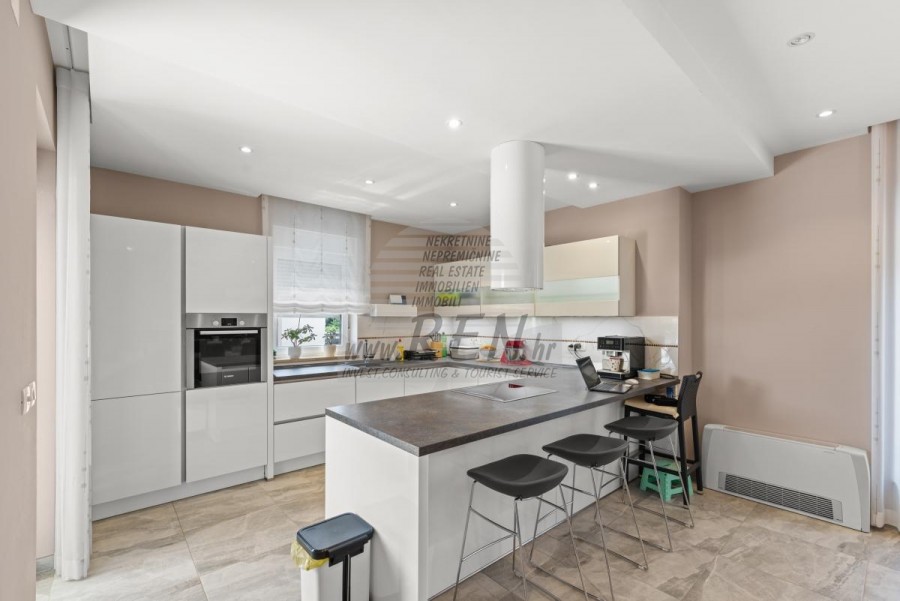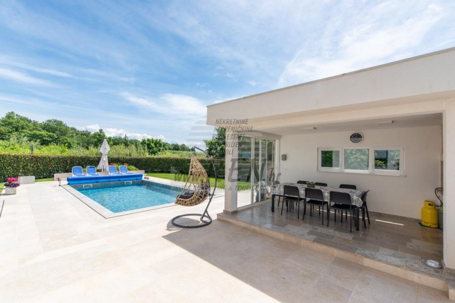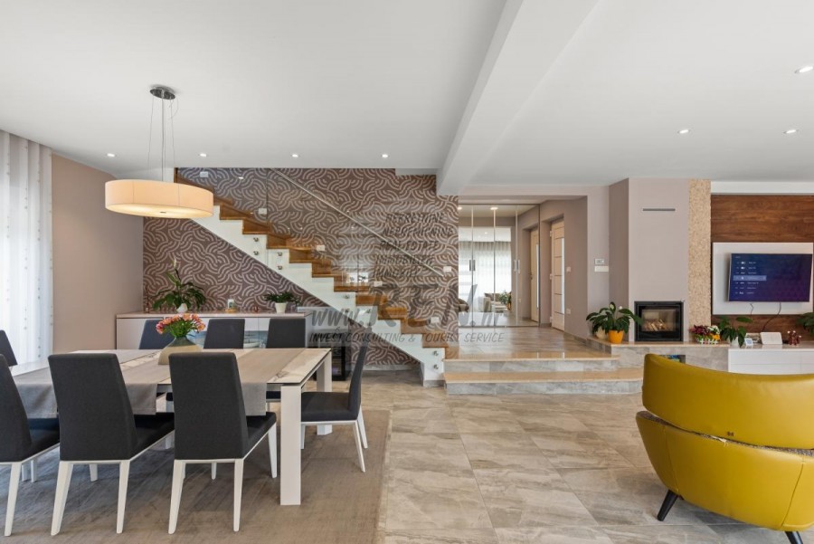 Nekretnine Istra, prodajem kuću, Novigrad Na mirnoj lokaciji, samo tri kilometra od centra Novigrada i obale, nalazi se ova impresivna moderna kuća koja savršeno spaja suvremeni komfort s mediteranskim šarmom. Smještena usred zeleni, nekretnina pruža osjećaj potpune privatnosti, dok vas blizina mora podsjeća da ste u srcu Istarske rivijere. Prostrana kuća od 302 četvorna metra pametno je podijeljena u dvije potpuno odvojene jedinice, što je čini idealnom za veće obitelji, investitore ili one koji žele kombinaciju privatnog boravka i mogućnosti iznajmljivanja. Glavna jedinica raspolaže prostranim dnevnim boravkom koji se otvara prema terasi i vrtu, modernom kuhinjom, spavaćim sobama i kupatilima, dok se u prizemlju nalazi i praktična garaža. Druga jedinica, s ulazom na katu, očarava otvorenim konceptom dnevnog boravka koji se proteže do kuhinje i blagovaonice, vodeći vas prema intimnoj spavaćoj sobi. Pravi biser ove jedinice su stepenice koje vode do krovne terase gdje vas očekuje jacuzzi s panoramskim pogledom na more - savršeno mjesto za romantične zalaske sunca ili večernje opuštanje uz zvuk valova. Okružena dvorištem od 856 četvornih metara, kuća nudi oazu mira s bazenom od 30 četvornih metara, sunčanim ležaljkama i ljetnom kuhinjom koja će vaša okupljanja s prijateljima i obitelji pretvoriti u nezaboravne trenutke. Pažljivo osmišljeni detalji poput solarnih panela, klima-uređaja u cijelom objektu i mogućnosti ugradnje kamina govore o visokom standardu života koji ova nekretnina nudi. Položaj kuće kombinira prednosti mirnog okruženja s praktičnošću brzog pristupa svim sadržajima - u nekoliko minuta vožnje nalaze se plaže, restorani s autentičnom istarskom kuhinjom, vinarije i šetnice uz more. Bilo da tražite stalno prebivalište uz more, vikend-izbjegavnicu ili investicijsku priliku, ova kuća predstavlja savršenu kombinaciju moderne arhitekture, funkcionalnosti i premium lokacije. Za dodatne informacije stojimo Vam na raspolaganju.