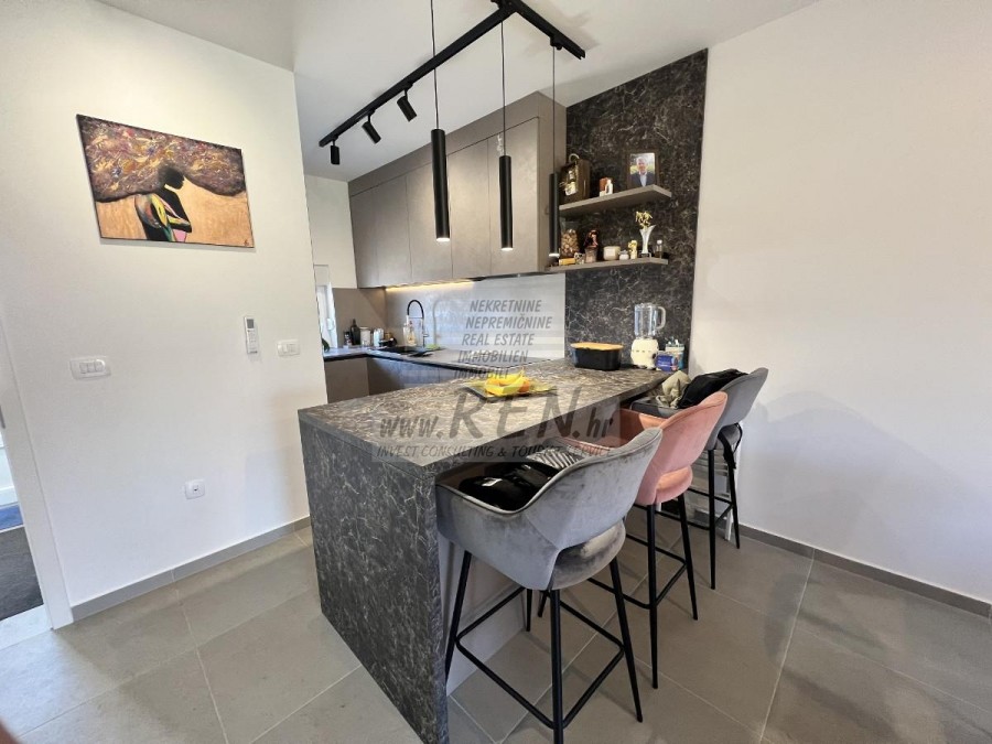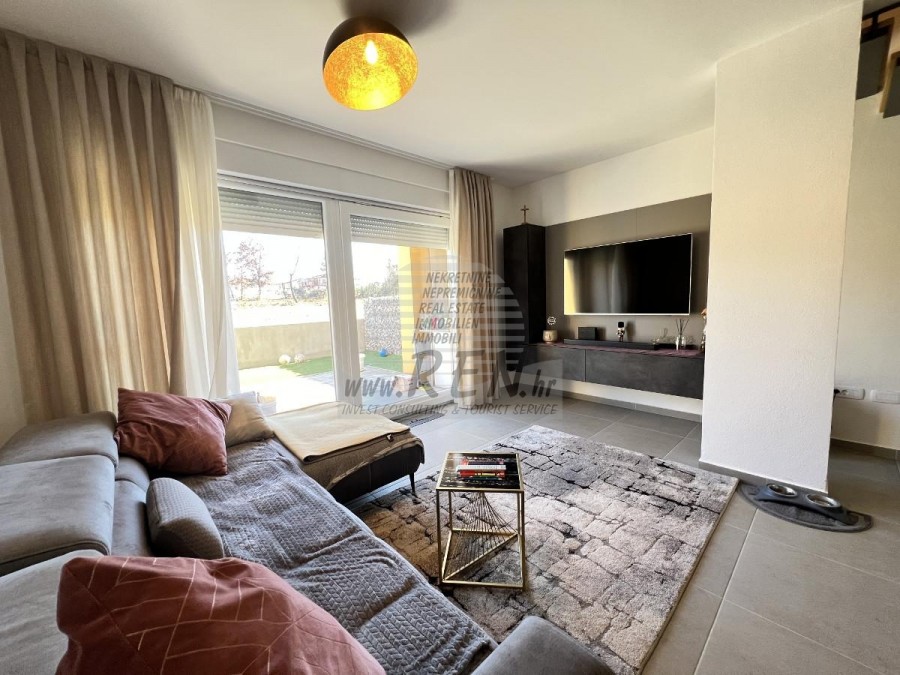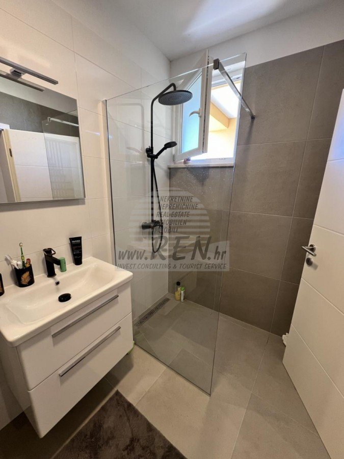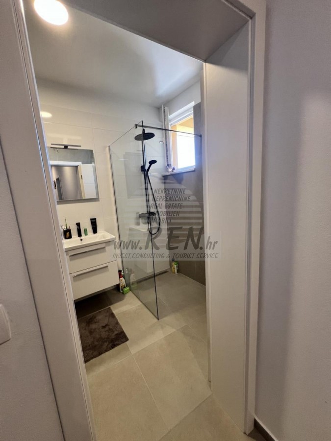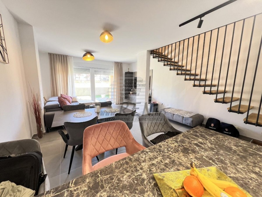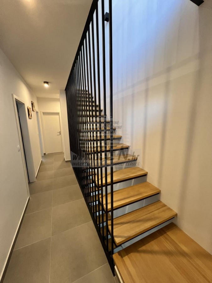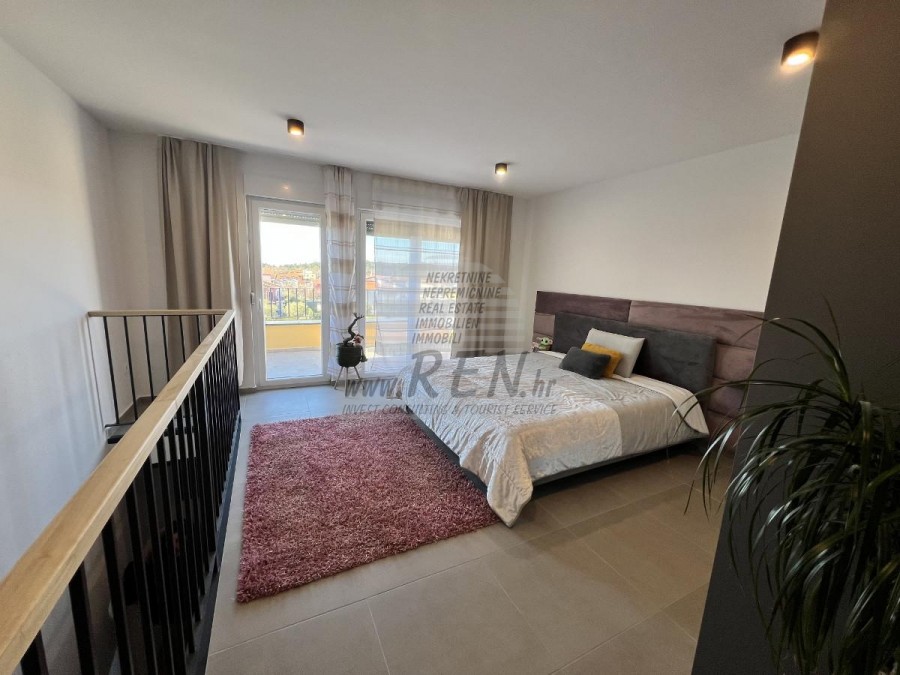 Prodaje se atraktivan stan na 3 etaže u Novigradu. Stan se nalazi na mirnoj lokaciji i udaljen je 1700 m od centra grada i 1300 m od mora i lijepo uređene plaže. Stan ima 129 m2 i sastoji se od prizemlja, 1. kata i 2. kata. U prizemlju se nalazi ulazni hodnik, wc, te open space prostor u kojem je smještena kuhinja s blagovaonicom i dnevni boravak s izlazom na vrt. Na 1. katu nalaze se 2 spavaće sobe od kojih jedna ima izlaz na balkon, kupatilo te dodatna soba. Na 2. katu smještena je velika spavaća soba s kupatilom, spremište te krovna terasa s lijepim pogledom na more. Stan je moguće koristiti u stambene ili turističke svrhe. Stanu pripadaju 2 parkirna mjesta. Stan se prodaje kompletno namješten.
