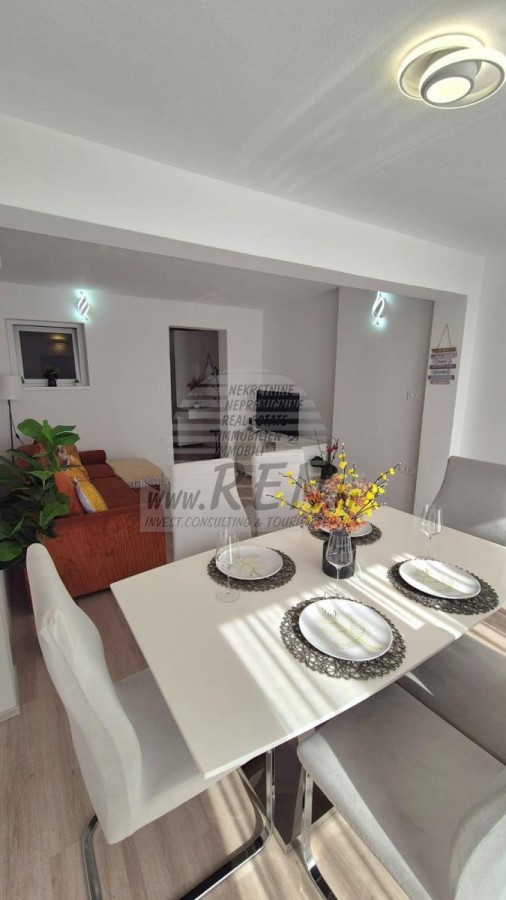 Nekretnine Istra, prodajem stan, Novigrad, Mareda Stan u Novigradu (Mareda) ima ukupno 40 m2, nalazi se u prizemlju, udaljen je 5 min. (400m) od mora i od prekrasne uređene plaže, 10 min. (4000m) udaljeni ste od centra grada Novigrada. Stan se sastoji od kuhinje, dnevnog boravaka, kupatila, sobe, terasa od 15 m2. Opremljen je klima uređajem, ljetna kuhinja. Stan je udaljen 1000 m od trgovine, 200 m udaljen je od restorana, 3000 m udaljen je od tržnice, doktor je udaljen 3000 m, apoteka je udaljena 3000 m, aerodrom Pula udaljen je 60 km, te aerodrom Portorož udaljen je 30 km, marina Novigrad udaljena je 3000 m, te aquapark (Istralandia) udaljen je svega 7 km. Za dodatne informacije stojimo Vam na raspolaganju.