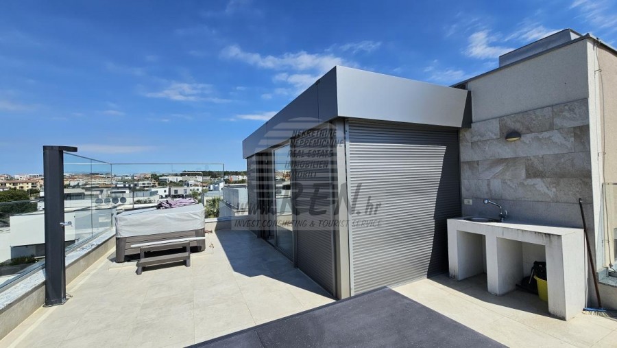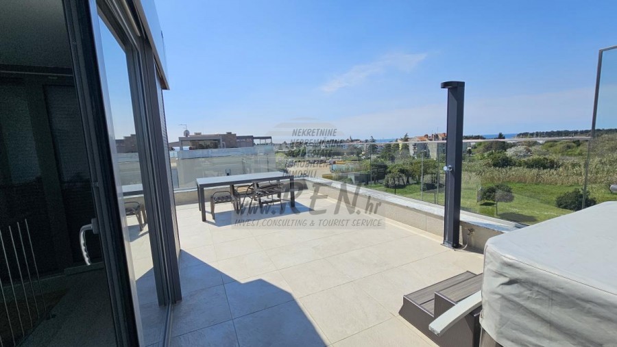 Penthouse s krovnom terasom i pogledom na more – Novigrad Na atraktivnoj lokaciji u Novigradu, svega 500 m od mora, plaža i svih sadržaja, prodaje se moderan stan smješten na drugom katu zgrade s liftom, koji nudi savršenu kombinaciju komfora i mediteranskog ugođaja. Stan se sastoji od dvije spavaće sobe, kupaonice te dnevnog boravka s kuhinjom, dok posebnu vrijednost daje prostrana krovna terasa s koje se pruža prekrasan pogled na more i stari grad Novigrad – idealno mjesto za opuštanje, druženja i uživanje u zalascima sunca. Nekretnini pripada i spremište u prizemlju te 2 parkirna mjesta, što dodatno povećava praktičnost svakodnevnog života. Zahvaljujući izvrsnoj lokaciji, pogledu i funkcionalnom rasporedu, ovaj stan predstavlja izvrsnu priliku za stanovanje, odmor ili investiciju u jednoj od najpoželjnijih destinacija na istarskoj obali