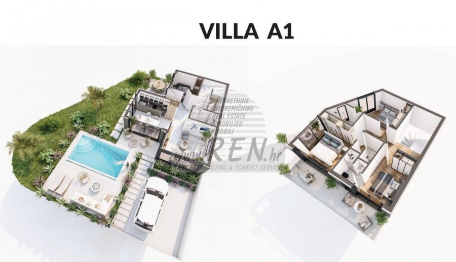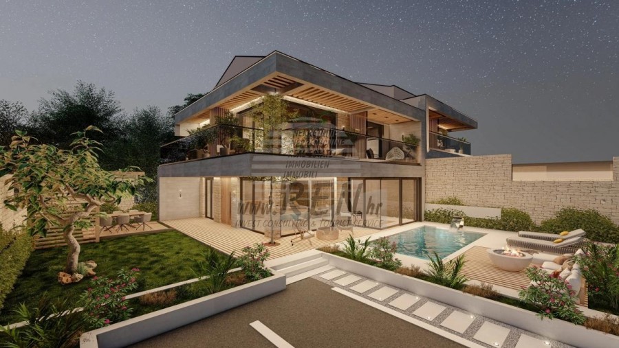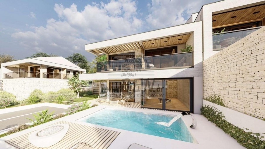 Immobili Istria, vendo casa moderna, dintorni Umag-Umago La casa dispone con un totale di 197,32 m2, giardino 326 m2, è a 5 min. (100m) dal mare e dalle splendide spiagge naturali, 10 min. (6000m) dista dal centro di Umag. La casa è doppia ed e composta dal piano terra e primo piano. In costruzione. Ci sono in totale 4 camere da letto, 4 bagni, cucina, soggiorno, deposito. La casa è dotata di 2 parcheggi privati, 2 terrazzi con vista mare, caminetto, aria condizionata, piscina, lussuosamente arredata. In resort privato con reception, possibilità di utilizzo congiunto di palestra, wellness, parco giochi per bambini, Wine Bar, supervisione 24 ore su 24, stazione di ricarica per auto elettriche, disponibili pacchetti di manutenzione della struttura. La casa è a 200 m dal negozio, 200 m dal ristorante, a 6000 m dal mercato, medico dista 6000 m, la farmacia si trova a 6000 m di distanza, l'aeroporto di Pola è 80 km, l'aeroporto di Portorose è di 10 km, marina Umag 6000 m, campi da golf 10000 m. Per ulteriori informazioni, si prega di contattarci.