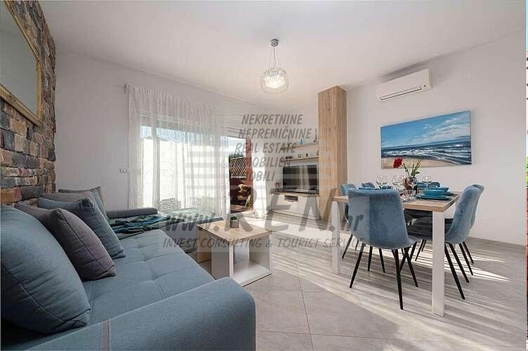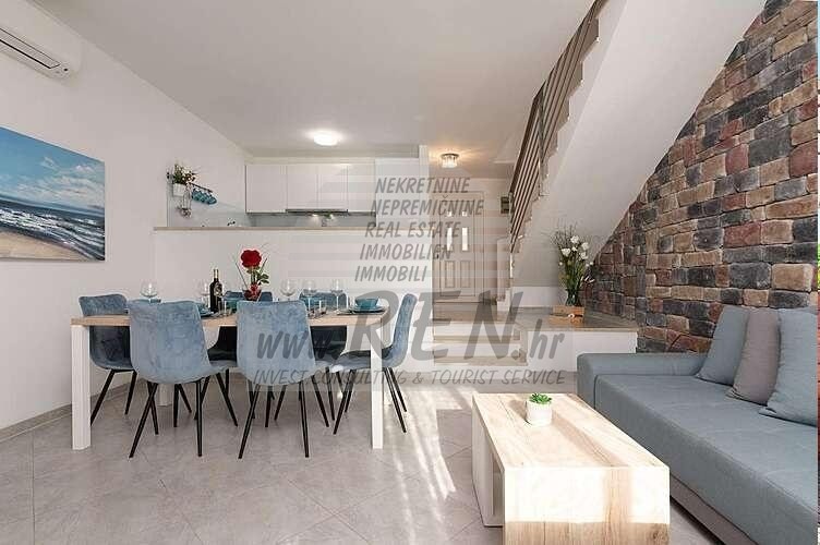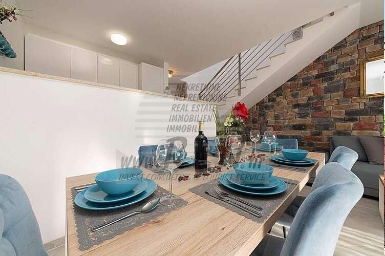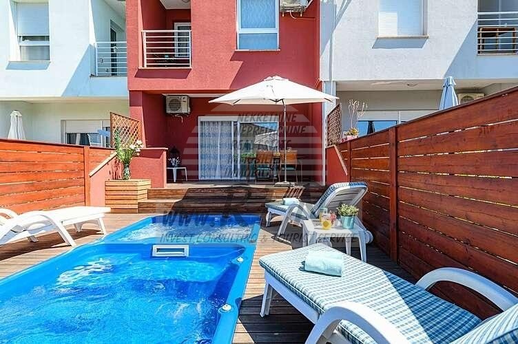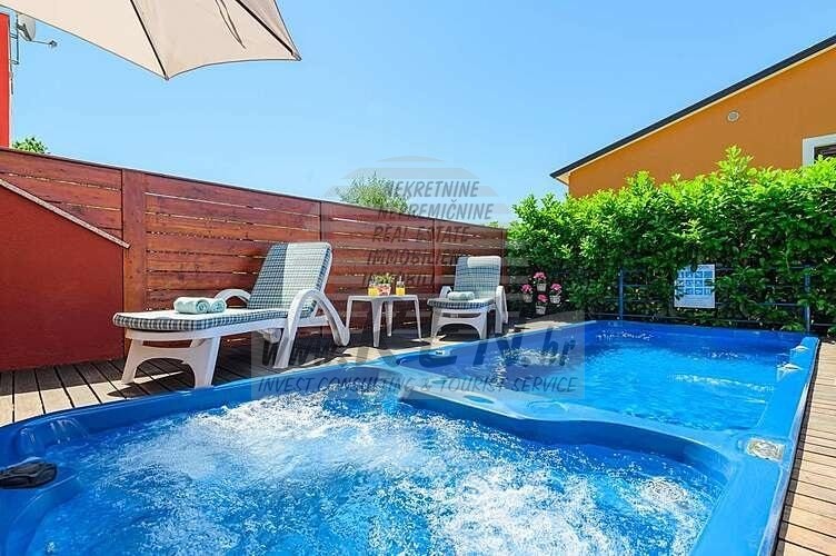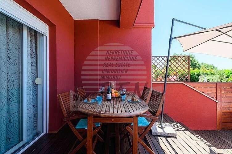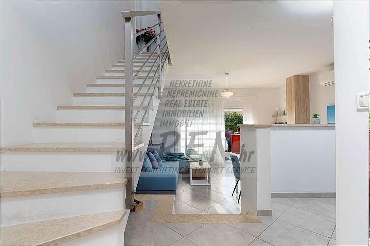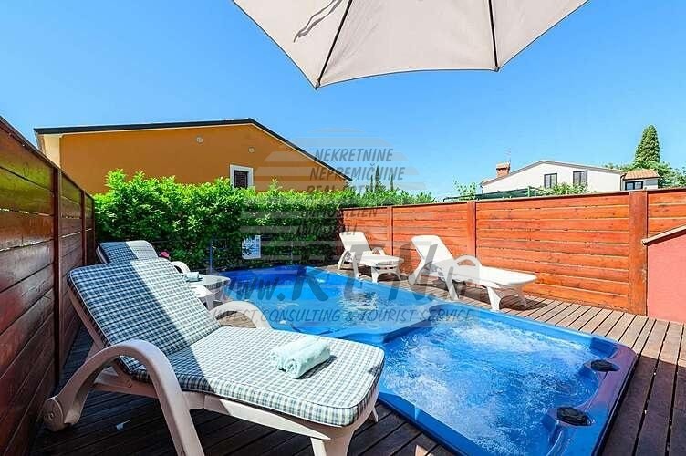 Immobili Istria, vendo casa moderna, dintorni Umag-Umago La casa dispone con un totale di 91,44 m2, giardino 66 m2, è a 5 min. (2000m) dal mare e dalle splendide spiagge naturali, 10 min. (5000m) dista dal centro di Umag. La casa è in fila ed e composta dal piano terra e primo piano. Ci sono in totale 2 camere da letto, 2 bagni, cucina, soggiorno, deposito. La casa è dotata di parcheggio privato, cucina estiva, piscina. La casa è a 200 m dal negozio, 200 m dal ristorante, a 5000 m dal mercato, medico dista 5000 m, la farmacia si trova a 5000 m di distanza, l'aeroporto di Pola è 80 km, l'aeroporto di Portorose è di 10 km, marina Umag 5000 m, campi da golf 4000 m. Per ulteriori informazioni, si prega di contattarci.