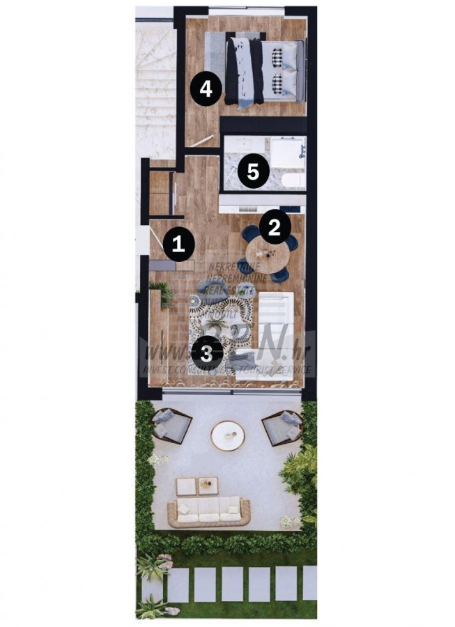 Immobili Istria, vendo apartamento moderno vicino il mare, dintorni Umag-Umago L'appartamento dispone con un totale di 45,52 m2, giardino 8 m2, è a 5 min. (100m) dal mare e dalle splendide spiagge naturali, 10 min. (6000m) dista dal centro di Umag. L'appartamento si trova al piano terra. In costruzione. Ci sono in totale 1 camera da letto, bagno, cucina, soggiorno, deposito. Dotato di 1 parcheggio privato, terrazzo, caminetto, aria condizionata, lussuosamente arredato. In resort privato con reception, possibilità di utilizzo congiunto di palestra, wellness, parco giochi per bambini, Wine Bar, supervisione 24 ore su 24, stazione di ricarica per auto elettriche, disponibili pacchetti di manutenzione della struttura. è a 200 m dal negozio, 200 m dal ristorante, a 6000 m dal mercato, medico dista 6000 m, la farmacia si trova a 6000 m di distanza, l'aeroporto di Pola è 80 km, l'aeroporto di Portorose è di 10 km, marina Umag 6000 m, campi da golf 10000 m. Per ulteriori informazioni, si prega di contattarci.